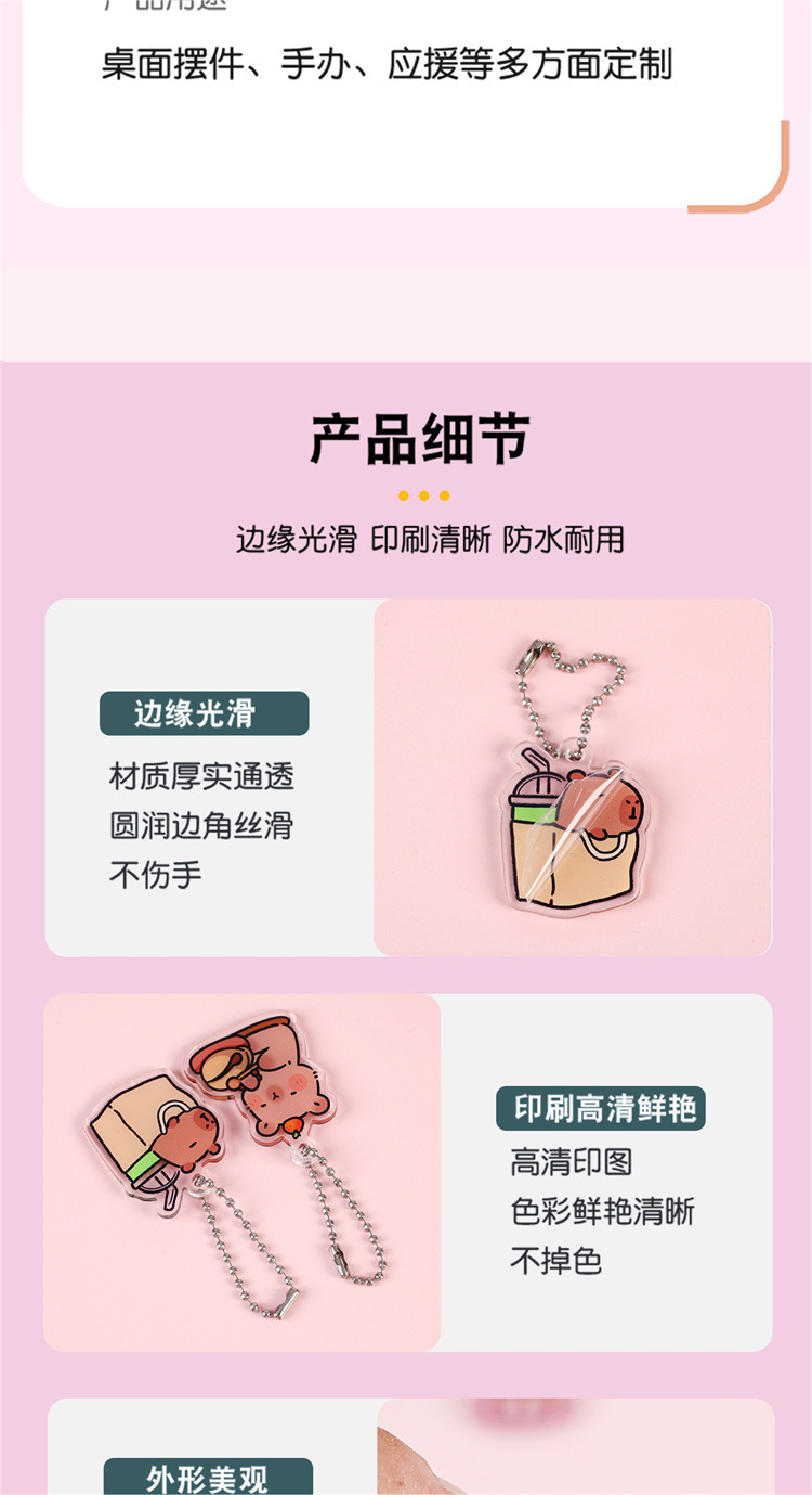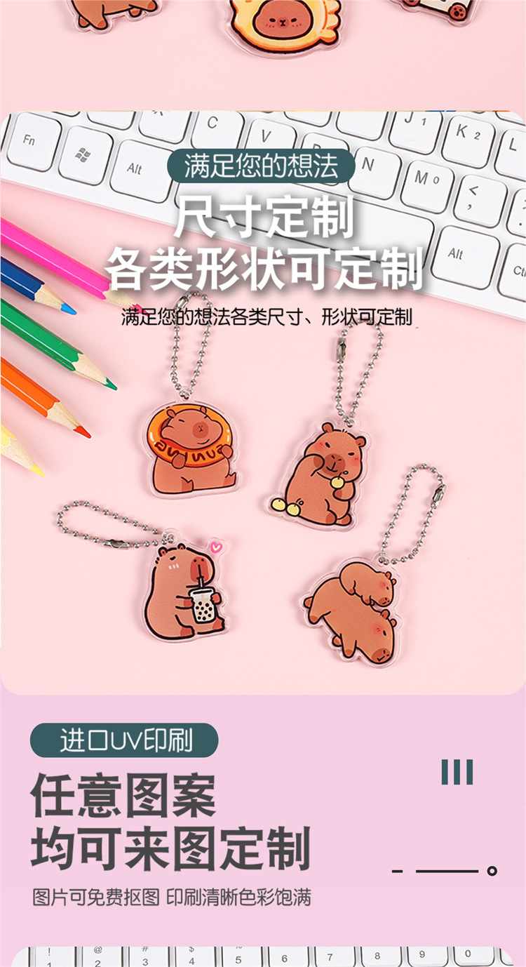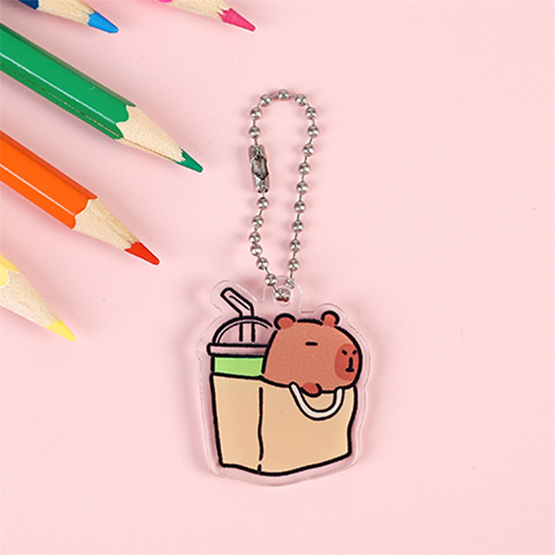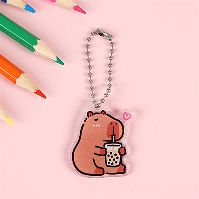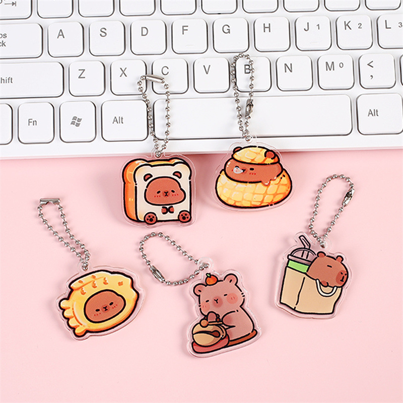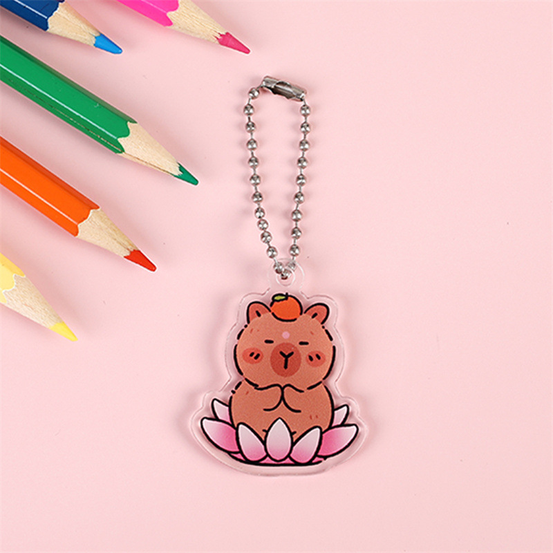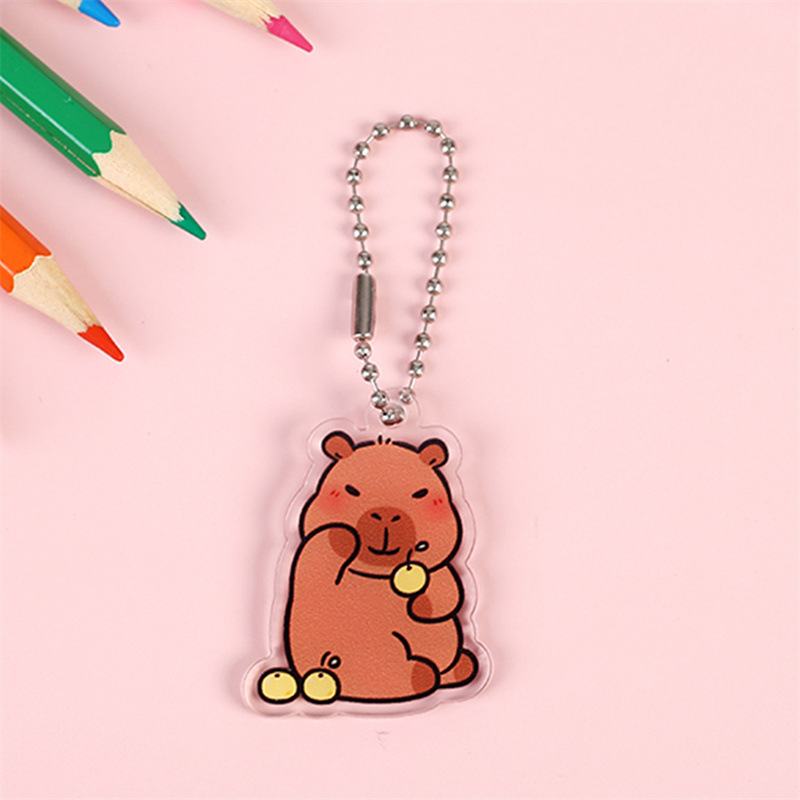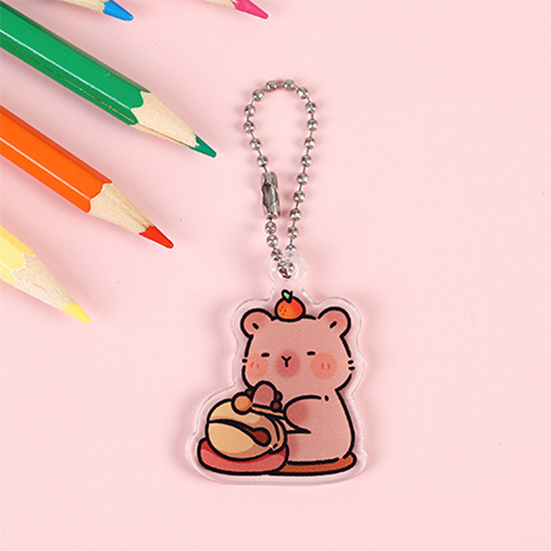 可爱卡皮巴拉钥匙扣卡通河豚钥匙链水豚鼠书包装饰挂件亚克力配件
