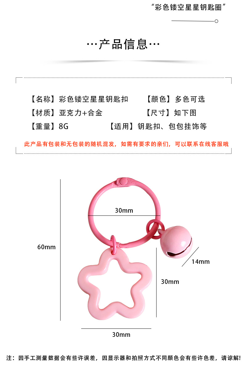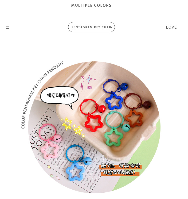 彩色五角星钥匙扣ins小清新情侣包包挂饰糖果色亚克力星星配饰品