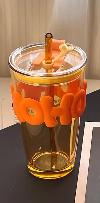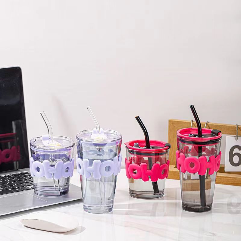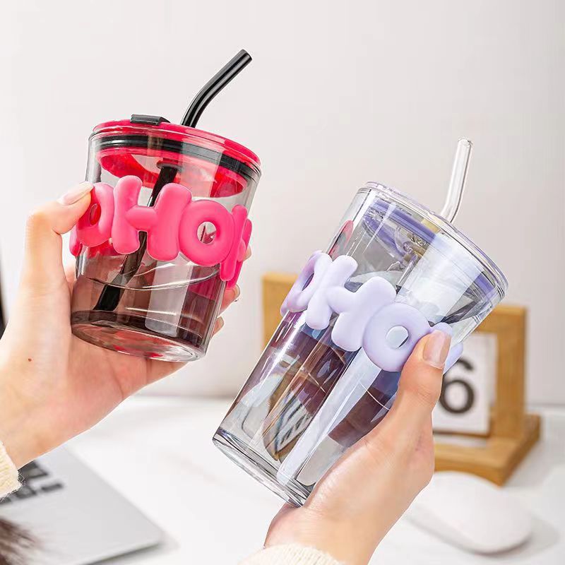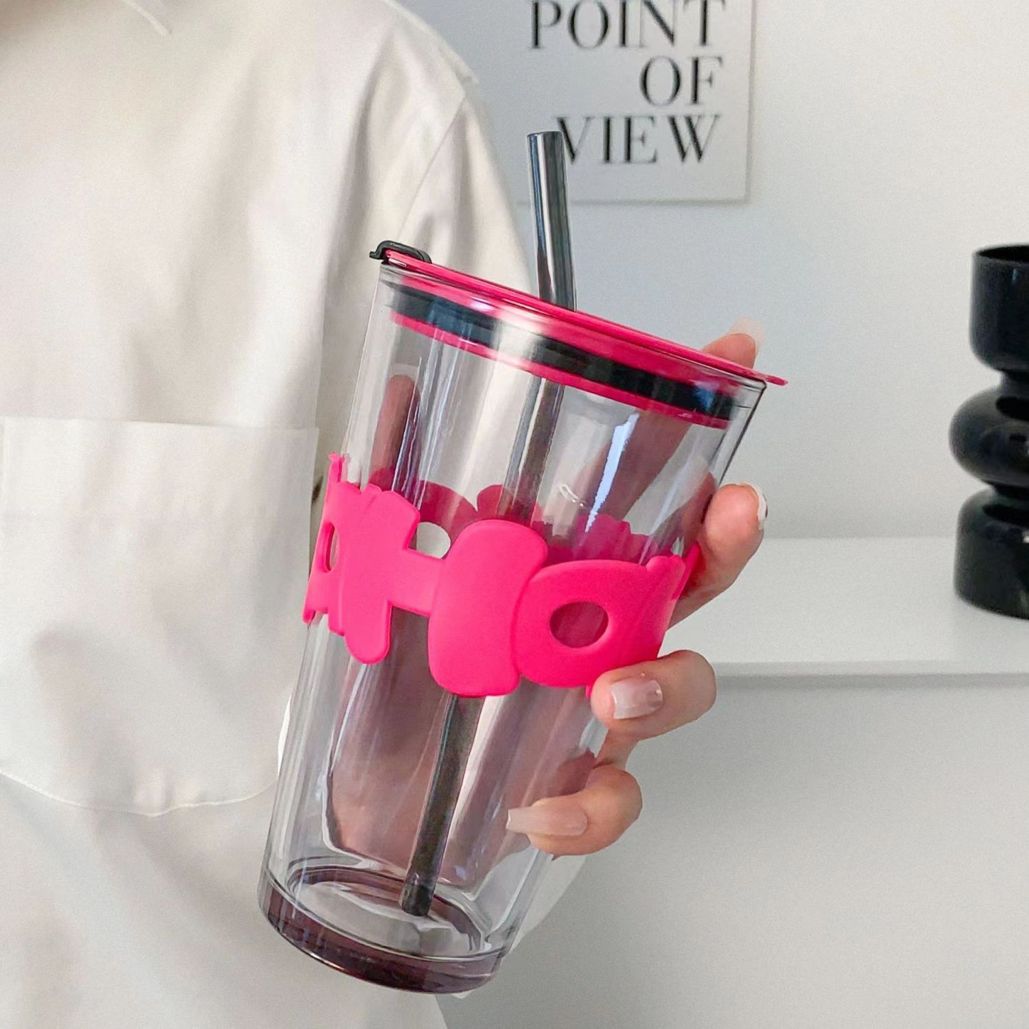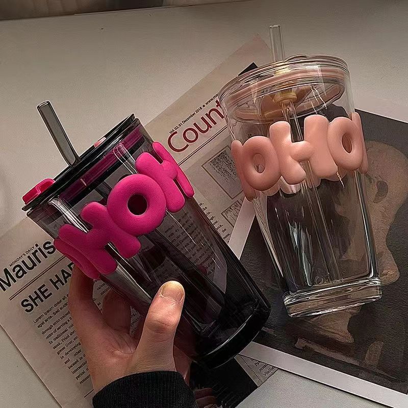 创意字母吸管杯女ins高颜值高级情侣水杯随手玻璃杯喝水咖啡果汁