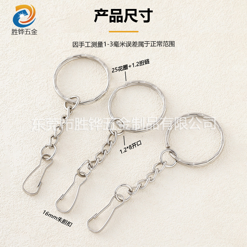 现货1.5×25花圈带4节扭链 金属钥匙扣 钥匙链20朱胆扣