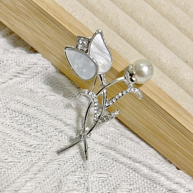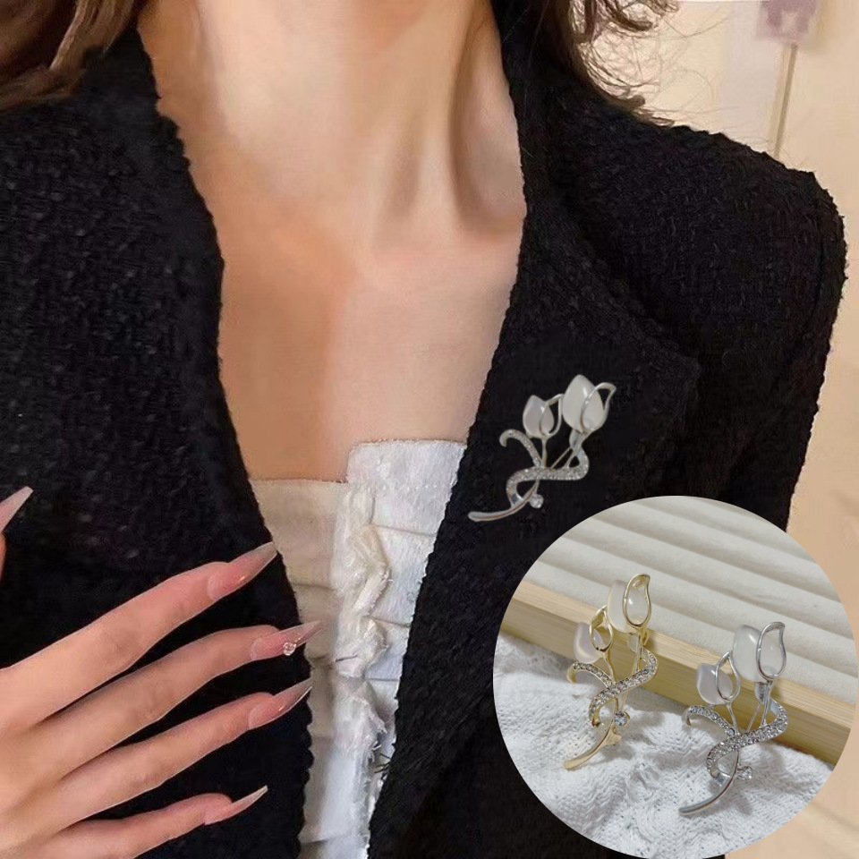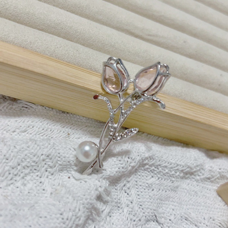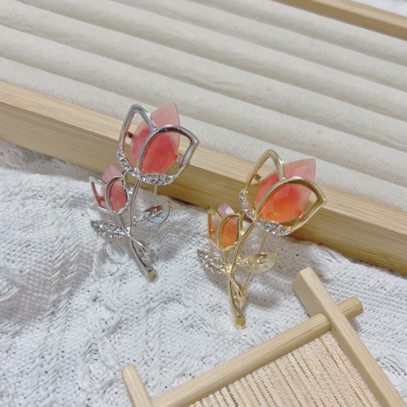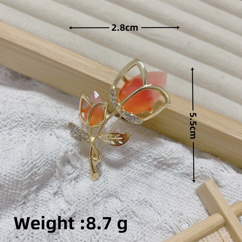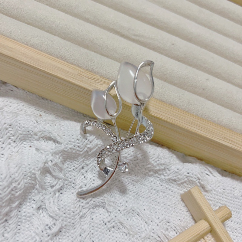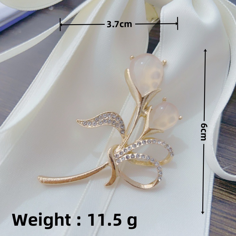 西装 配饰胸针高级感小众少女丝巾扣合金胸花 百搭郁金香水钻别针