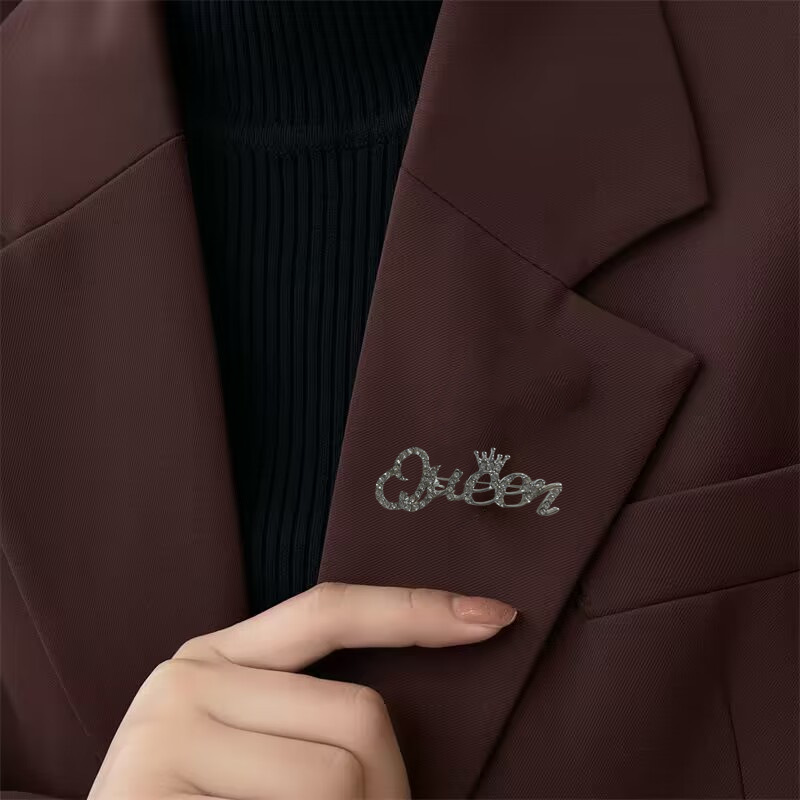 新款女王皇冠气质胸针网红镶钻别针防走光精致胸花插针装饰品字母