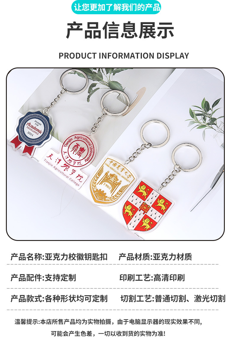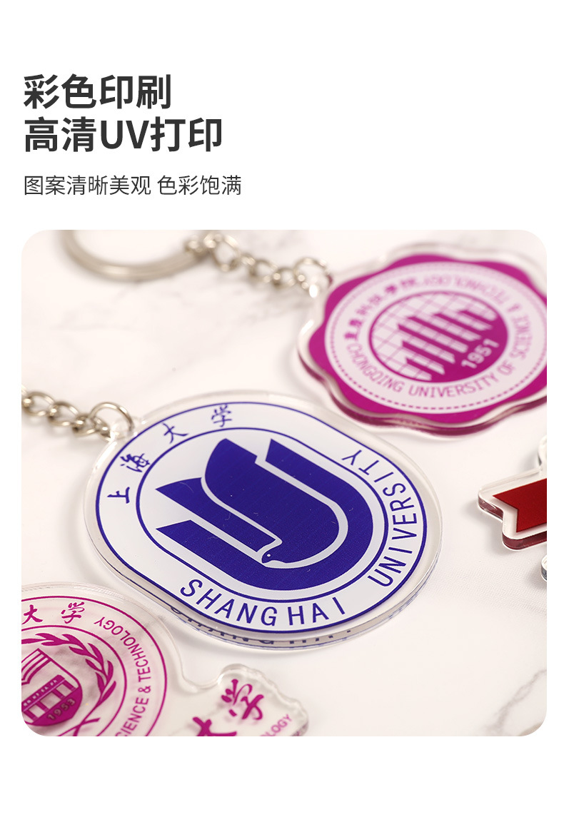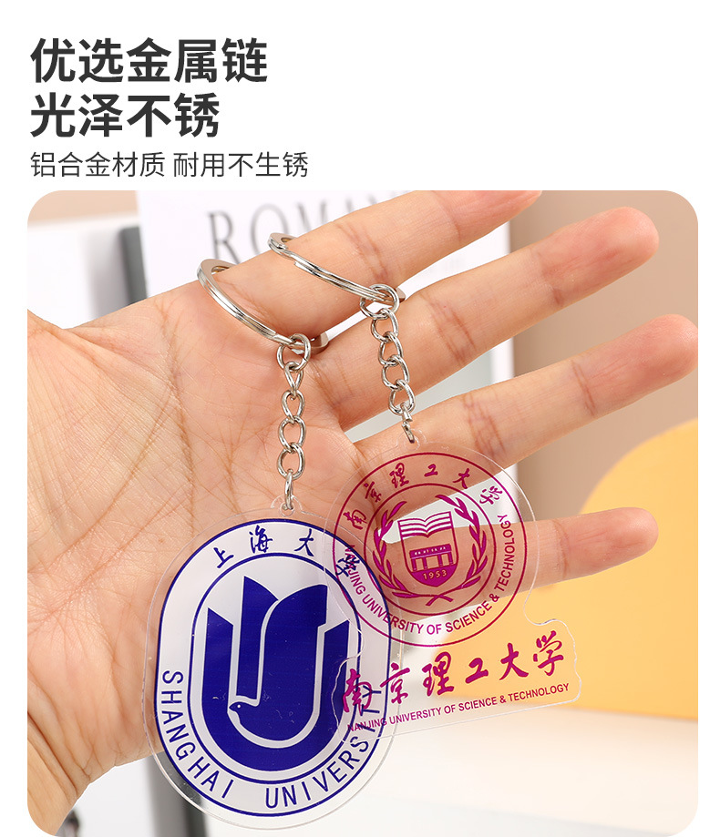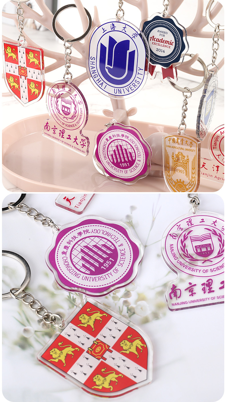 亚克力钥匙扣定制学校胸章LOGO大学校徽钥匙挂件毕业纪念礼品定做