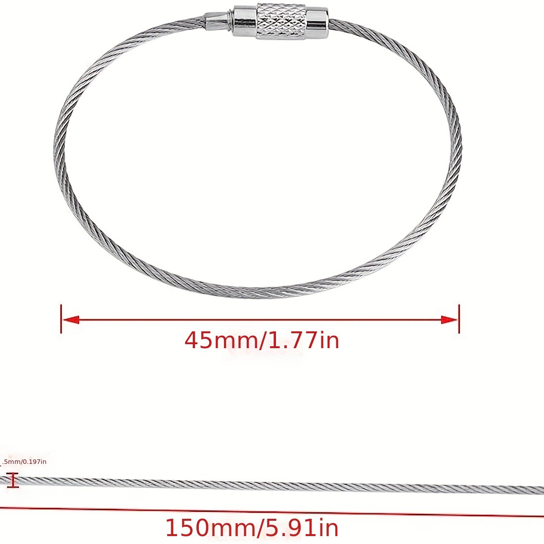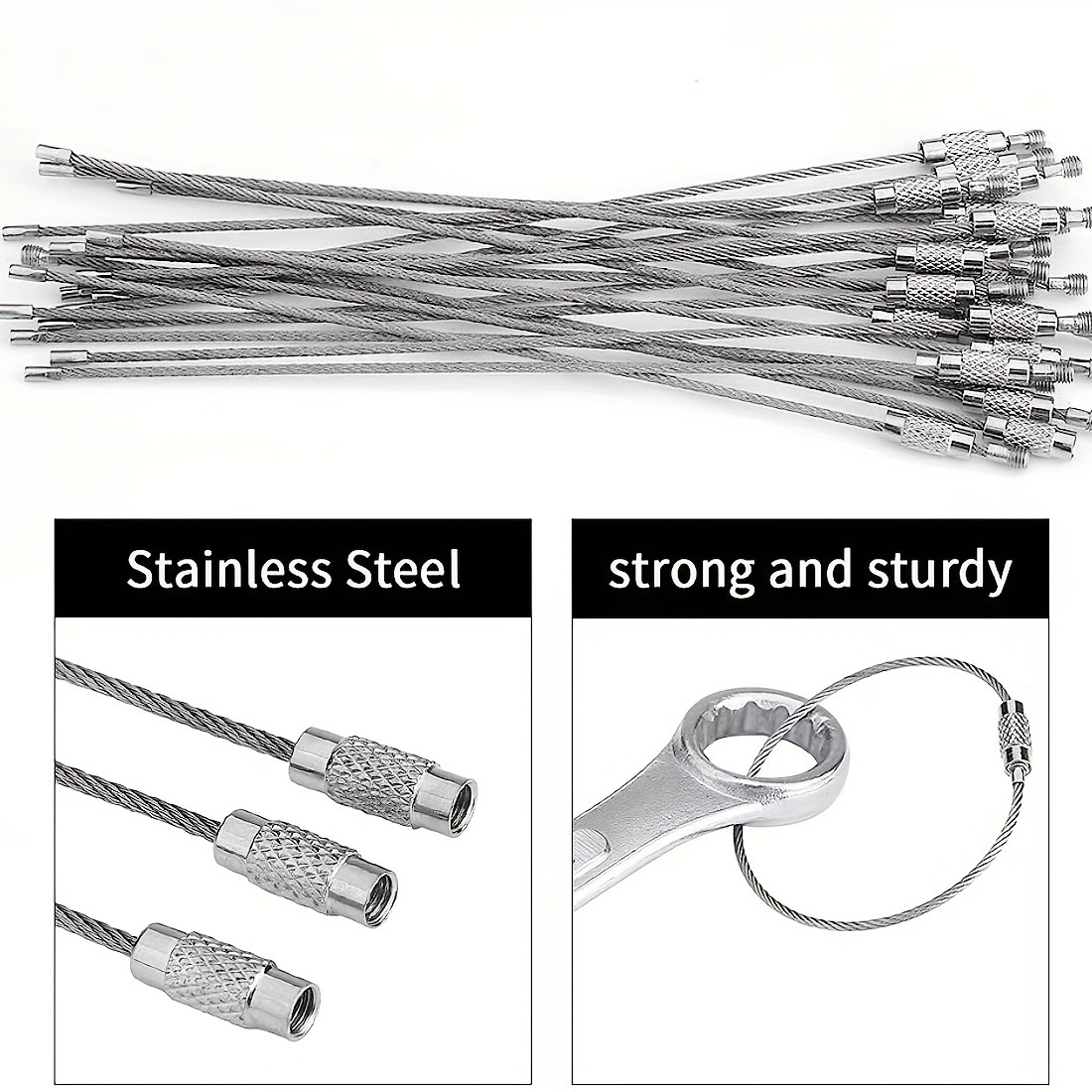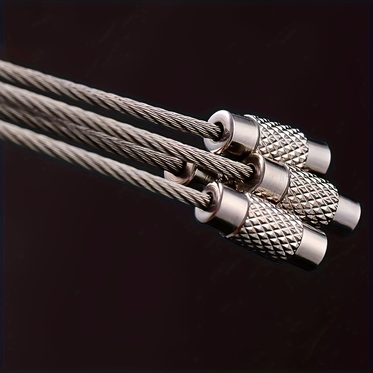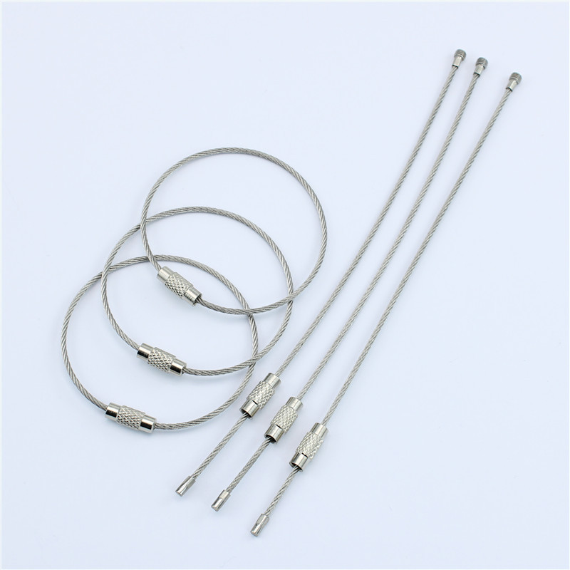 跨境热销10件不锈钢钥匙扣钢丝绳圈不同型号钥匙圈钢丝绳螺丝锁扣