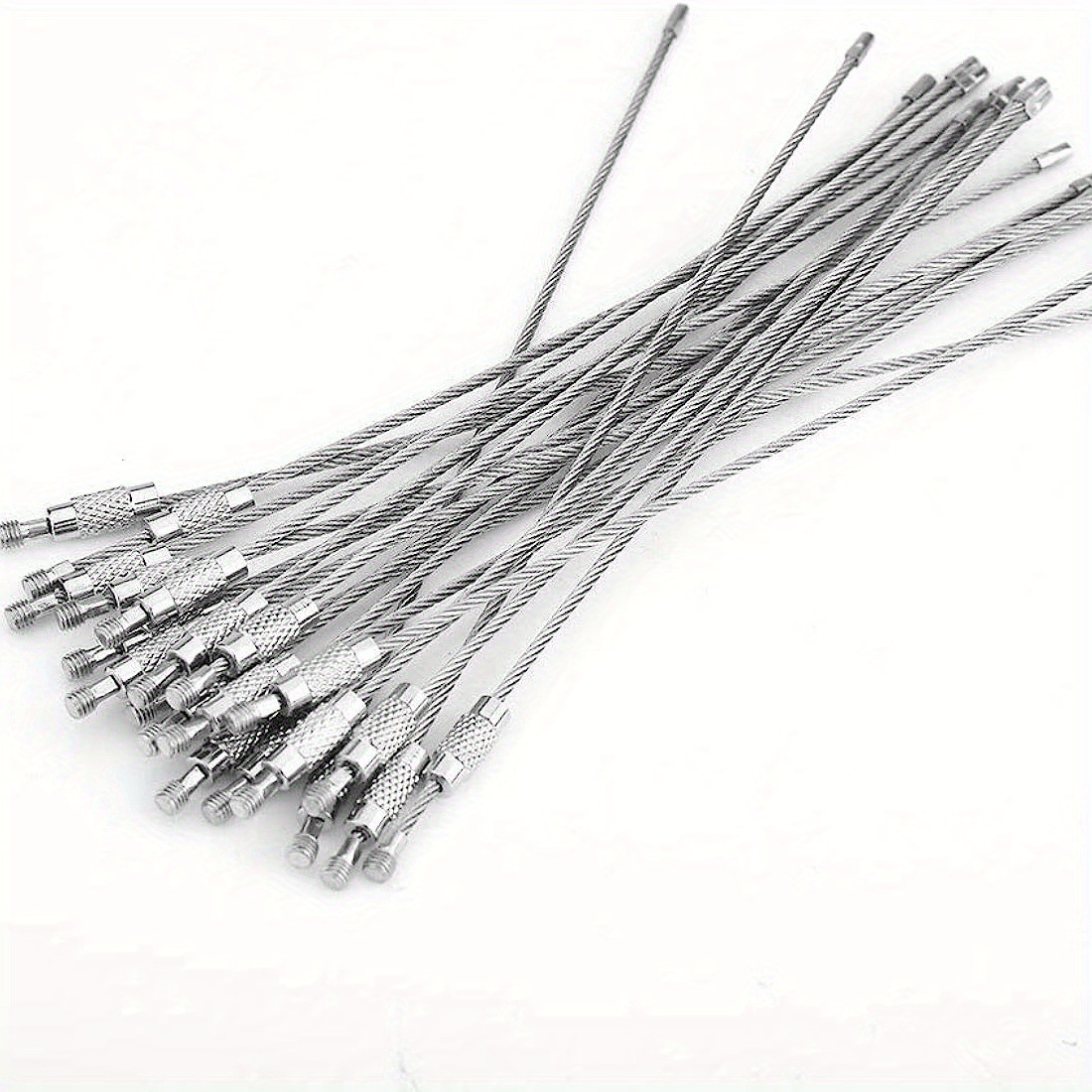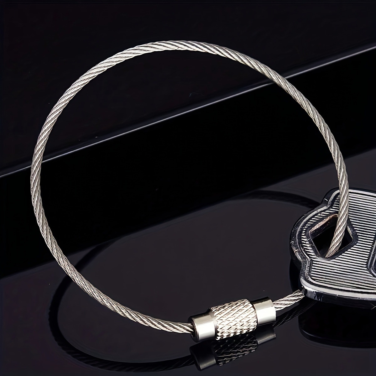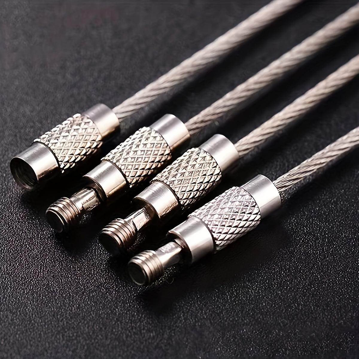 跨境热销10件不锈钢钥匙扣钢丝绳圈不同型号钥匙圈钢丝绳螺丝锁扣
