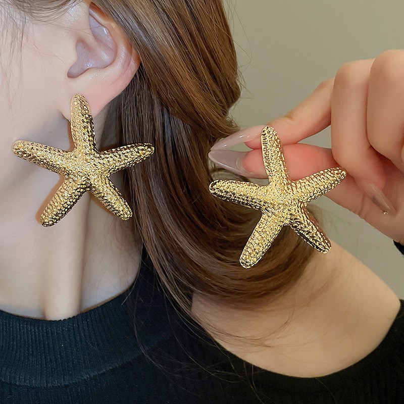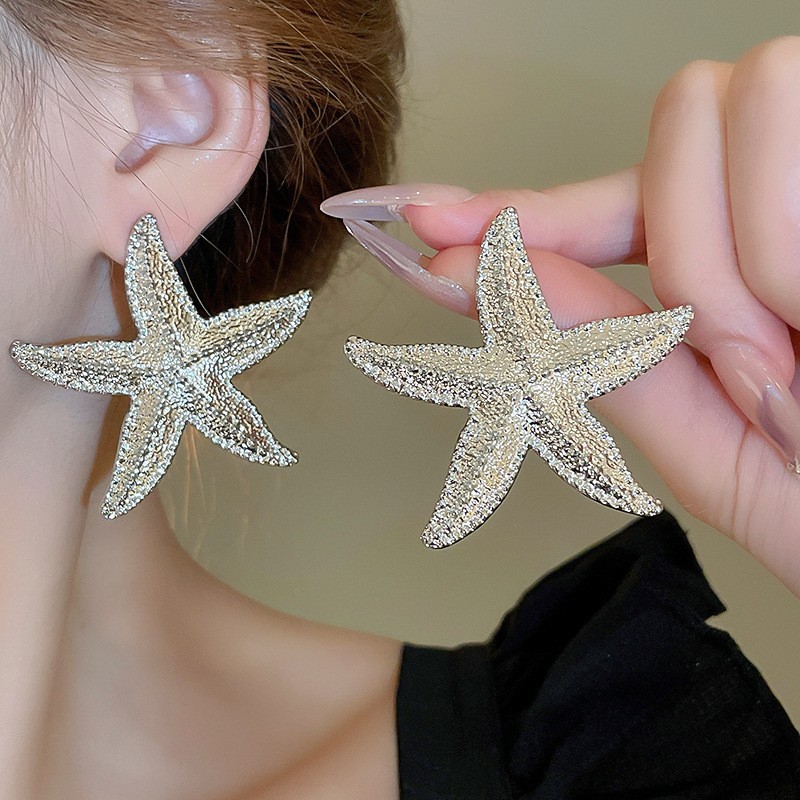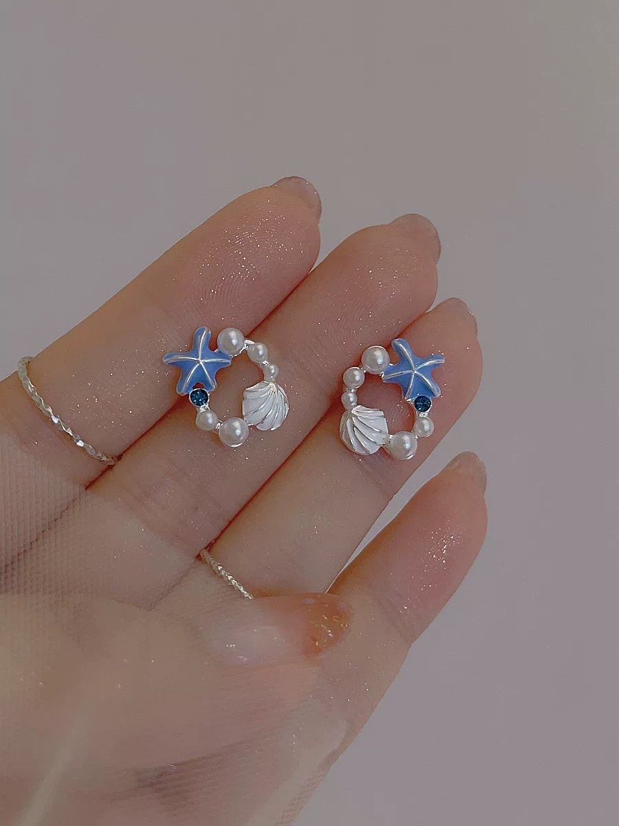 银针夏日海滩米珠耳钉女小巧精致百搭海星耳环轻奢高级感耳饰批发