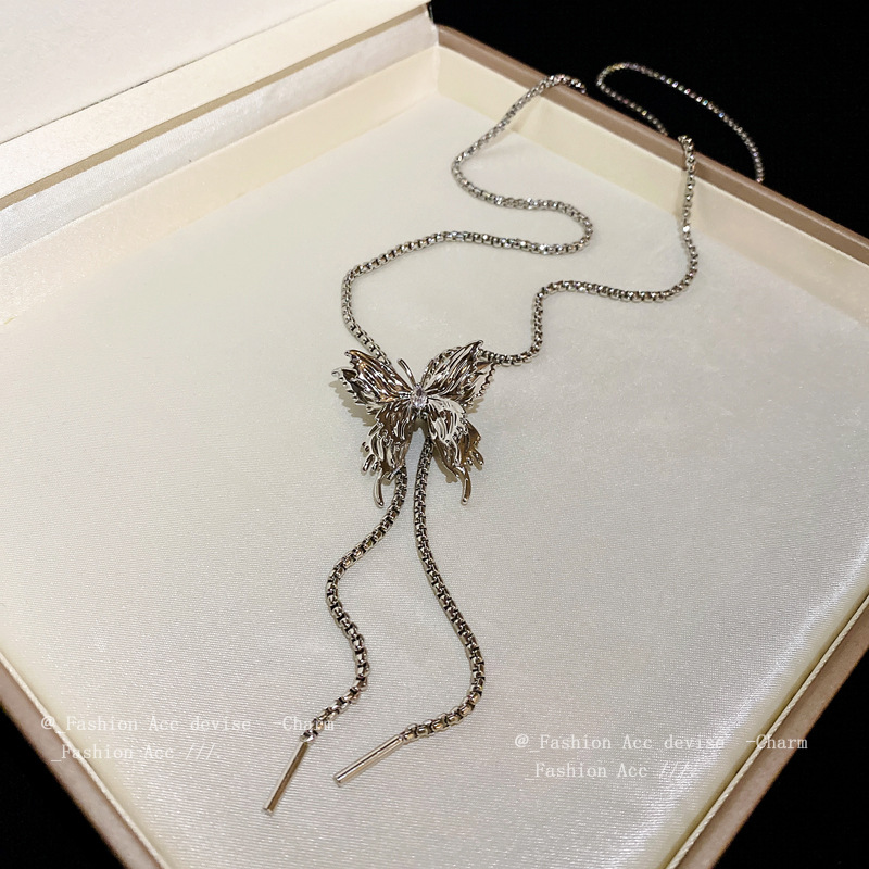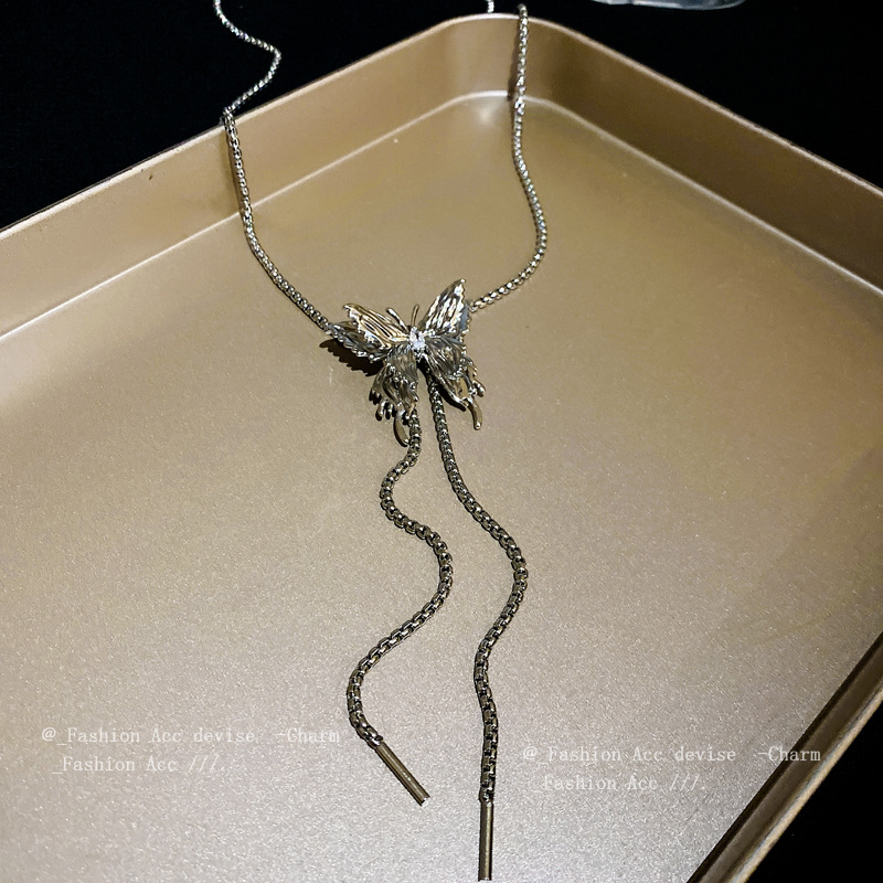 液态金属锆石蝴蝶可调节项链韩国时尚气质毛衣链个性设计项饰批发
