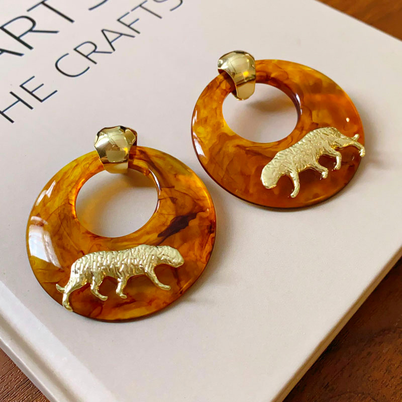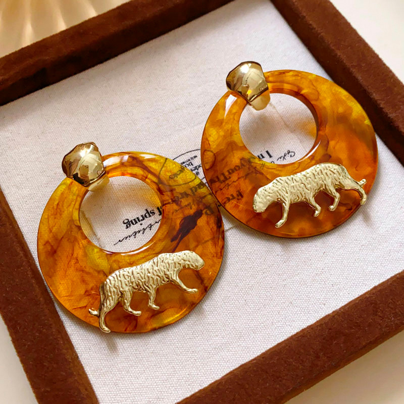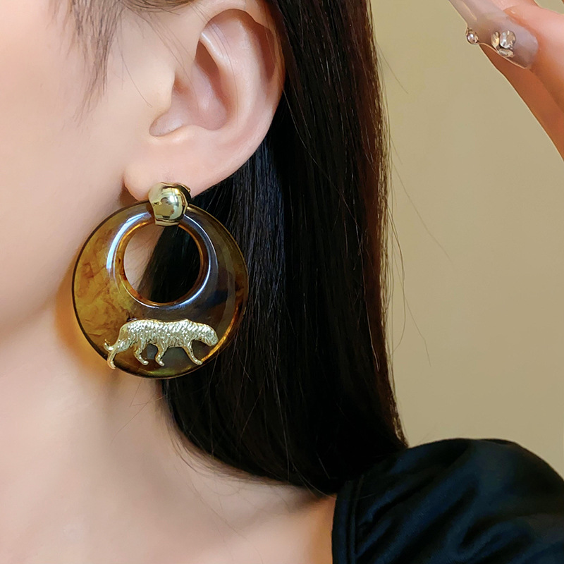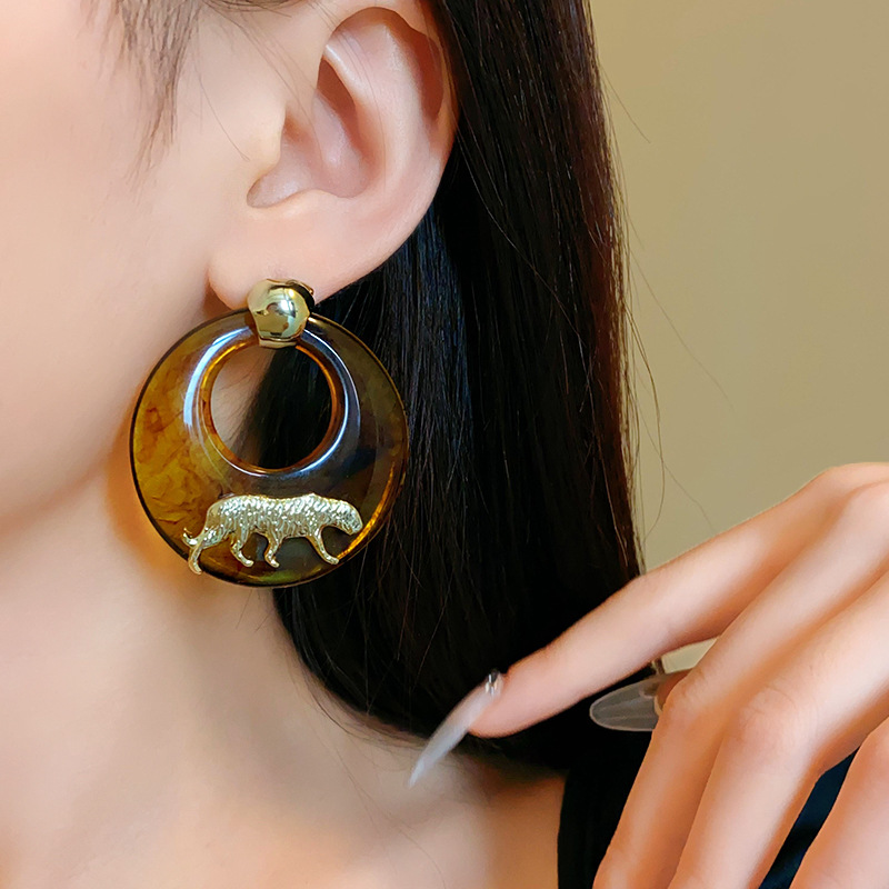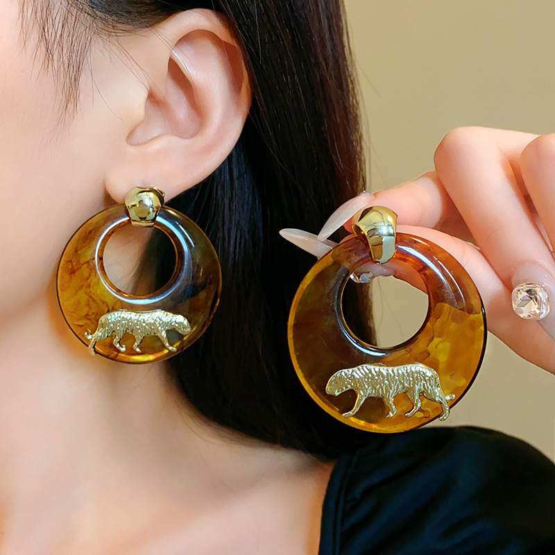 银针树脂圆环老虎耳环小众高级感港风耳坠时尚夸张设计感耳饰批发