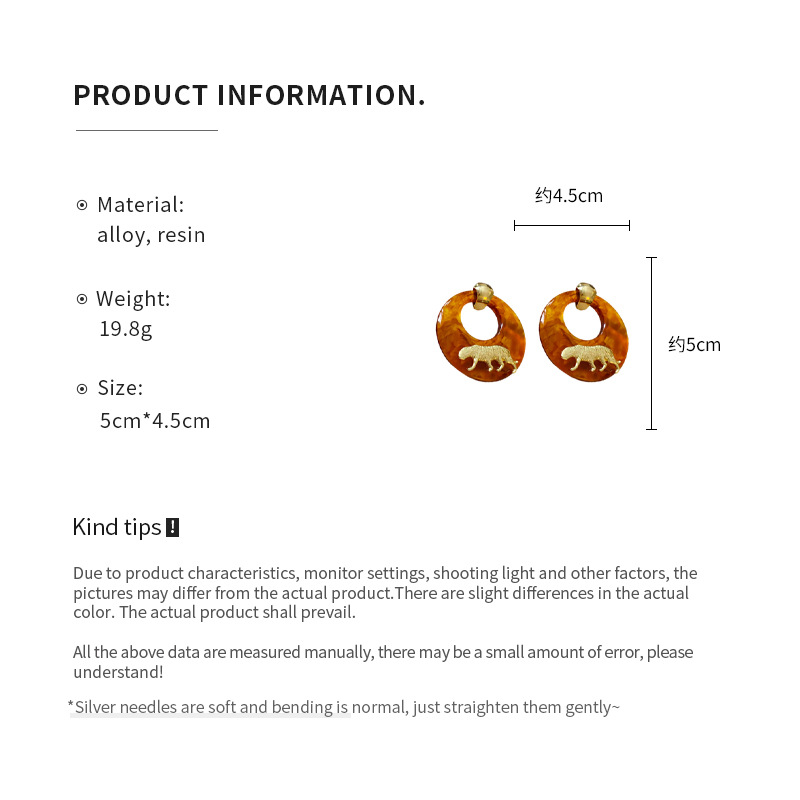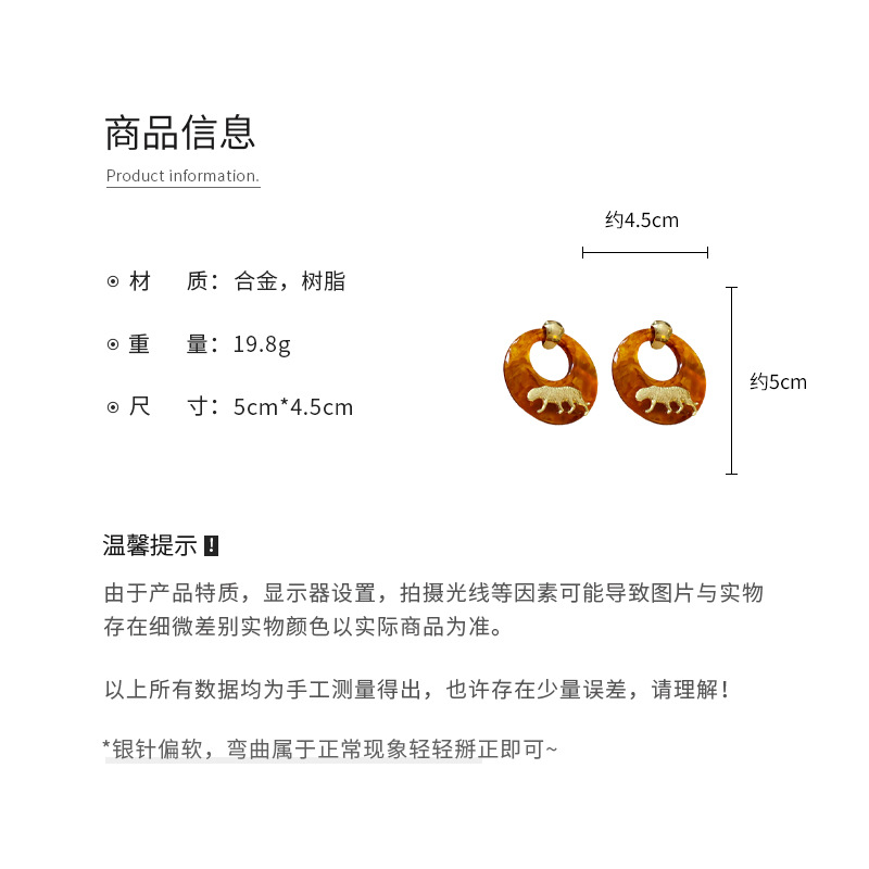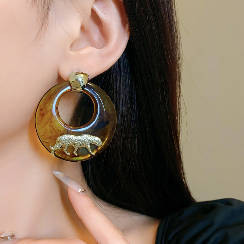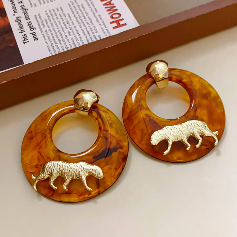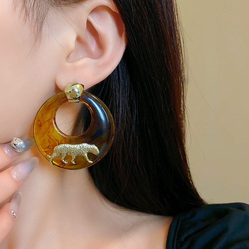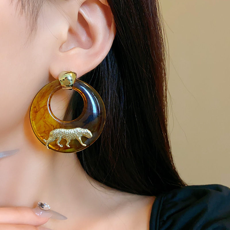银针树脂圆环老虎耳环小众高级感港风耳坠时尚夸张设计感耳饰批发