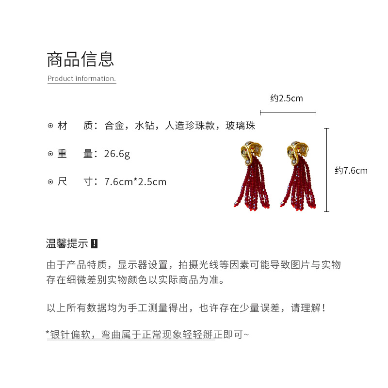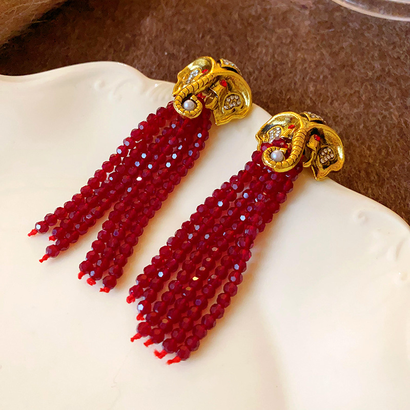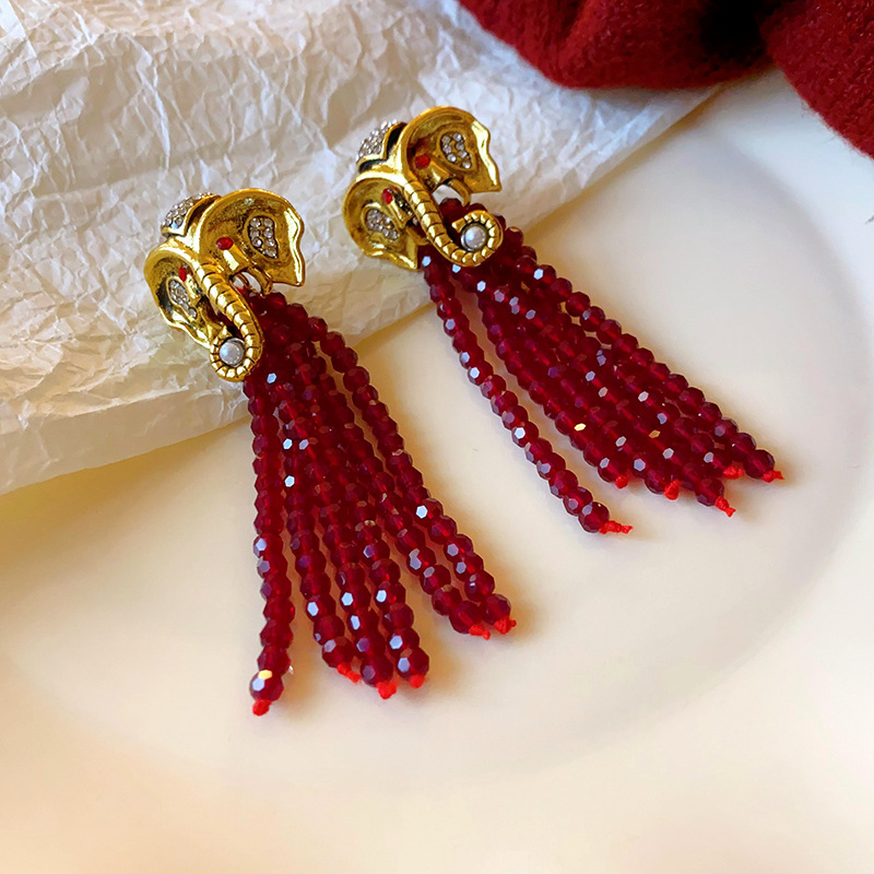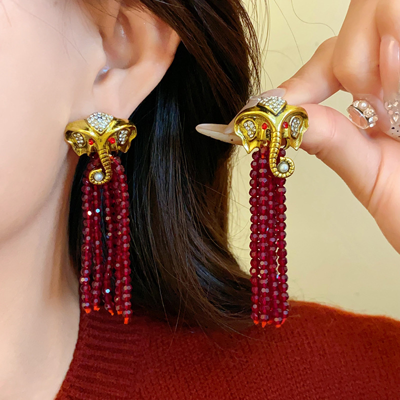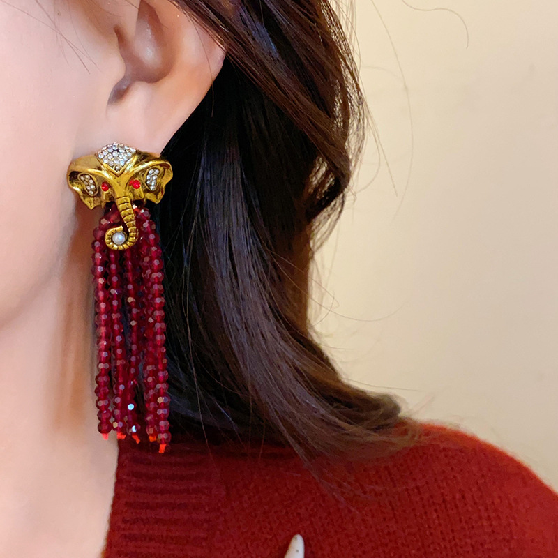 中古vintage耳饰银针镶钻大象人造珍珠耳环复古宫廷风气质耳坠女