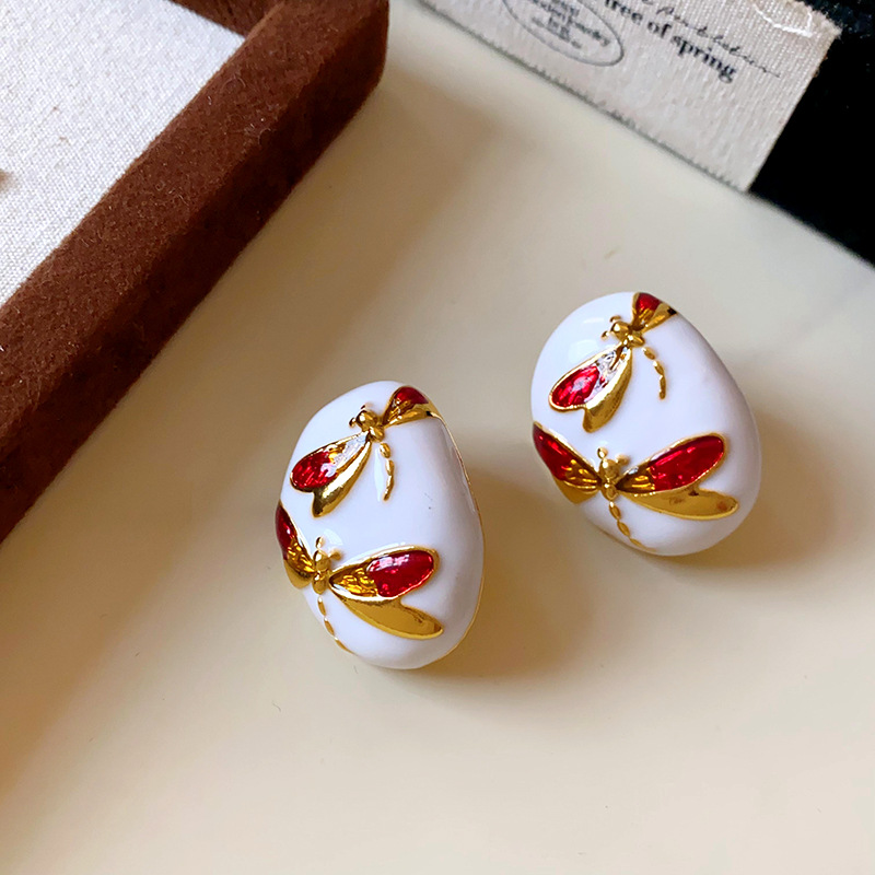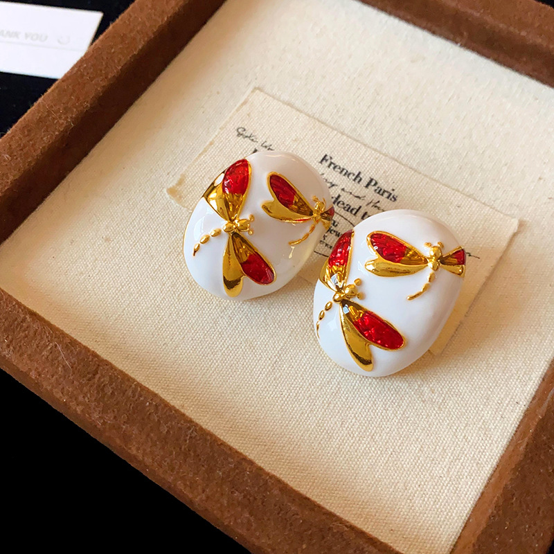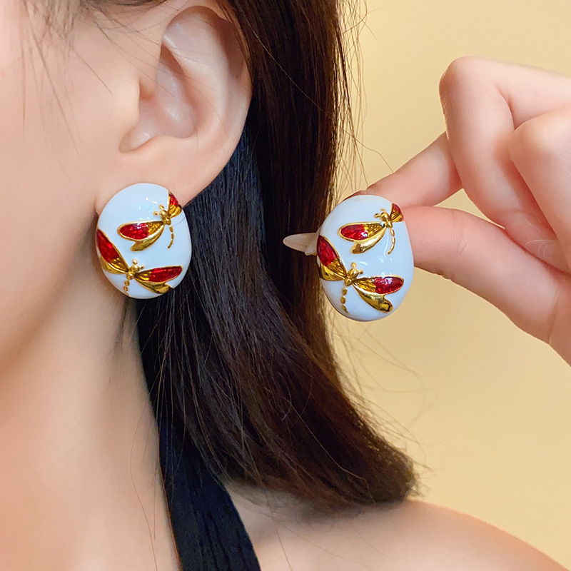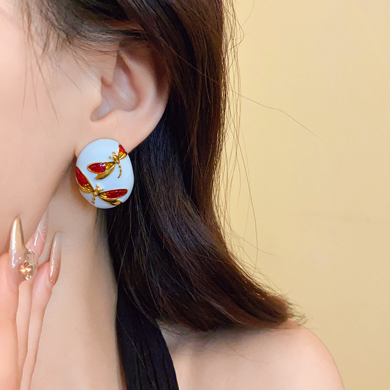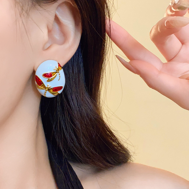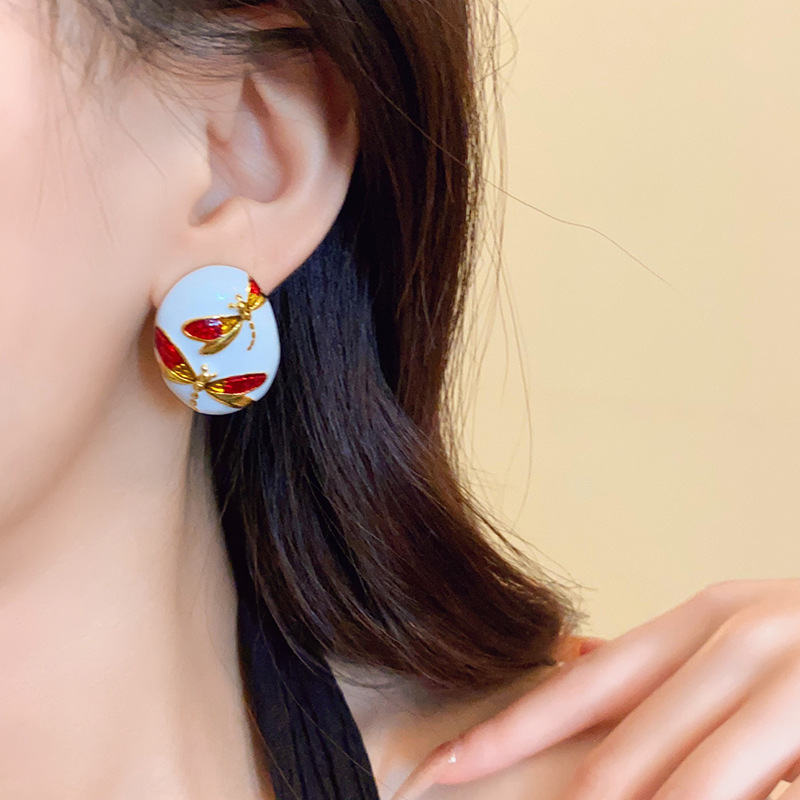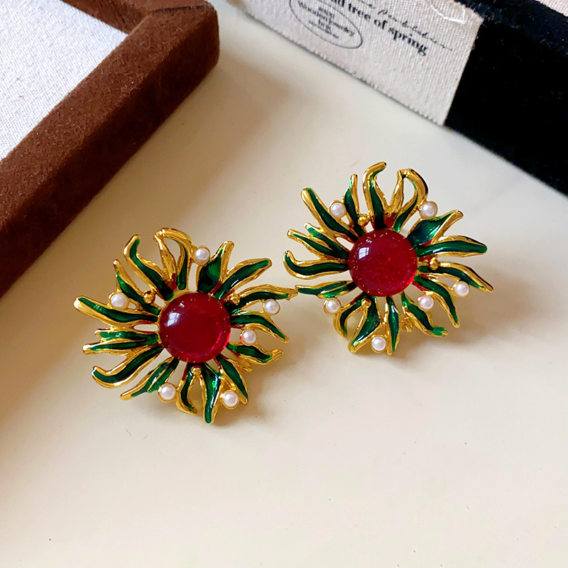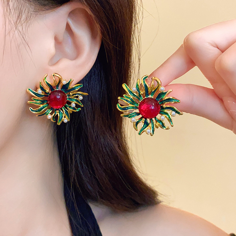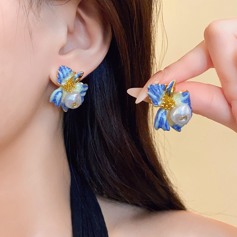 中古vintage饰品银针滴油花朵珍珠款耳钉气质耳环时尚高级感耳饰