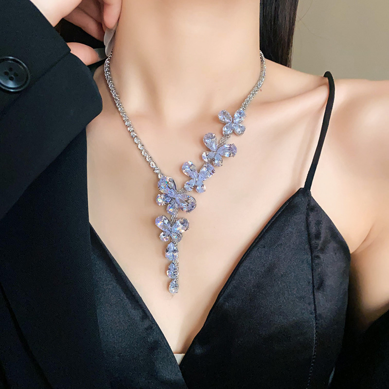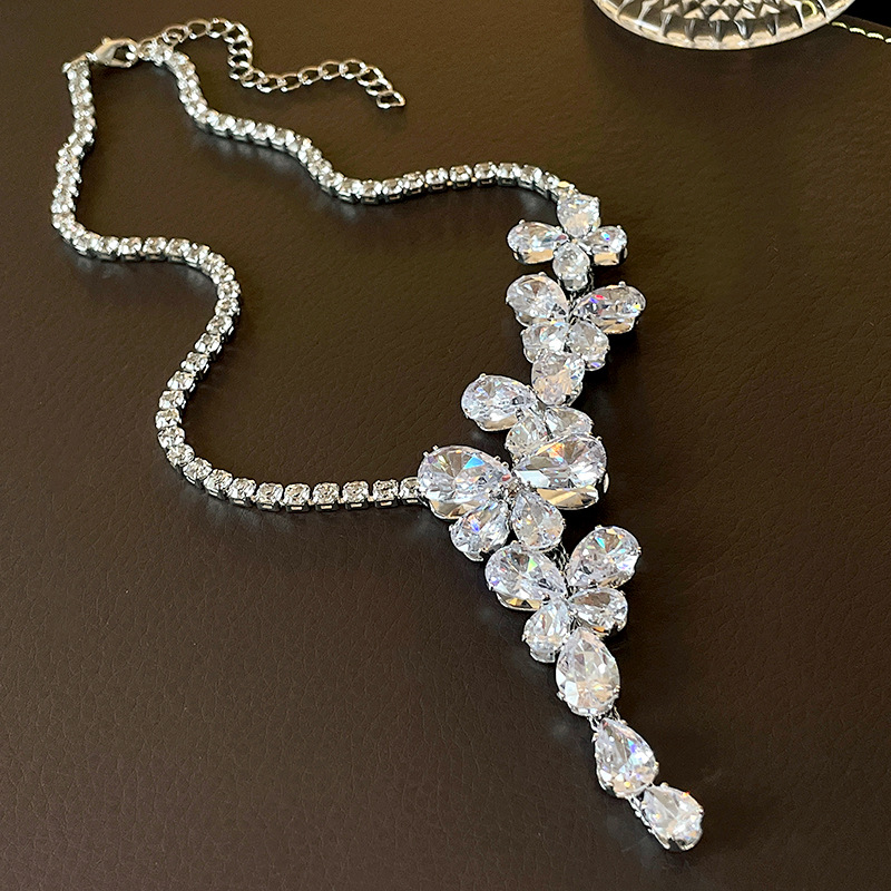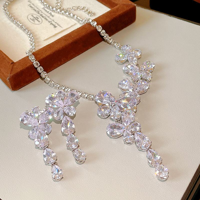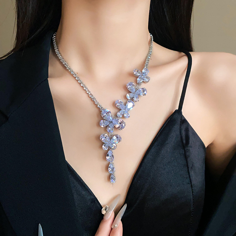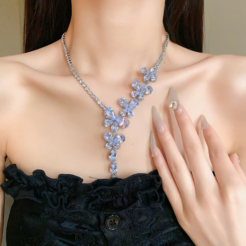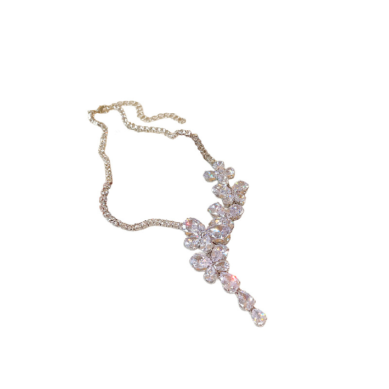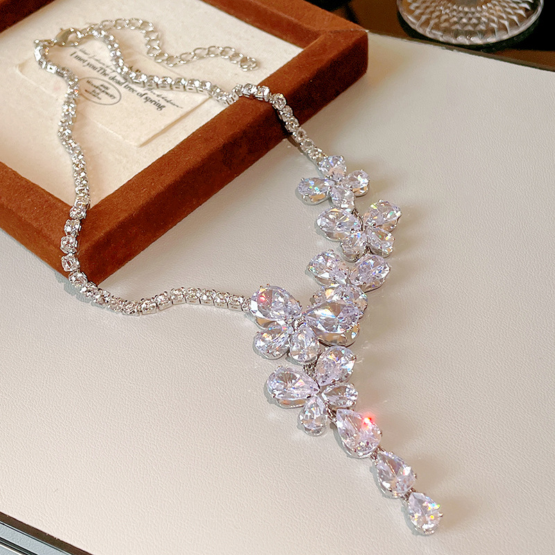 轻奢风蝴蝶花朵锆石水滴项链高级感礼服百搭锁骨链小众精致项饰女