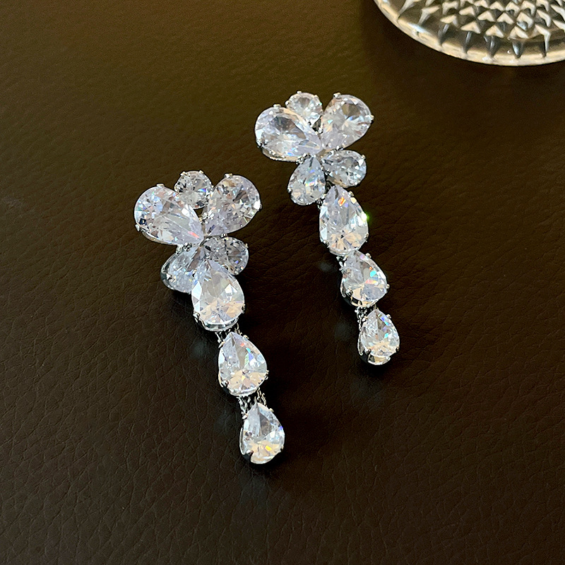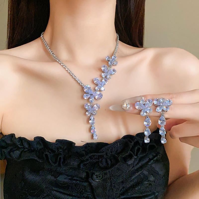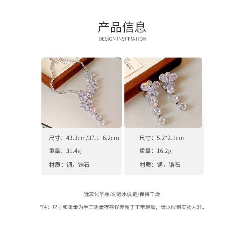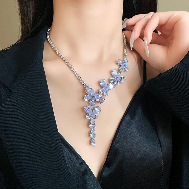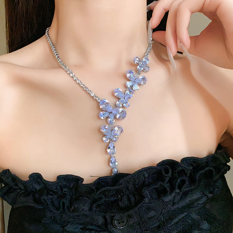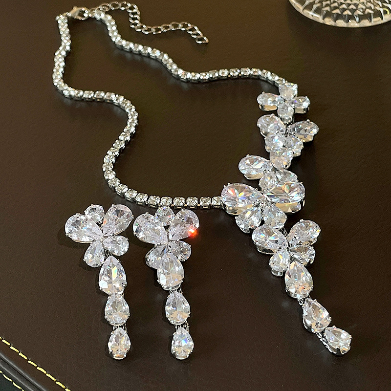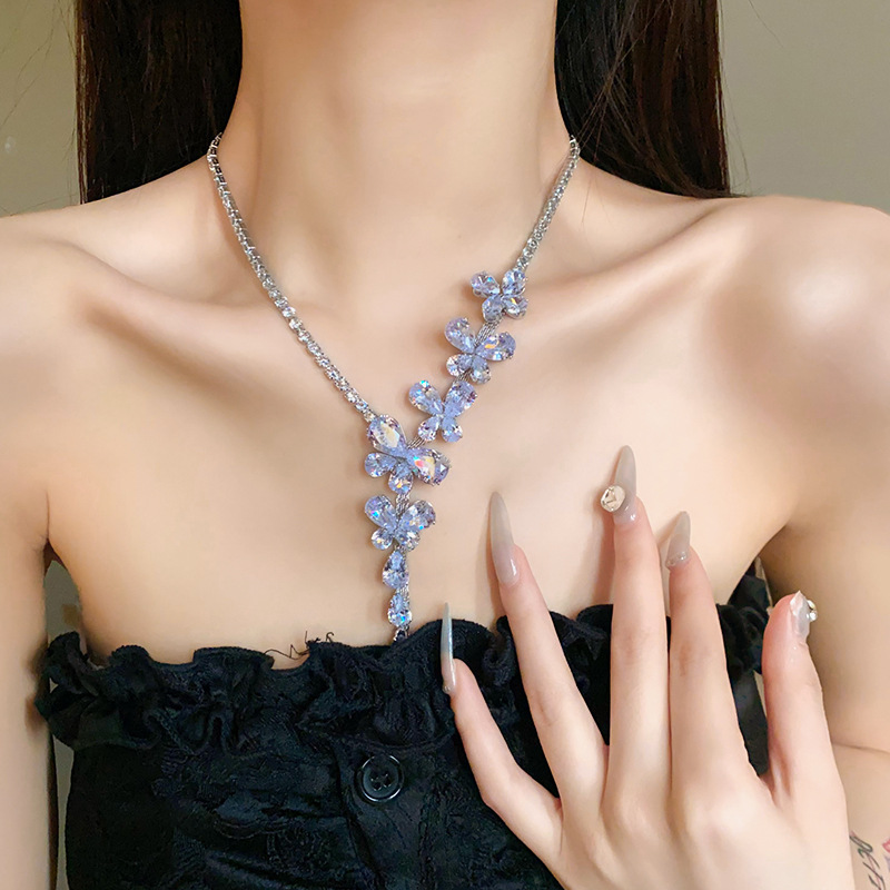 轻奢风蝴蝶花朵锆石水滴项链高级感礼服百搭锁骨链小众精致项饰女