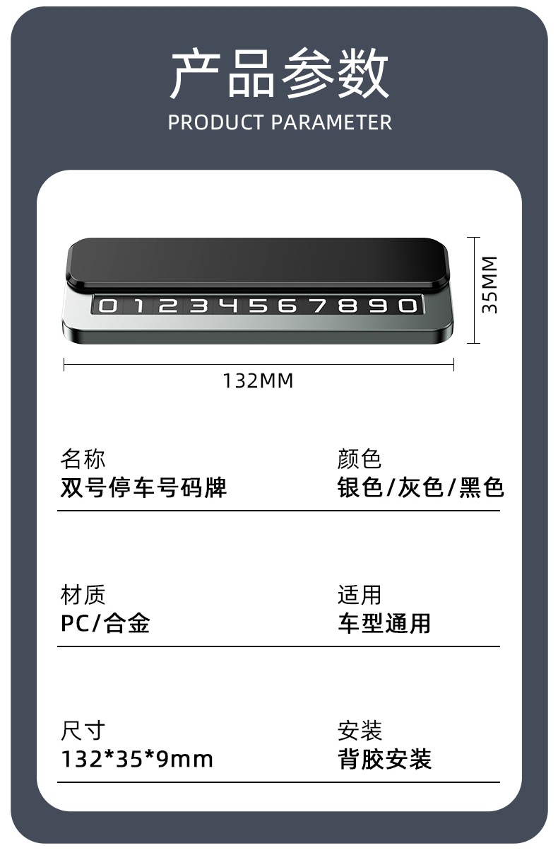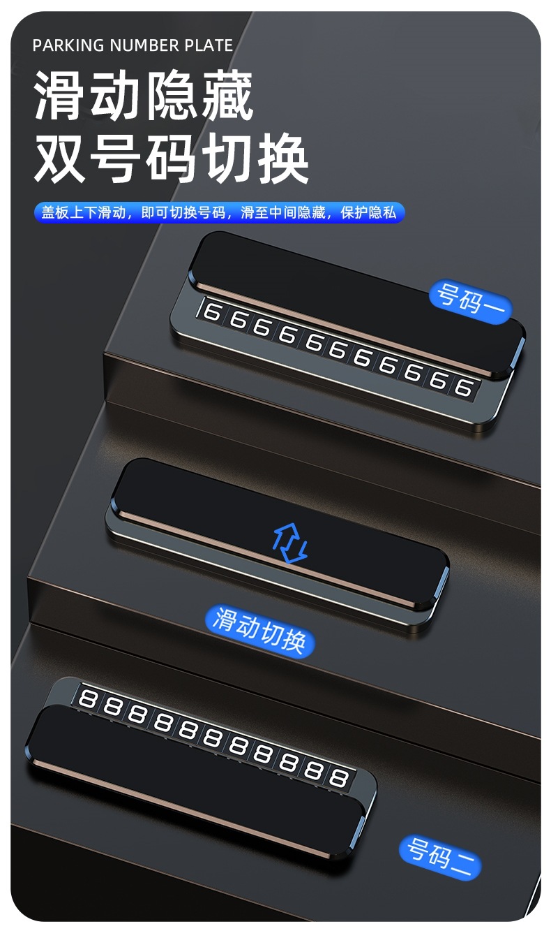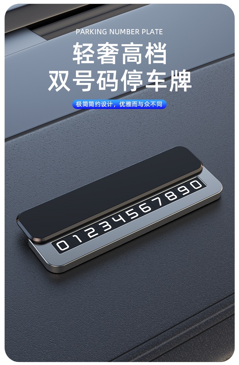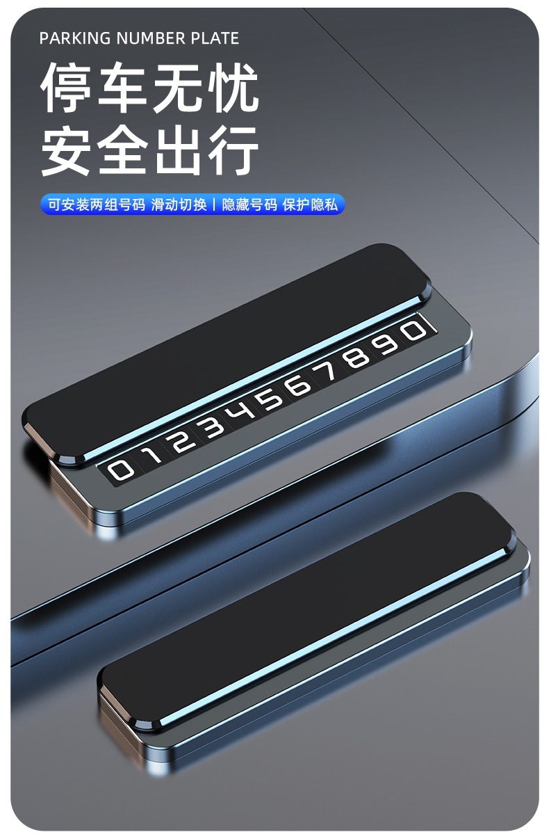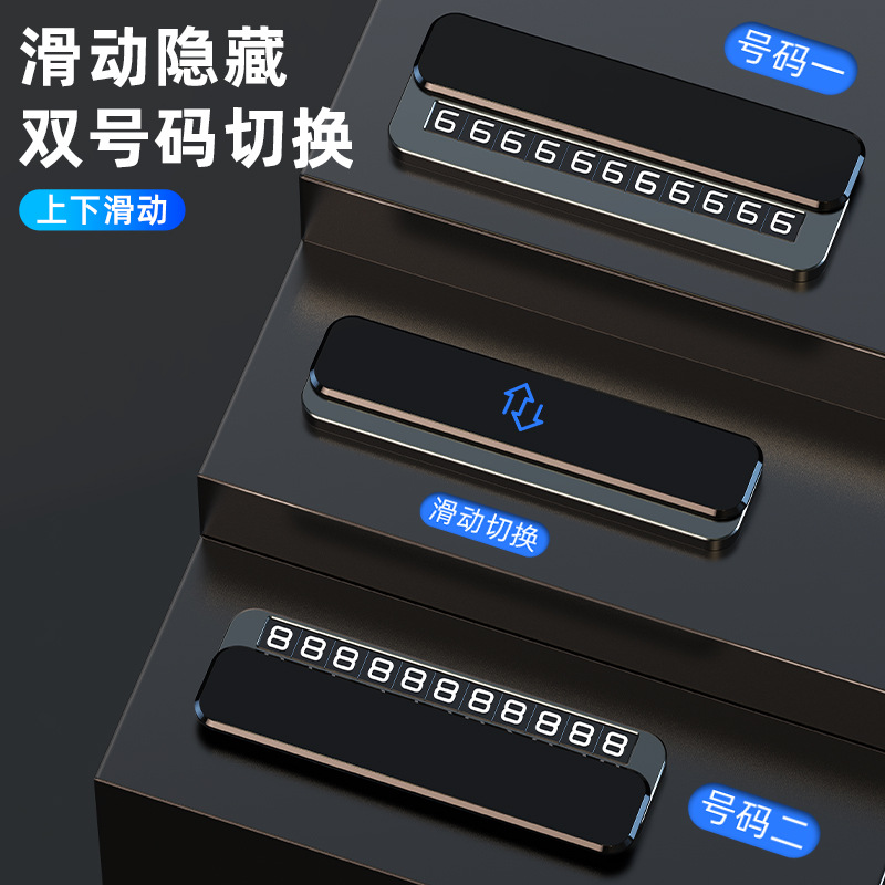临时停车双号码牌滑动切换隐藏电话移车牌汽车摆件金属数字挪车牌