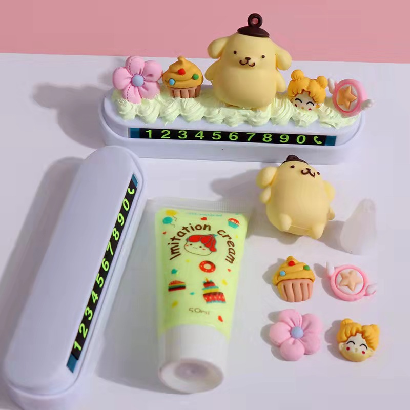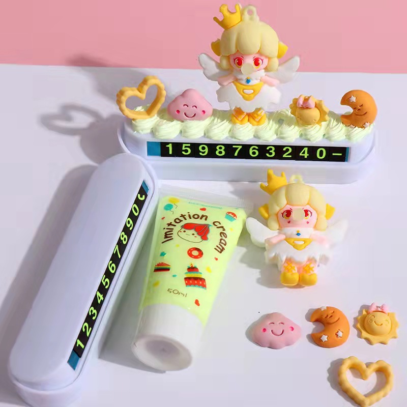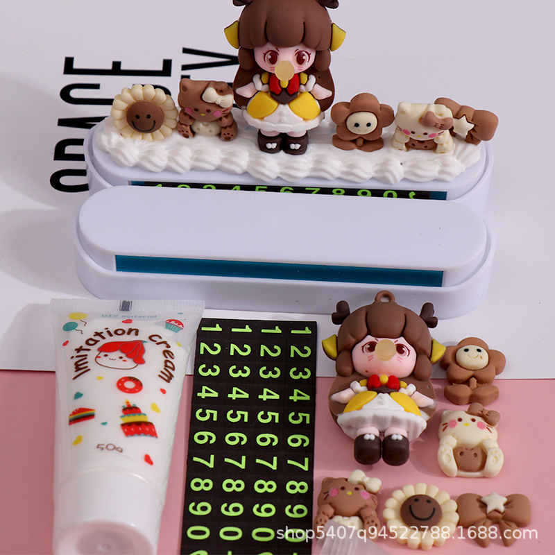可爱奶油胶手工diy材料包停车牌挪车手机号码牌自制汽车临时停靠
