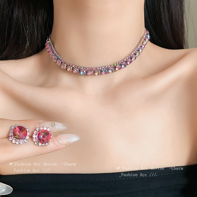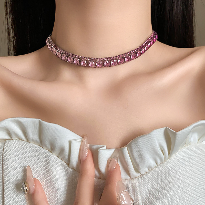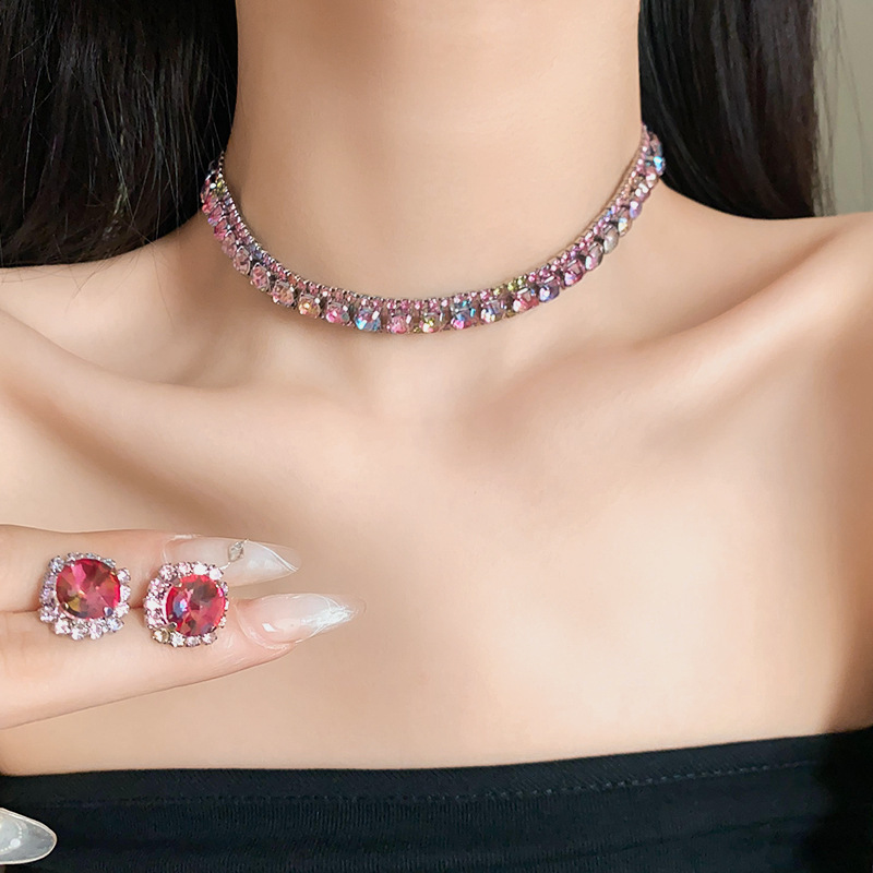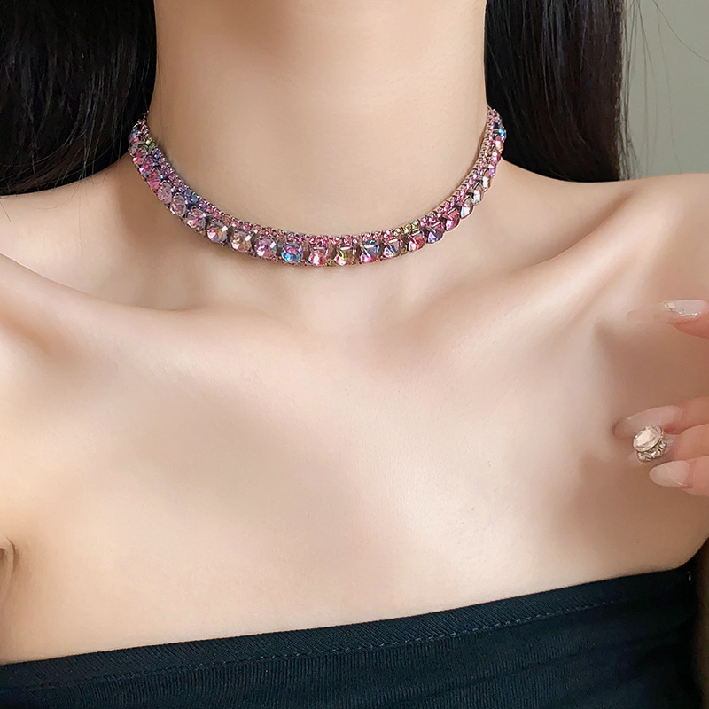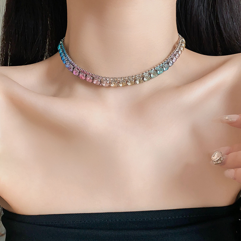 欧美镶钻方形choker项链高级感轻奢风气质锁骨链颈链精致通勤项饰