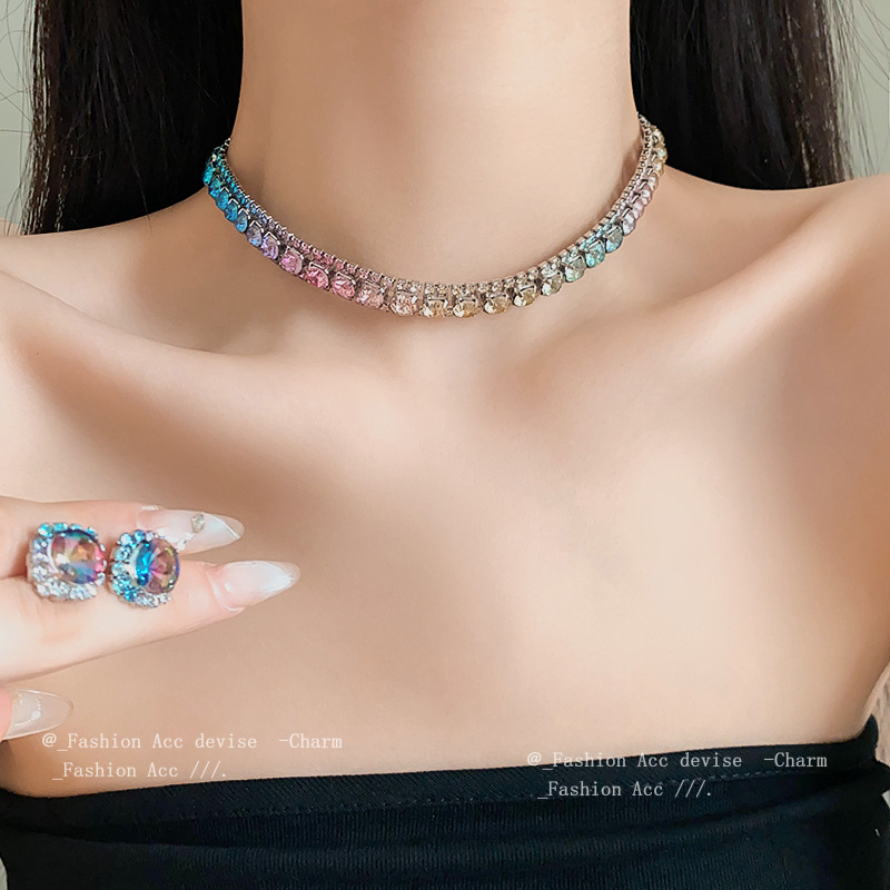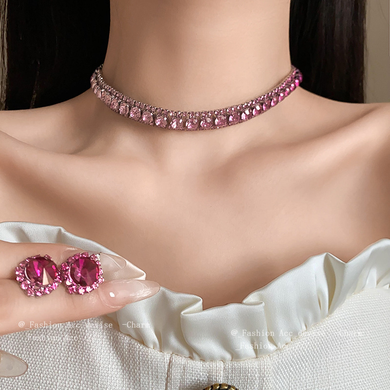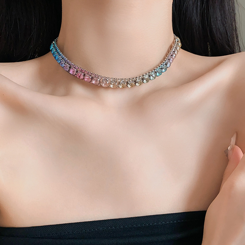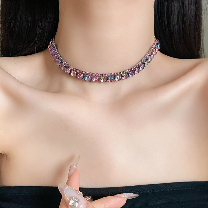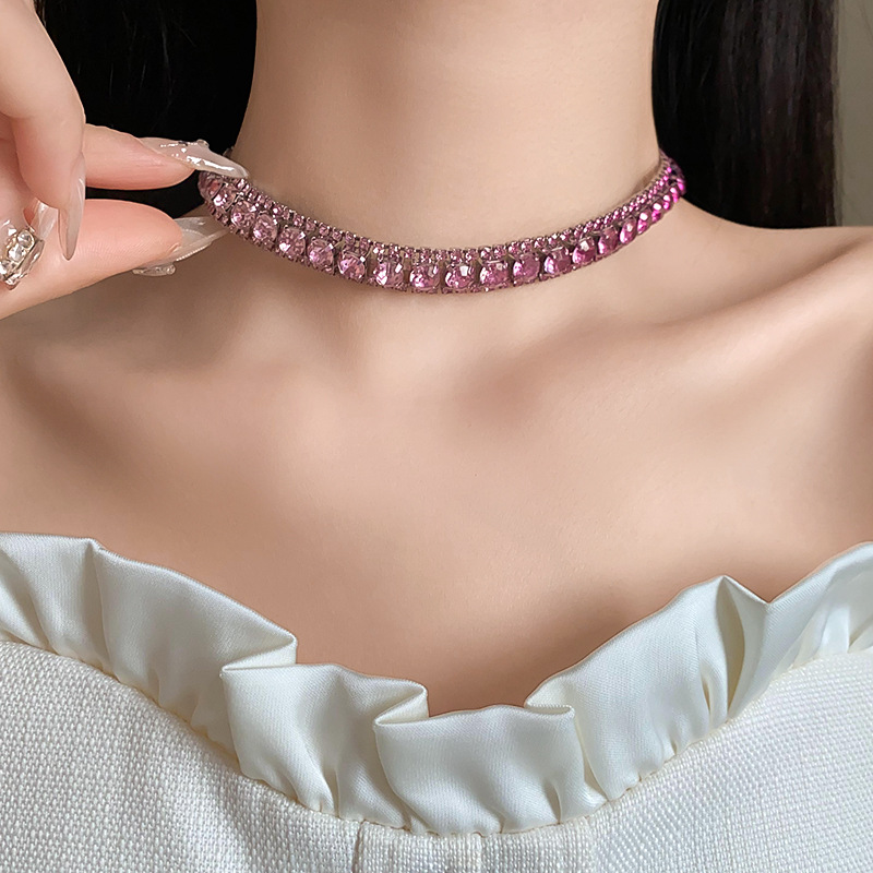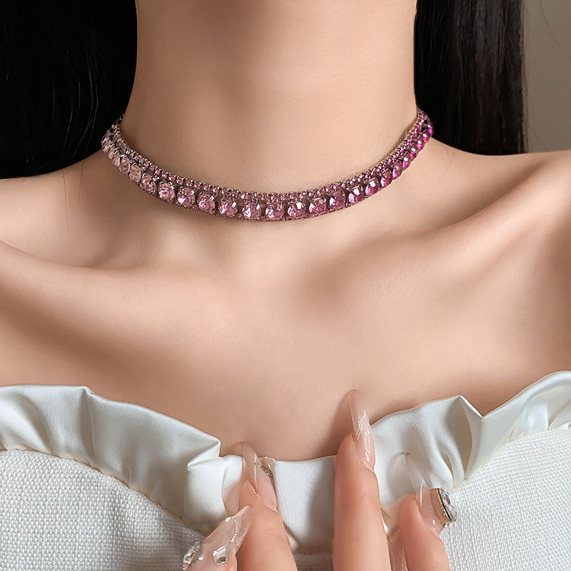 欧美镶钻方形choker项链高级感轻奢风气质锁骨链颈链精致通勤项饰