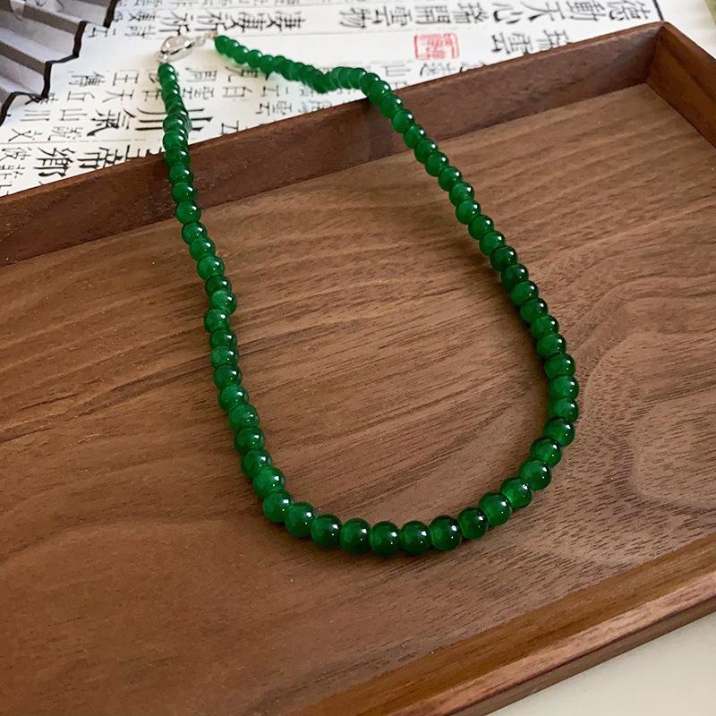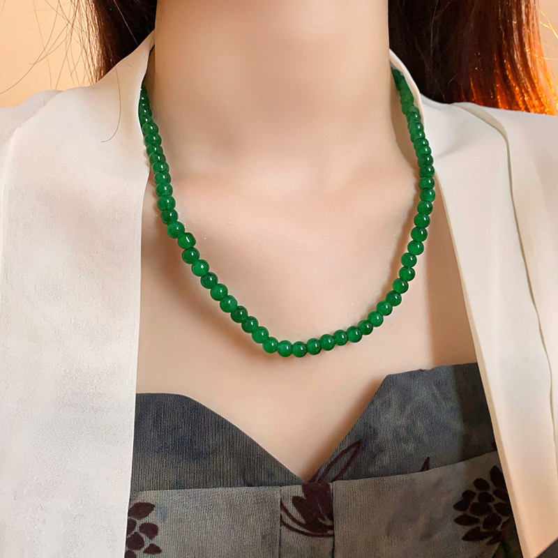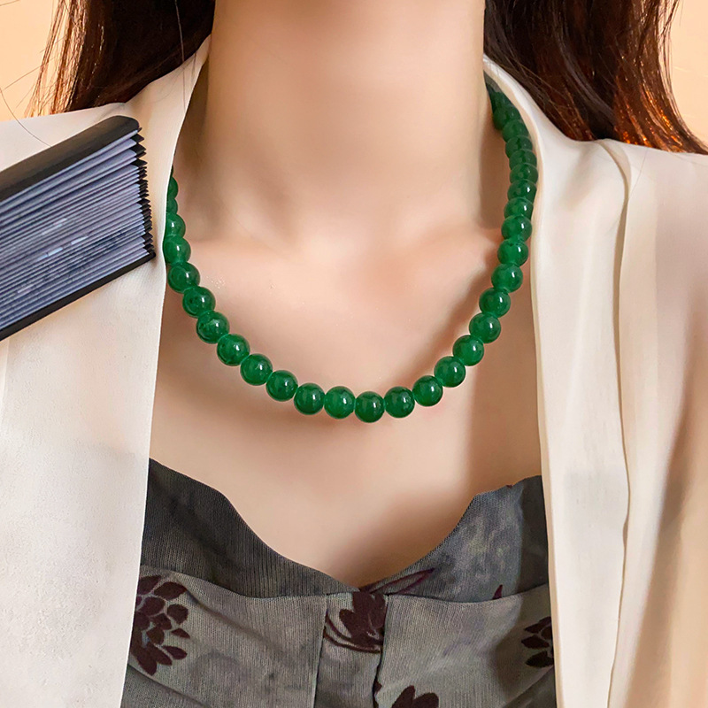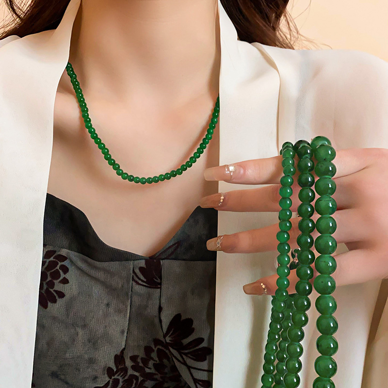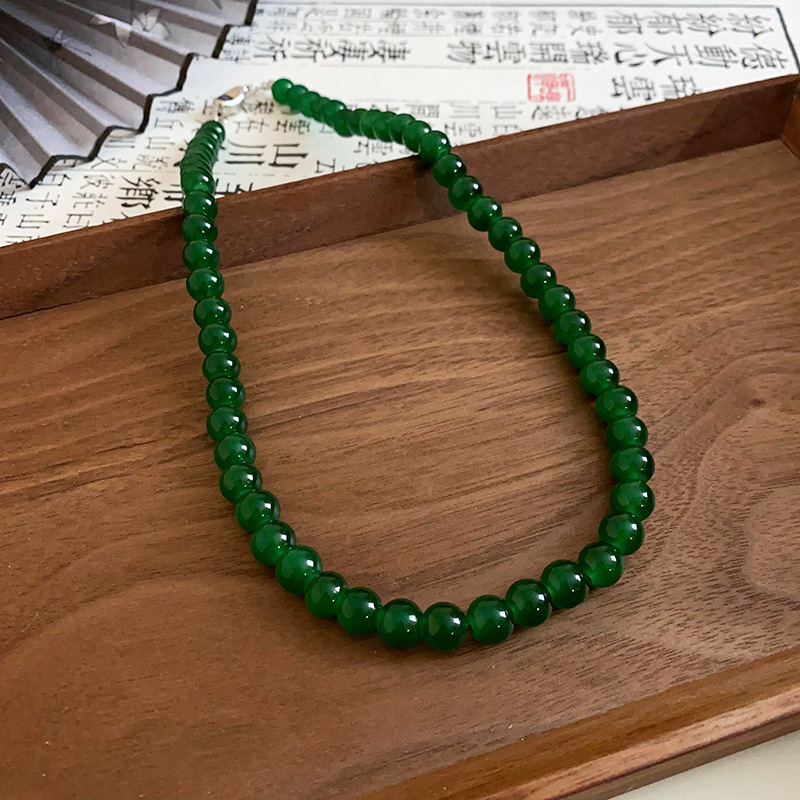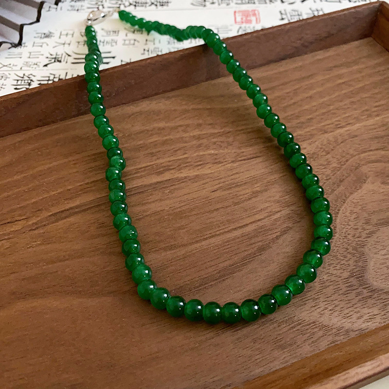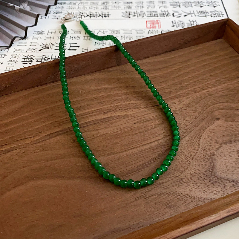 新中式祖母绿琉璃珠项链气质时尚设计感锁骨链国潮中国风饰品批发