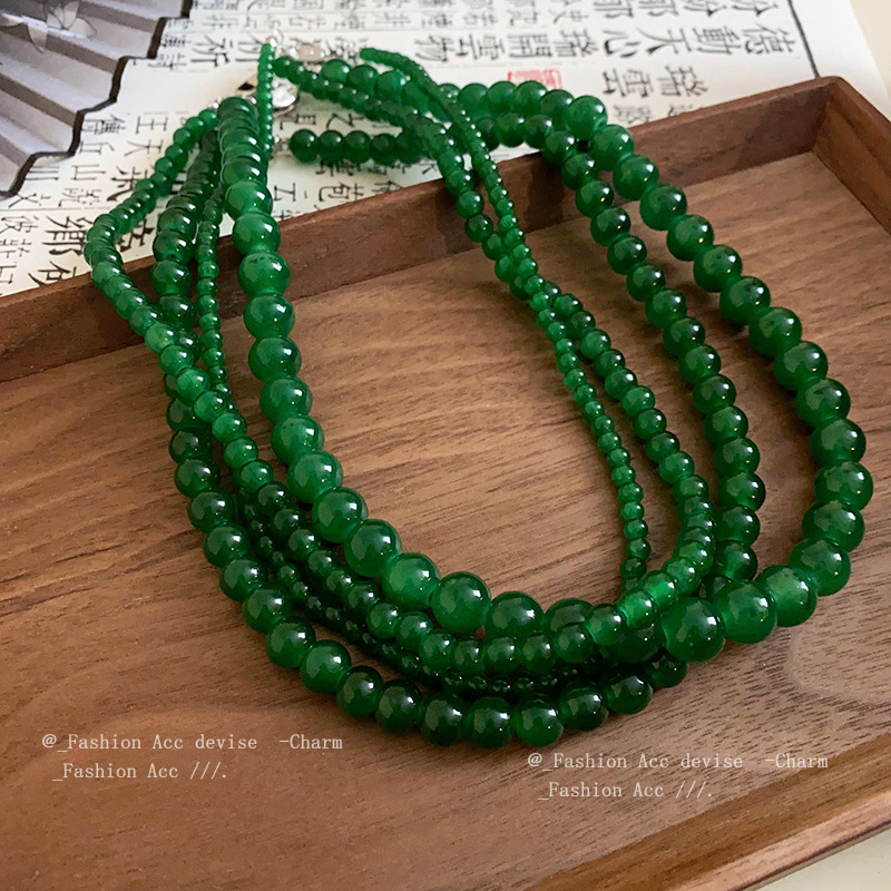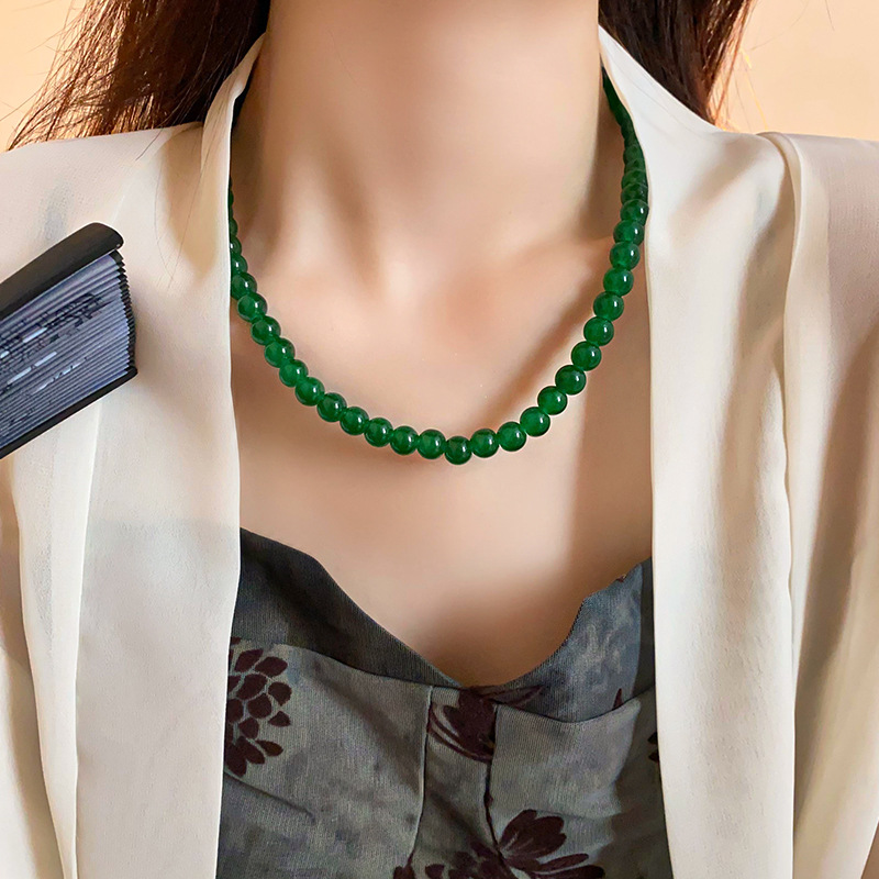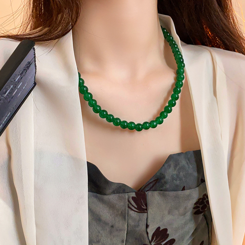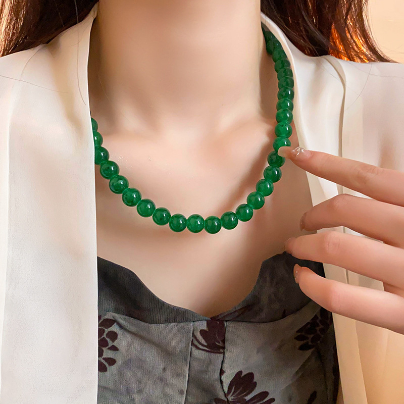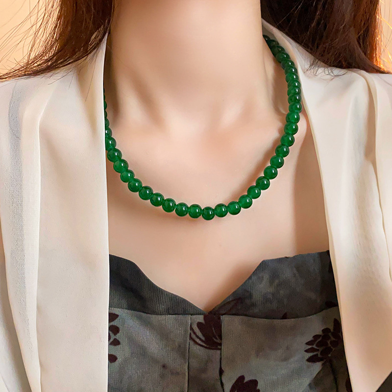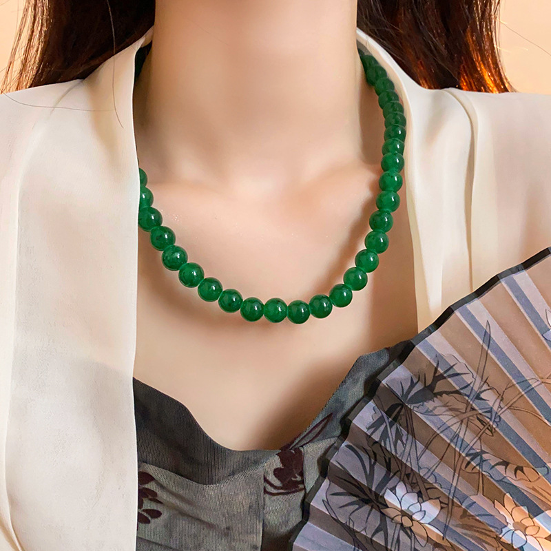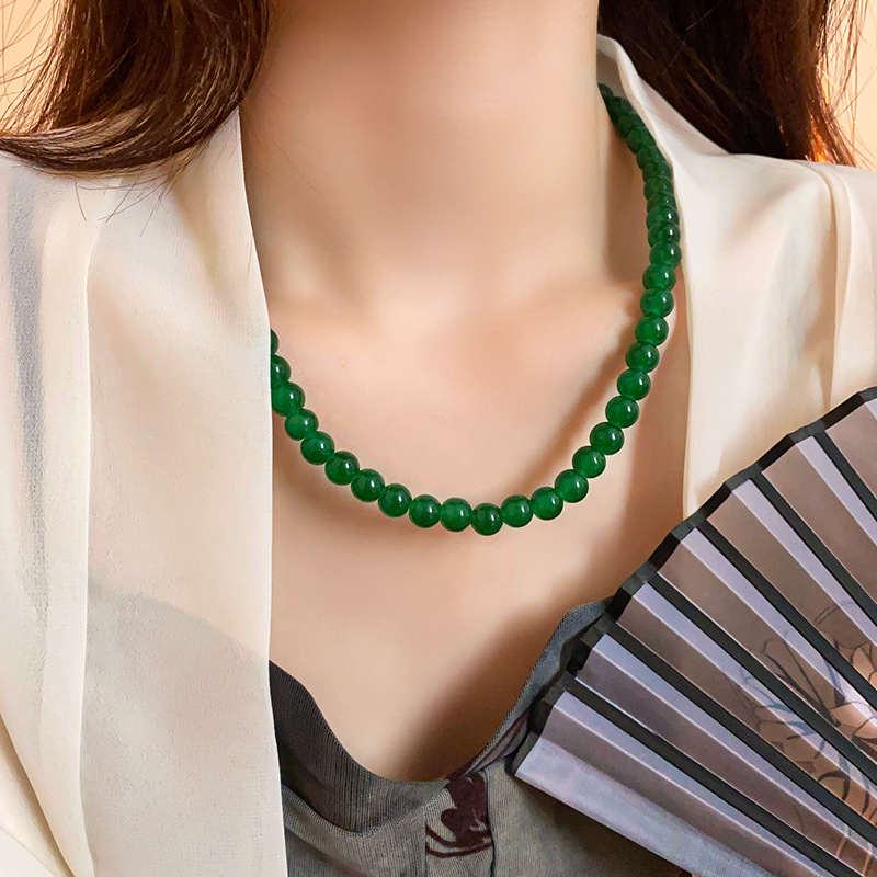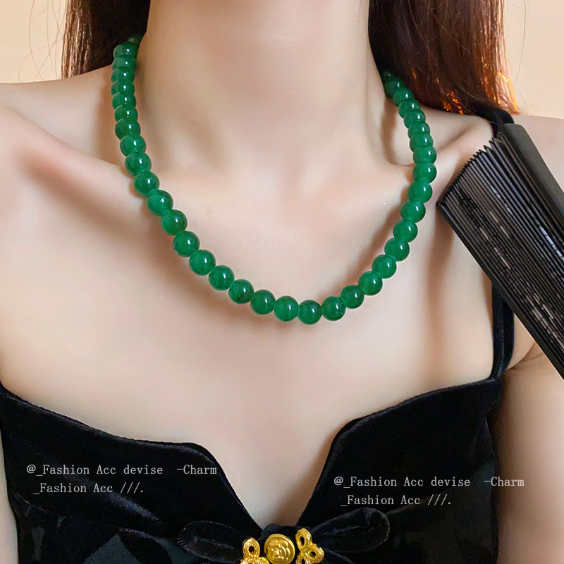新中式祖母绿琉璃珠项链气质时尚设计感锁骨链国潮中国风饰品批发