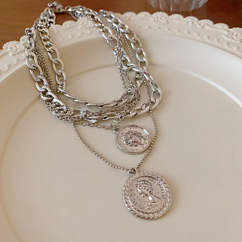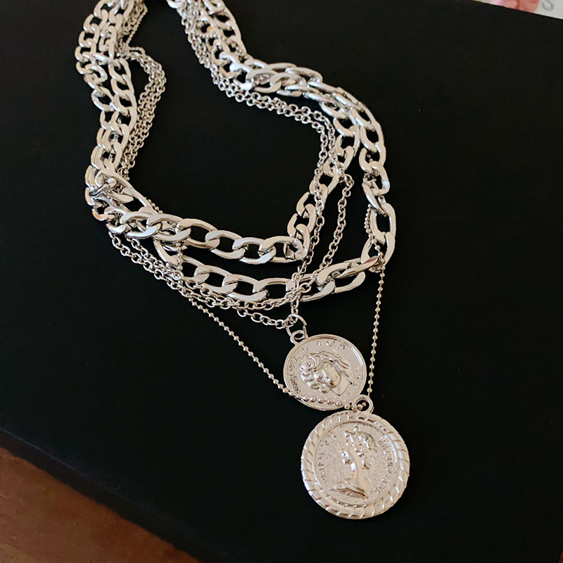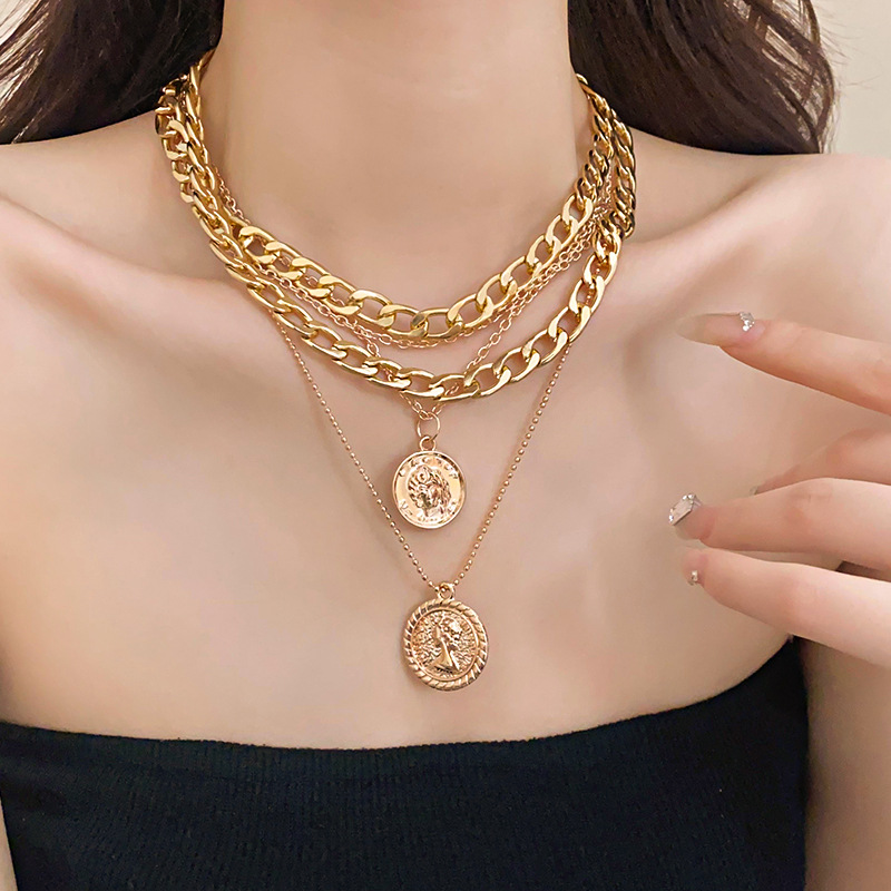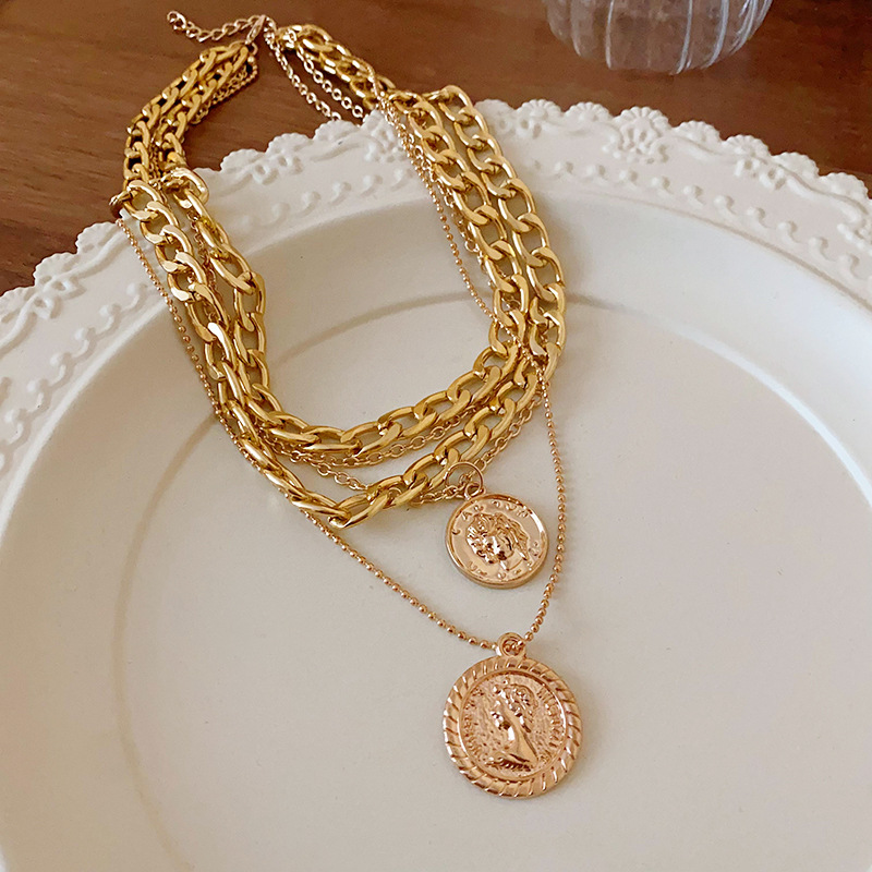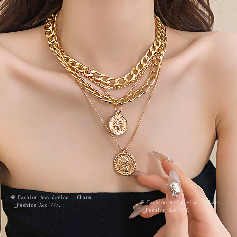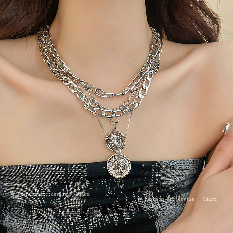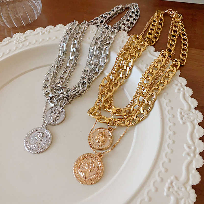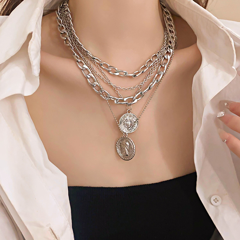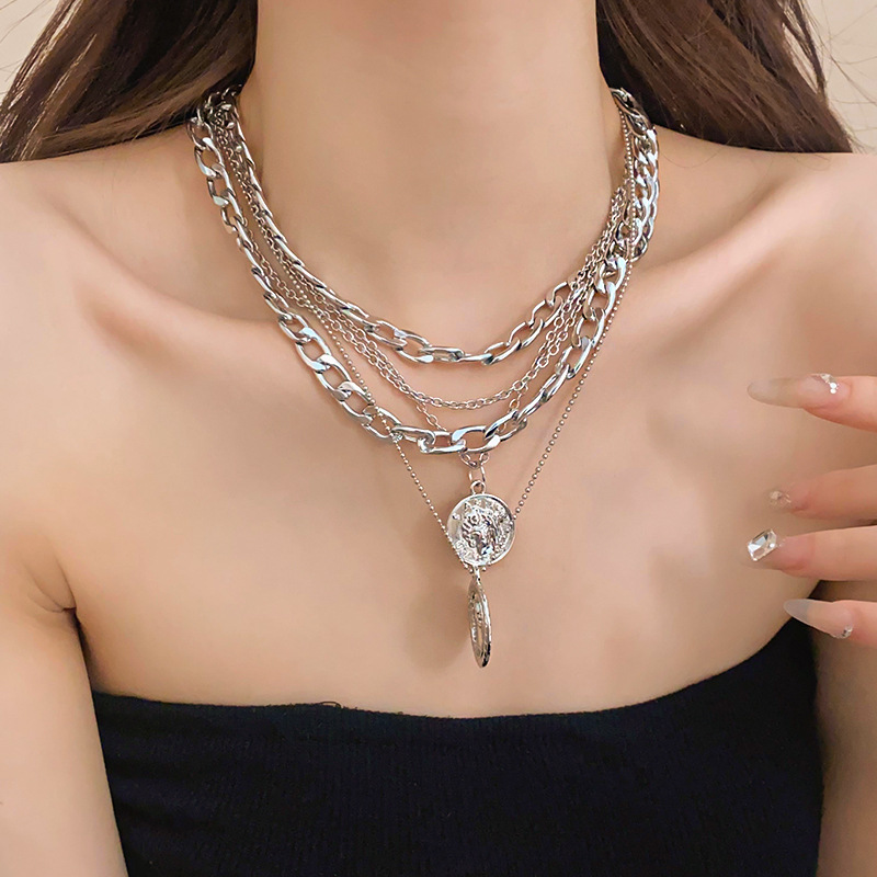 欧美跨境人像多层项链小众金属冷淡风锁骨链时尚轻奢高级感饰品女