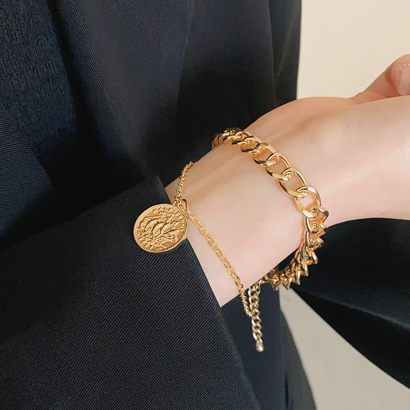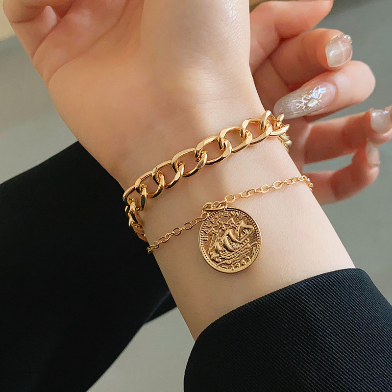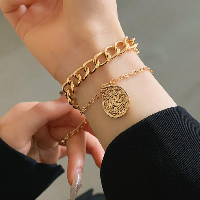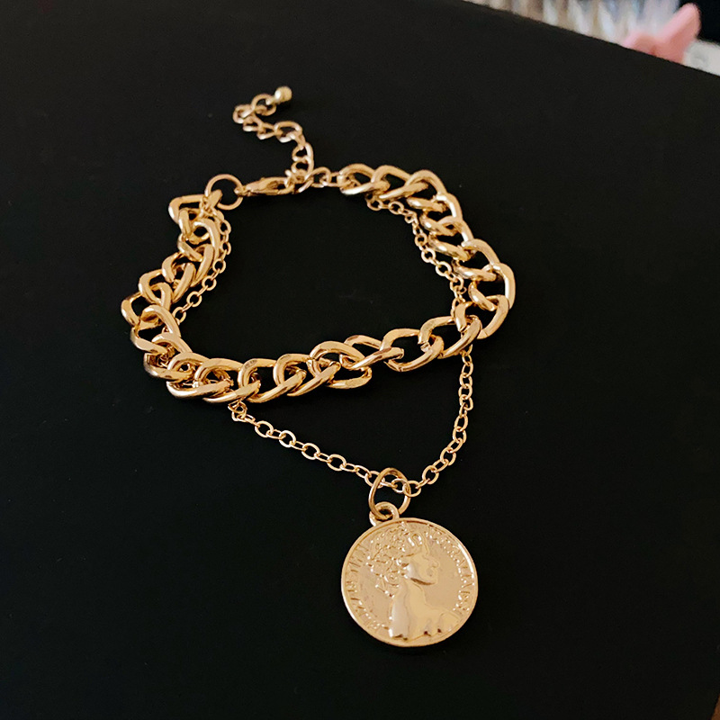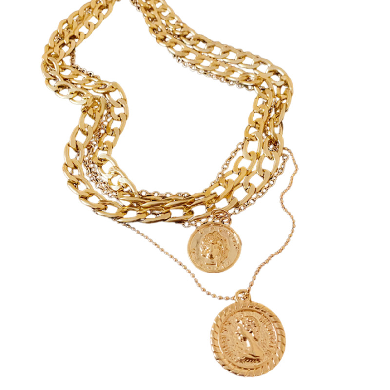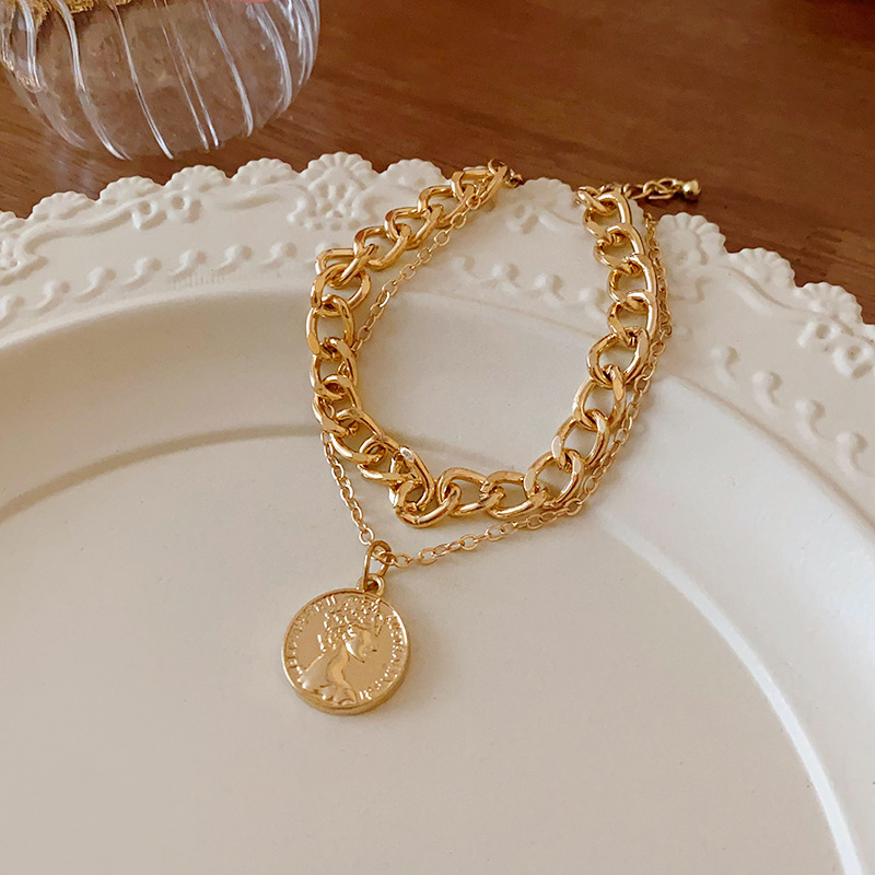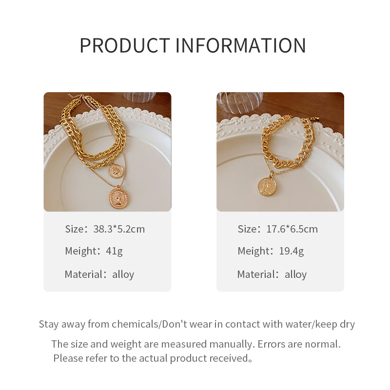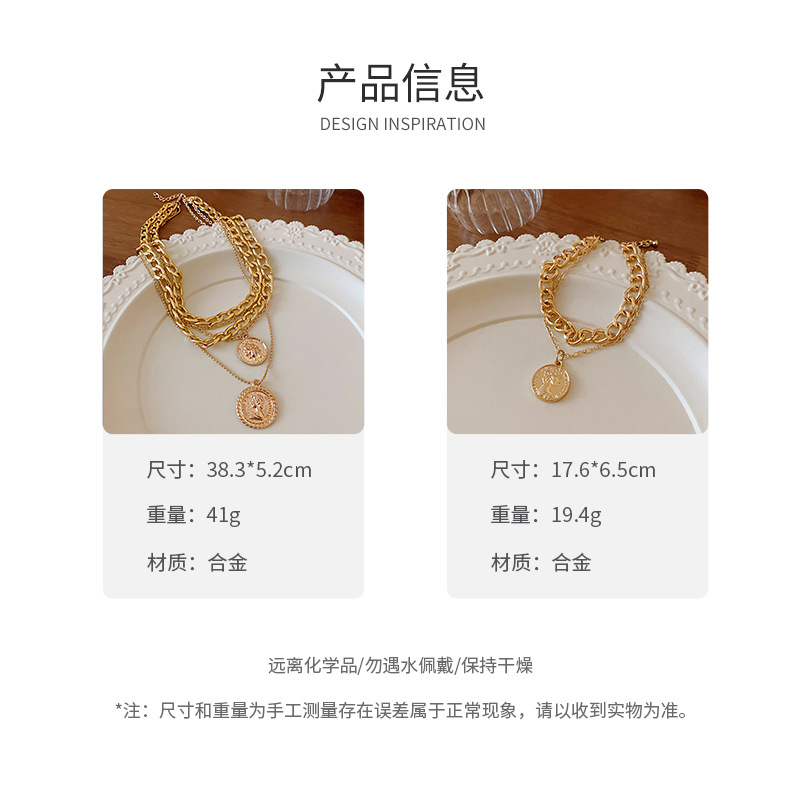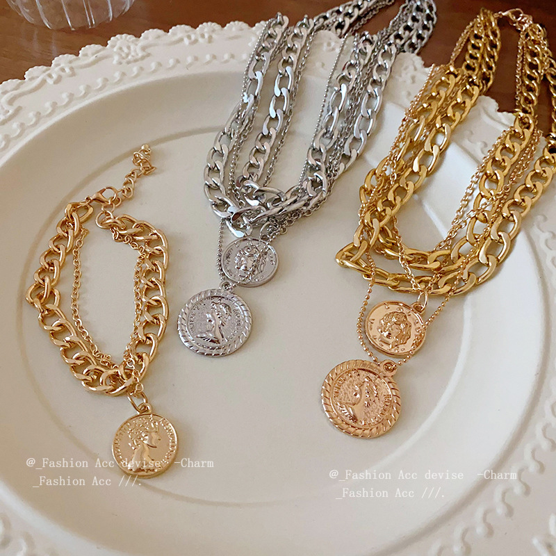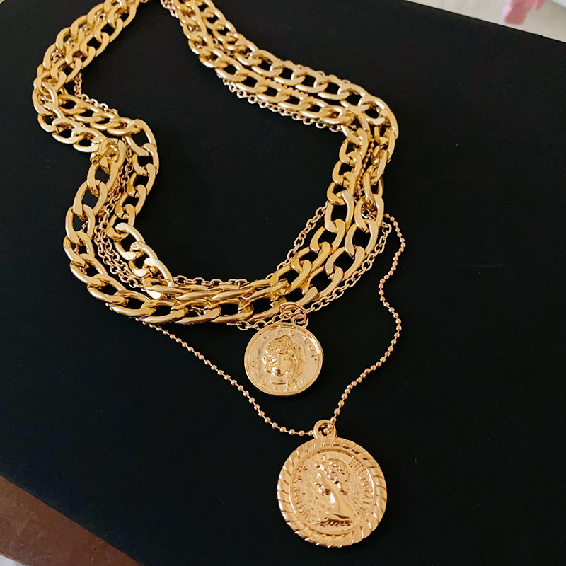 欧美跨境人像多层项链小众金属冷淡风锁骨链时尚轻奢高级感饰品女