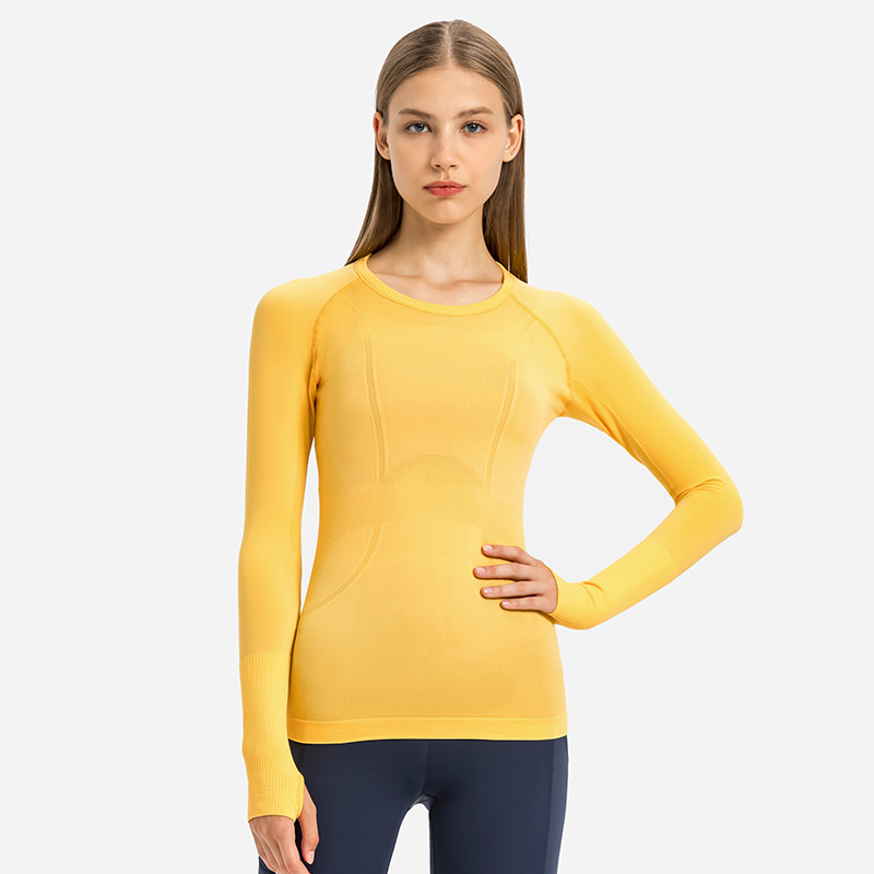 跨境新款速干上衣长袖女运动跑步健身透气无缝一体瑜伽服D19083