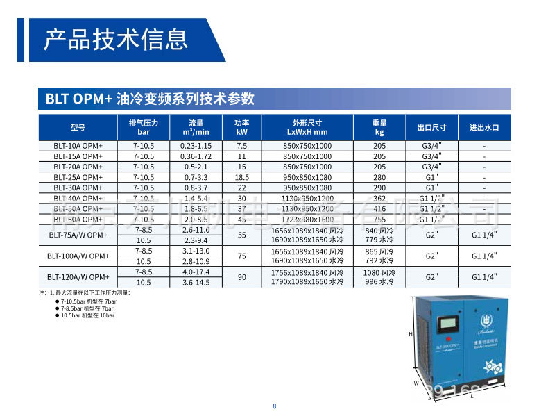 博莱特空压机油冷变频螺杆空气压缩机BLT OPM+7.5-90kW进口压缩机