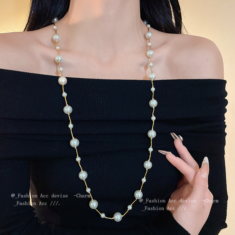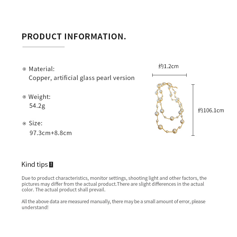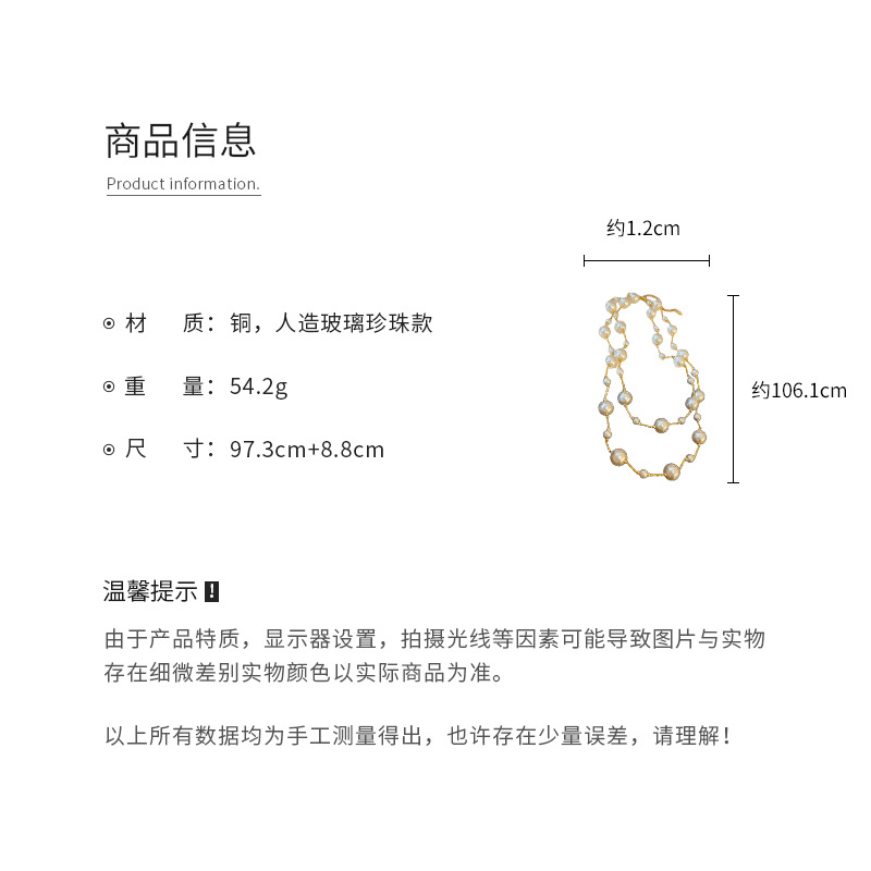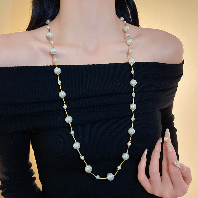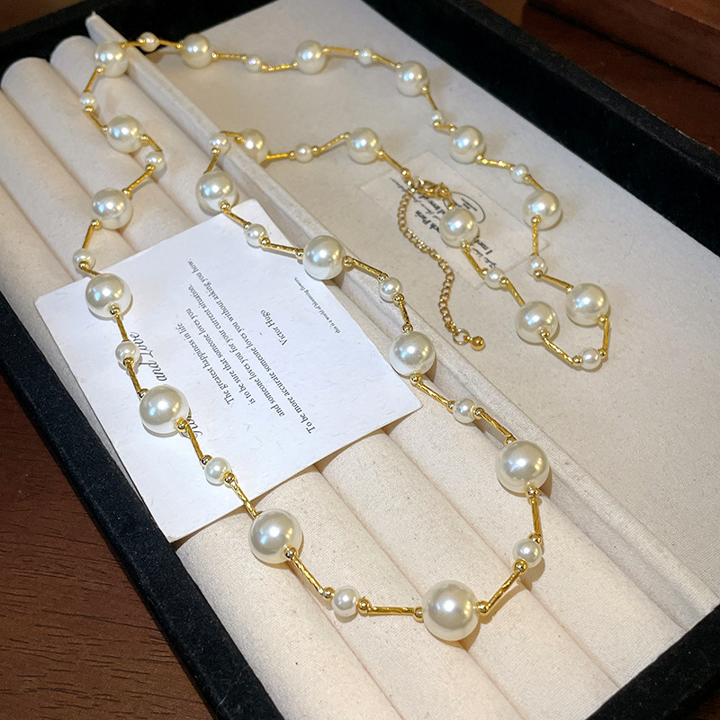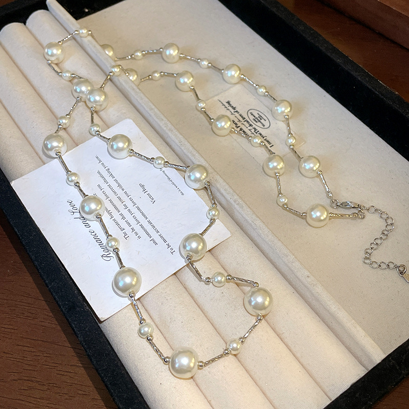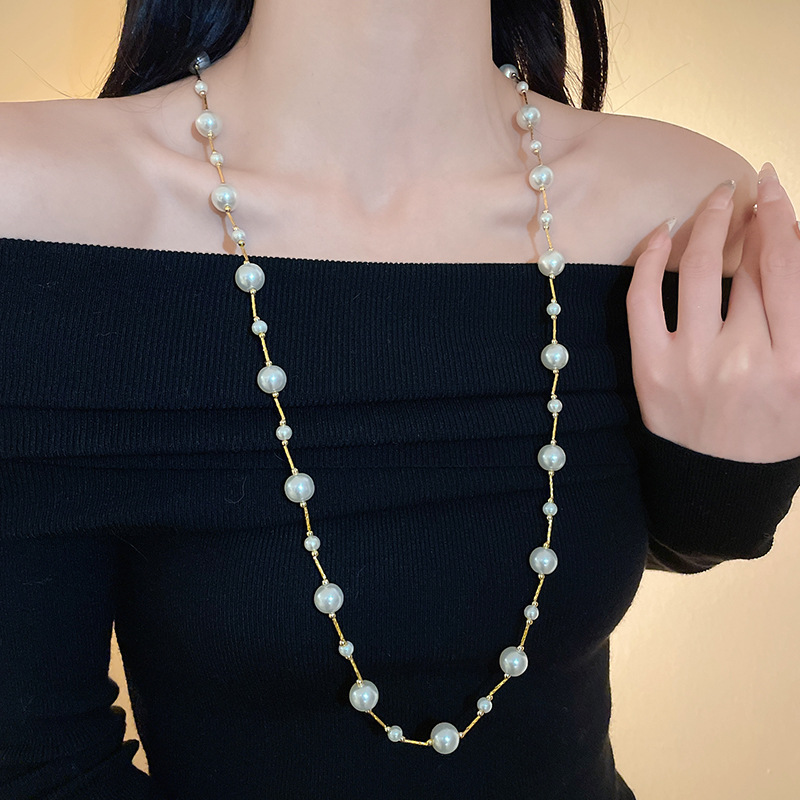 褶皱圆形人造玻璃珍珠项链女秋冬时尚百搭毛衣链复古轻奢项饰批发