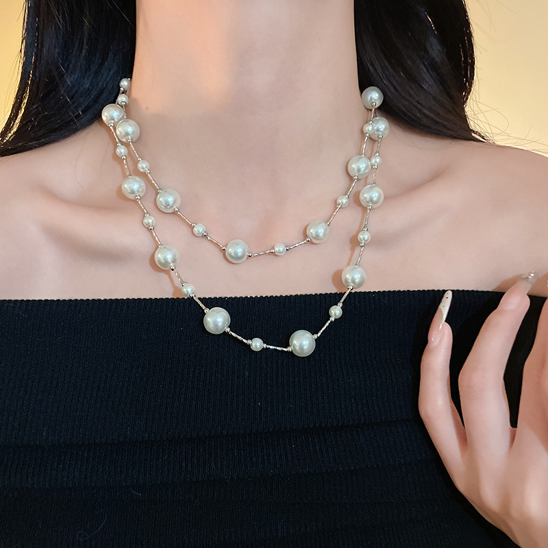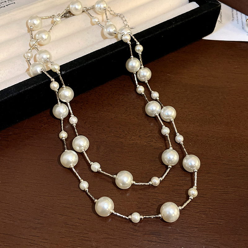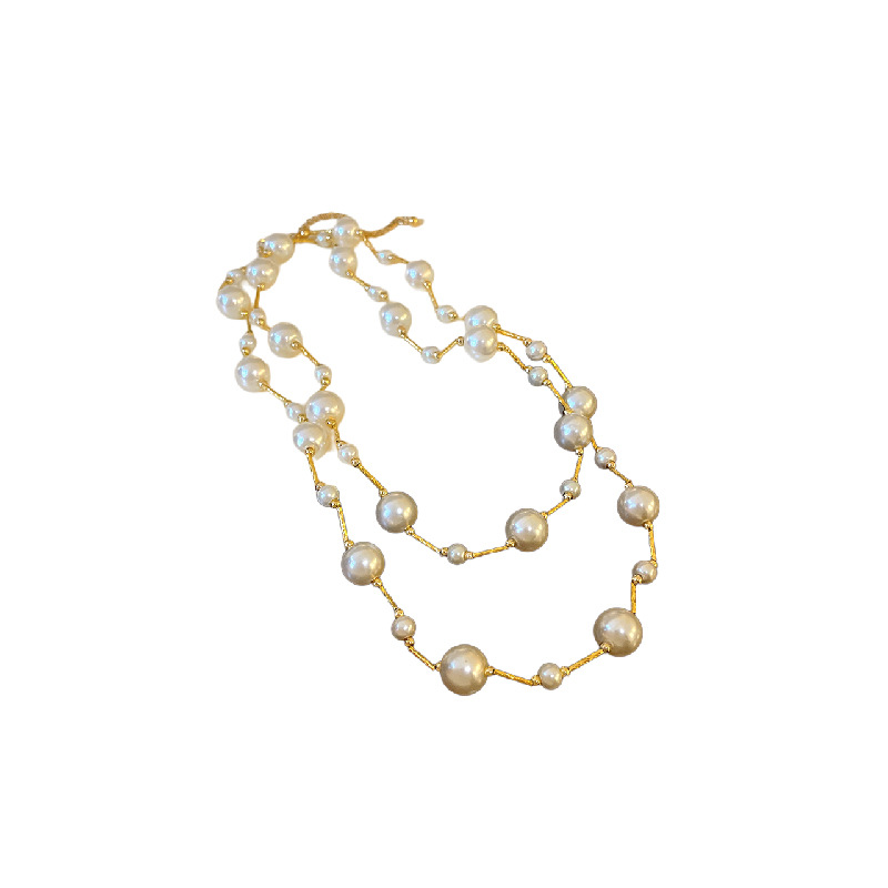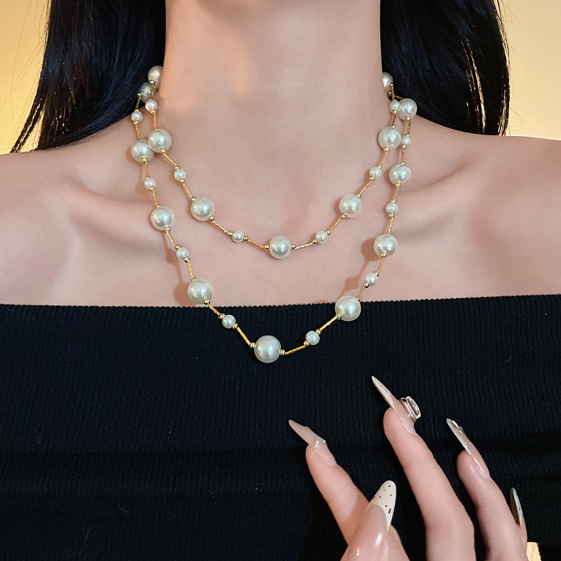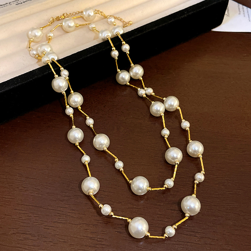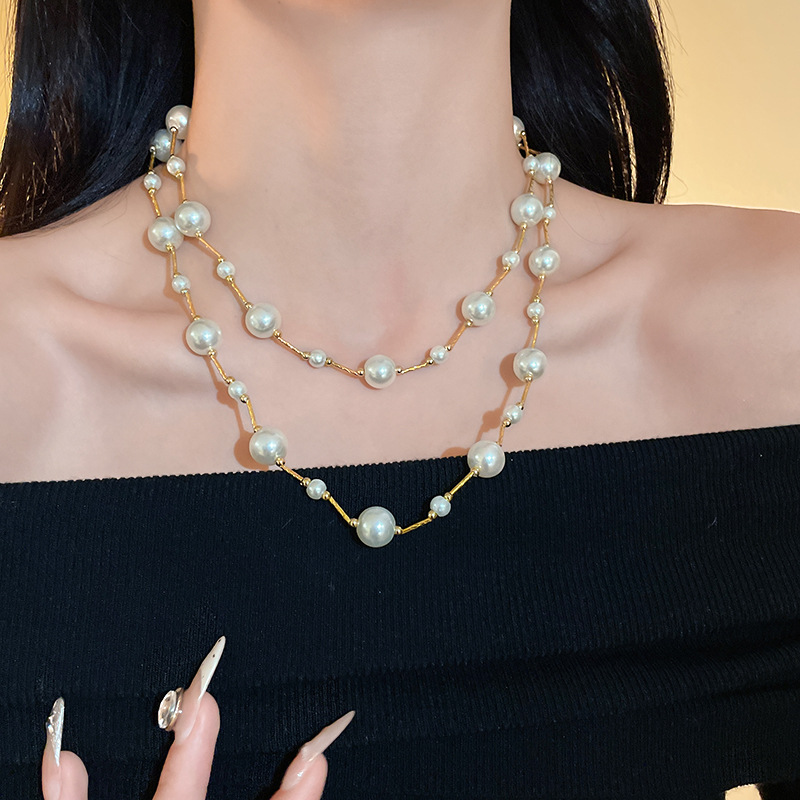 褶皱圆形人造玻璃珍珠项链女秋冬时尚百搭毛衣链复古轻奢项饰批发