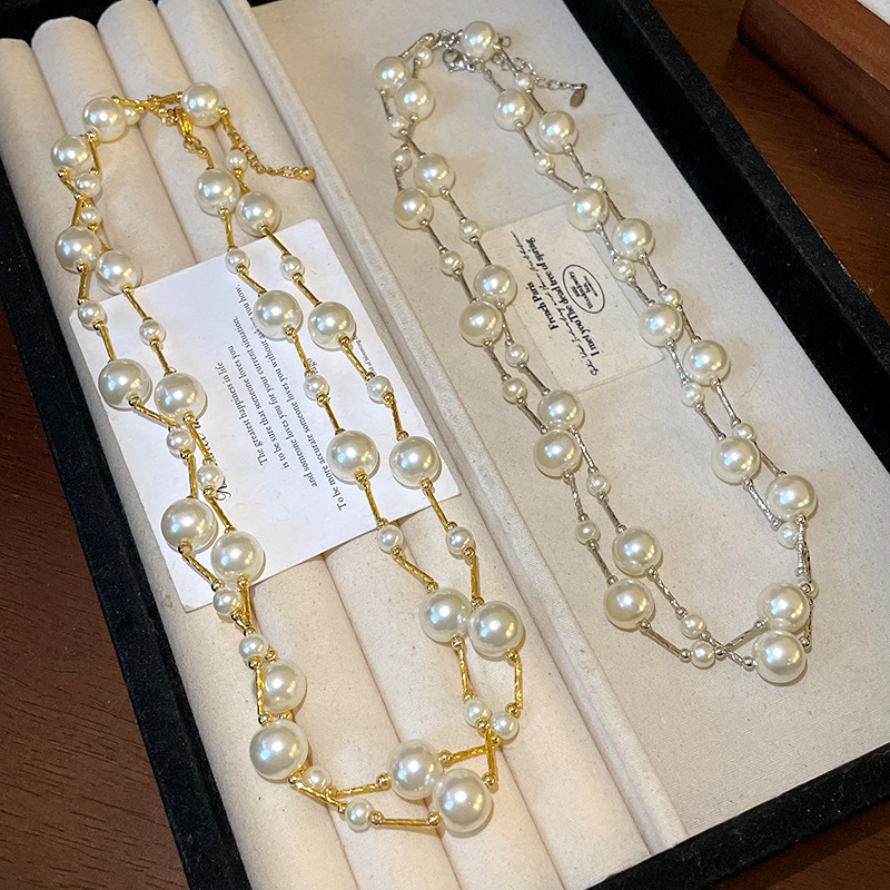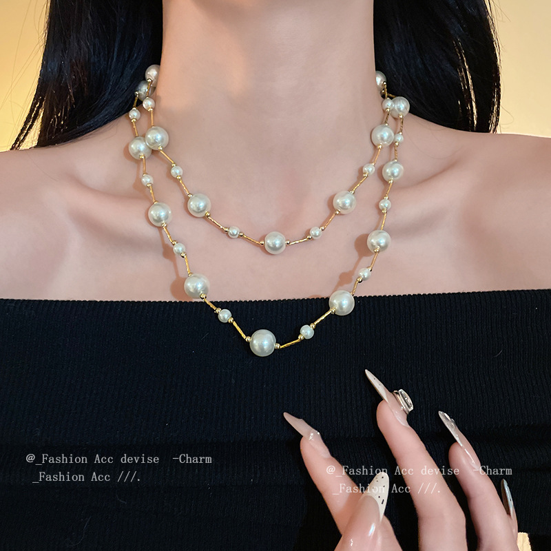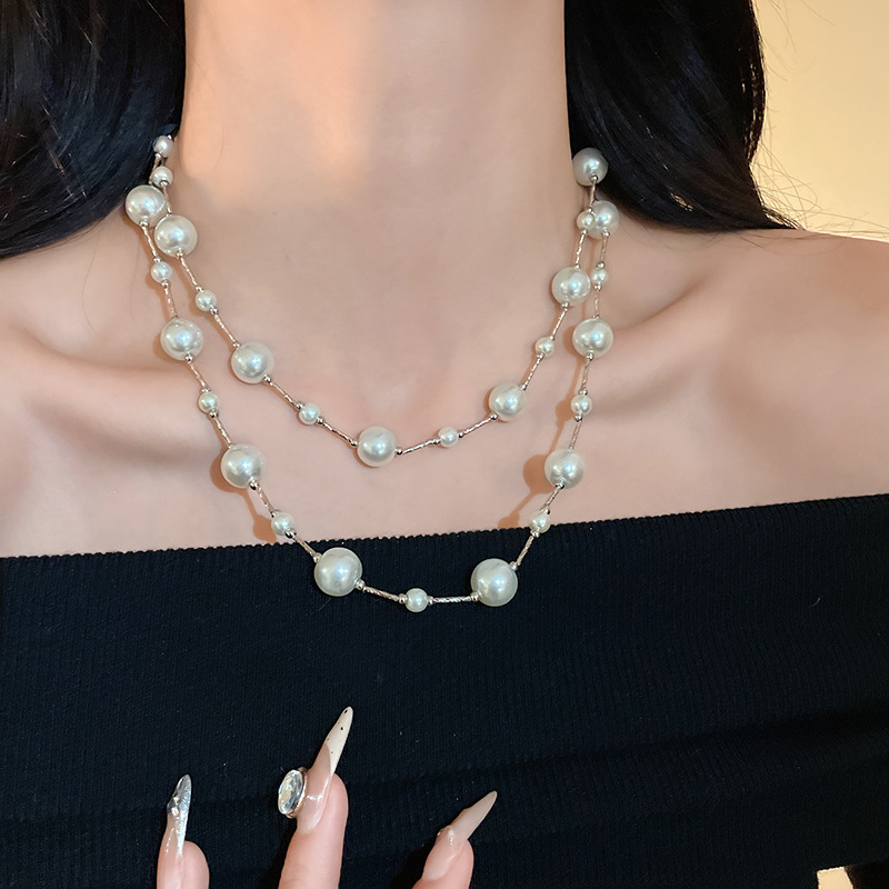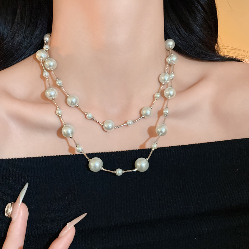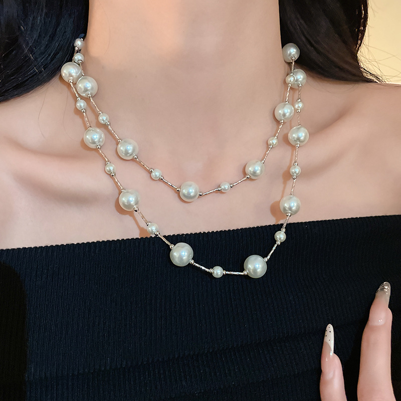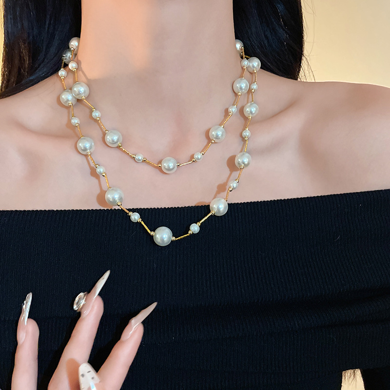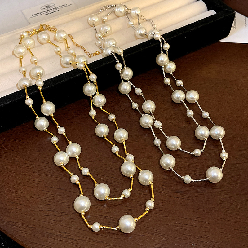 褶皱圆形人造玻璃珍珠项链女秋冬时尚百搭毛衣链复古轻奢项饰批发