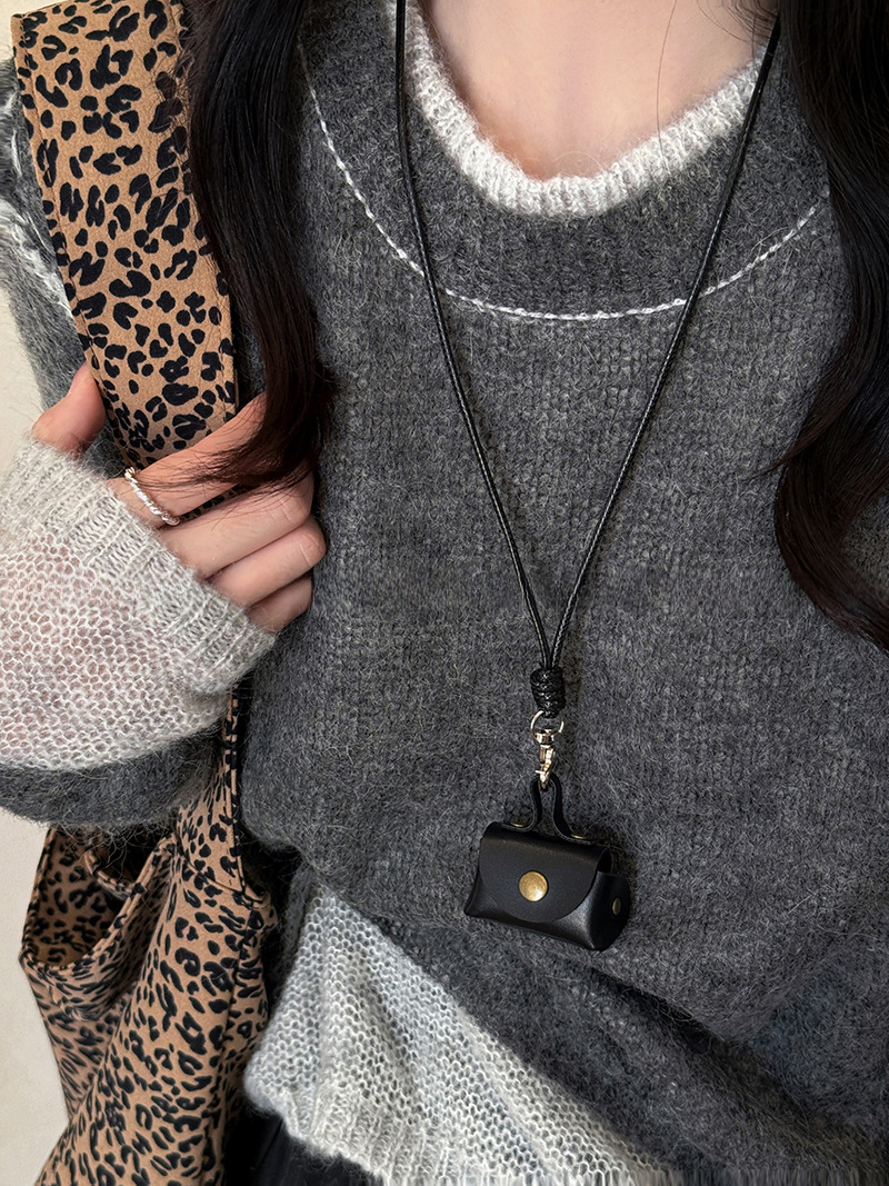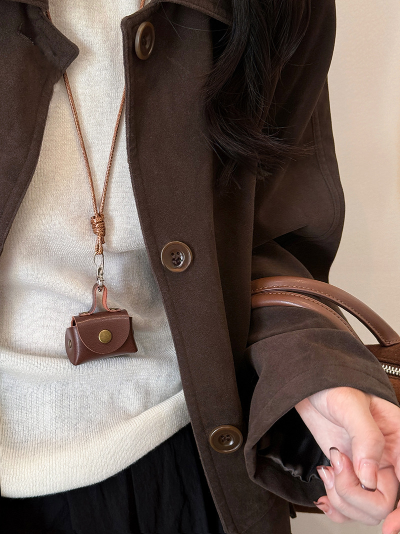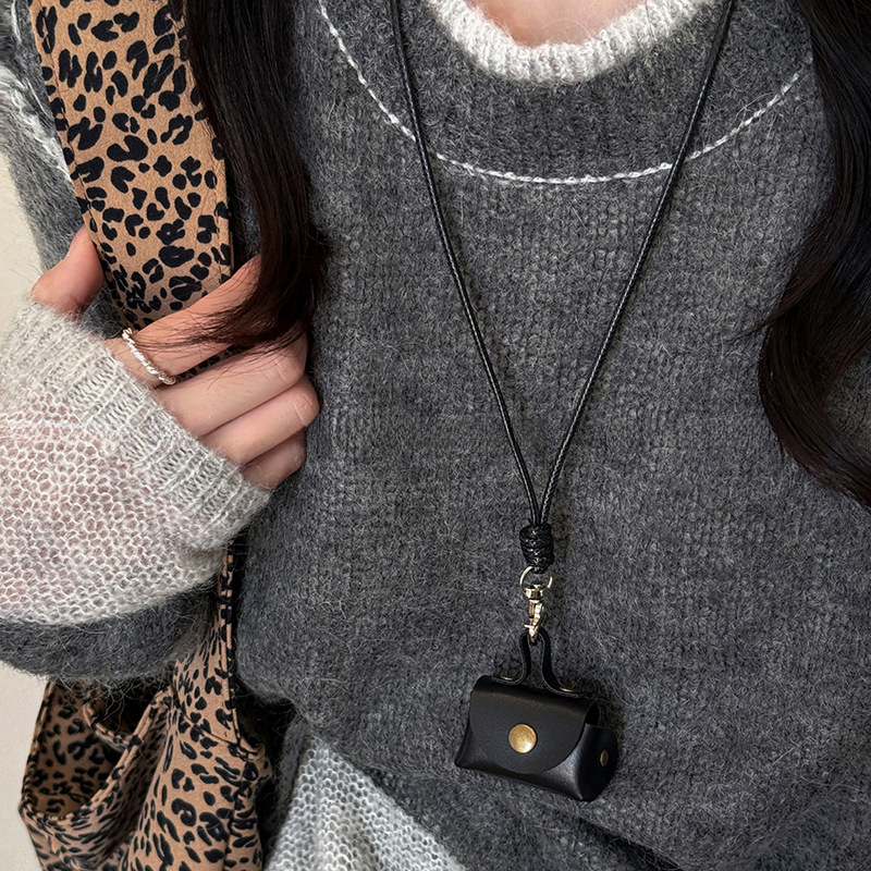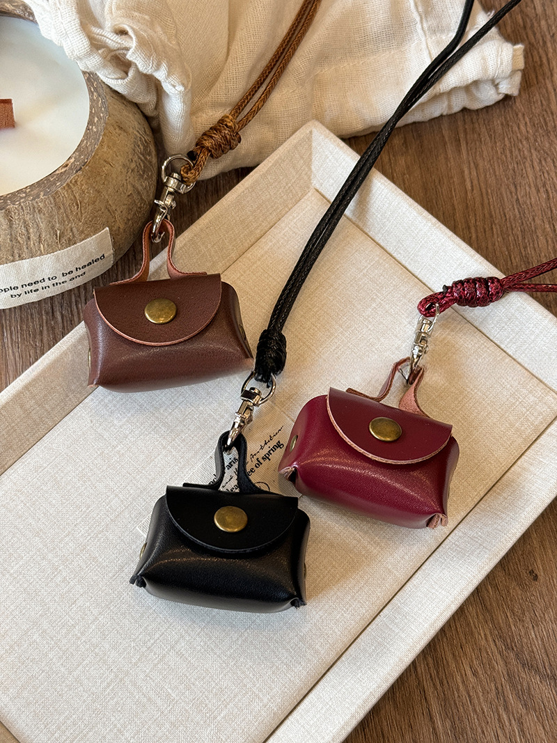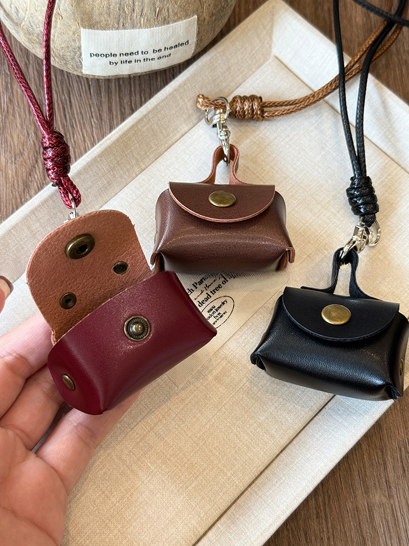 小巧可爱皮质零钱包项链女挂件耳机套皮绳毛衣链长款配饰收纳包包
