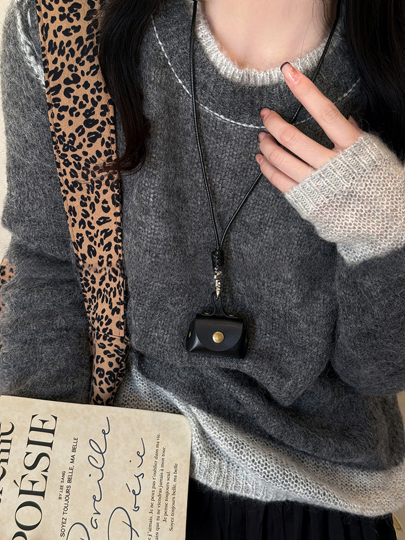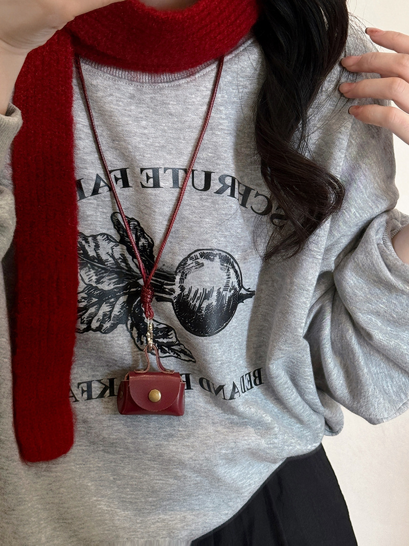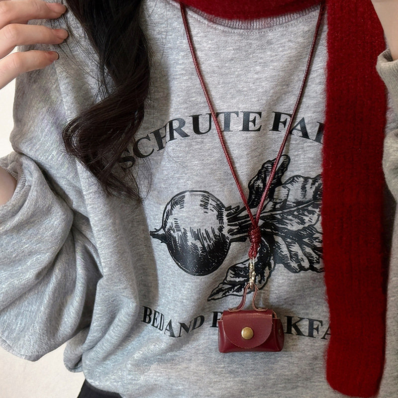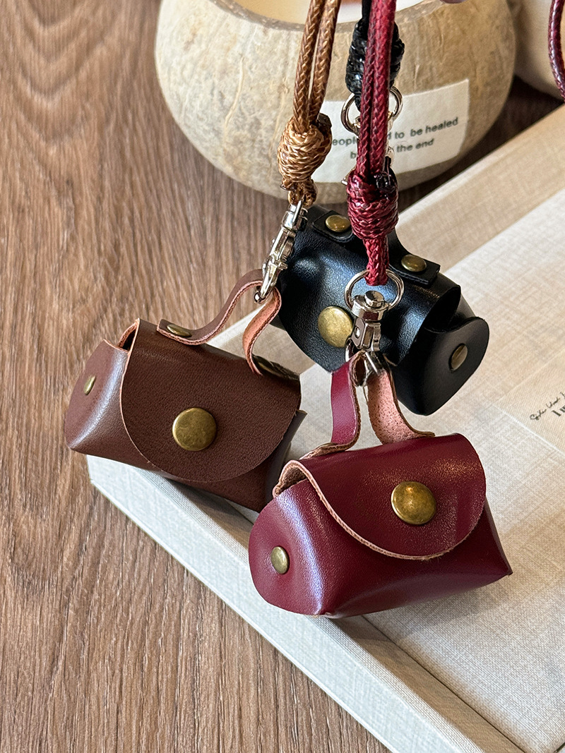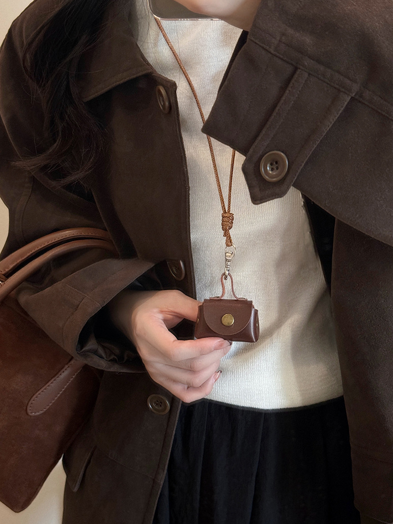 小巧可爱皮质零钱包项链女挂件耳机套皮绳毛衣链长款配饰收纳包包