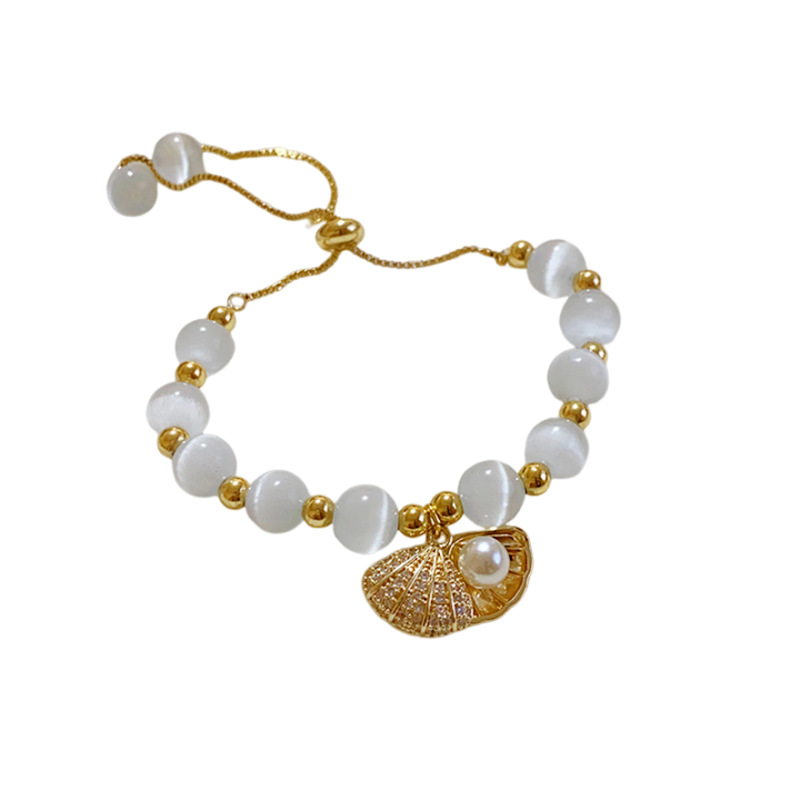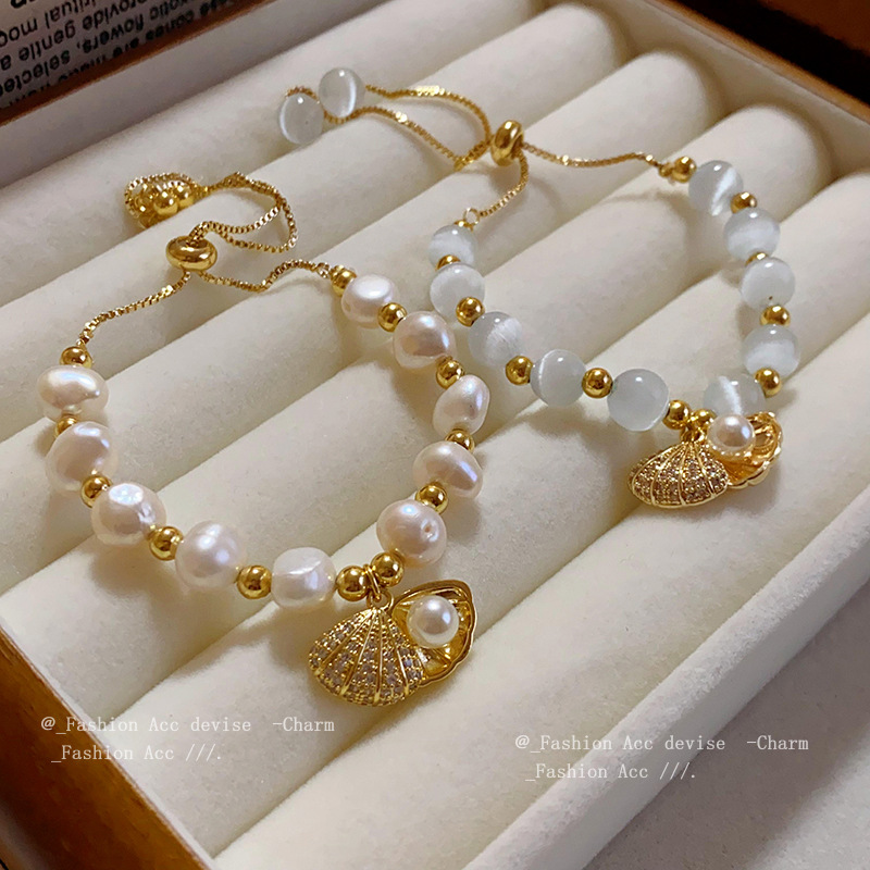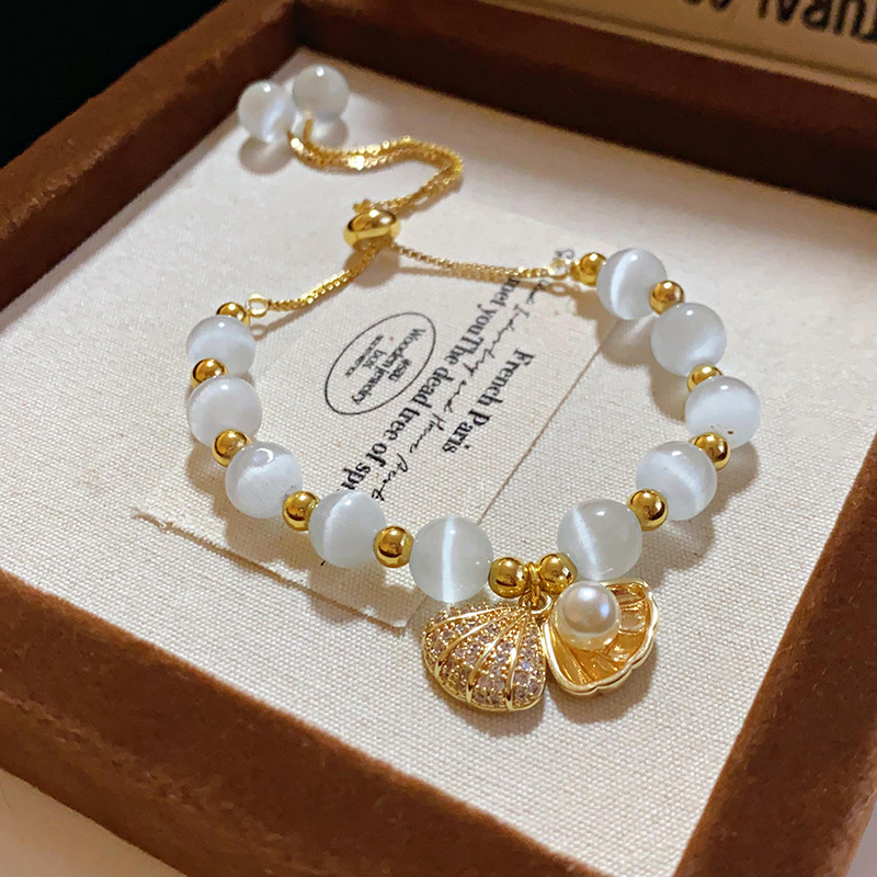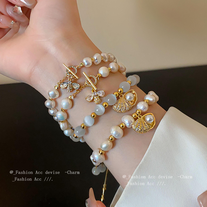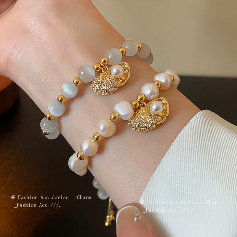 真金电镀锆石猫眼石珍珠手链小众复古百搭手环时尚高级感手饰批发