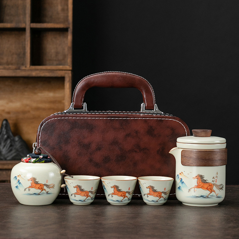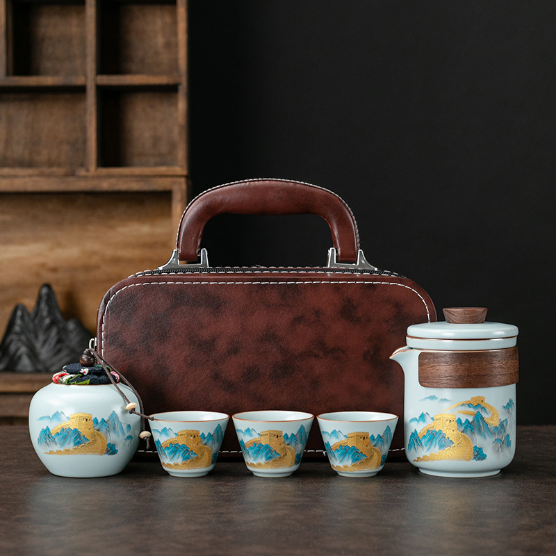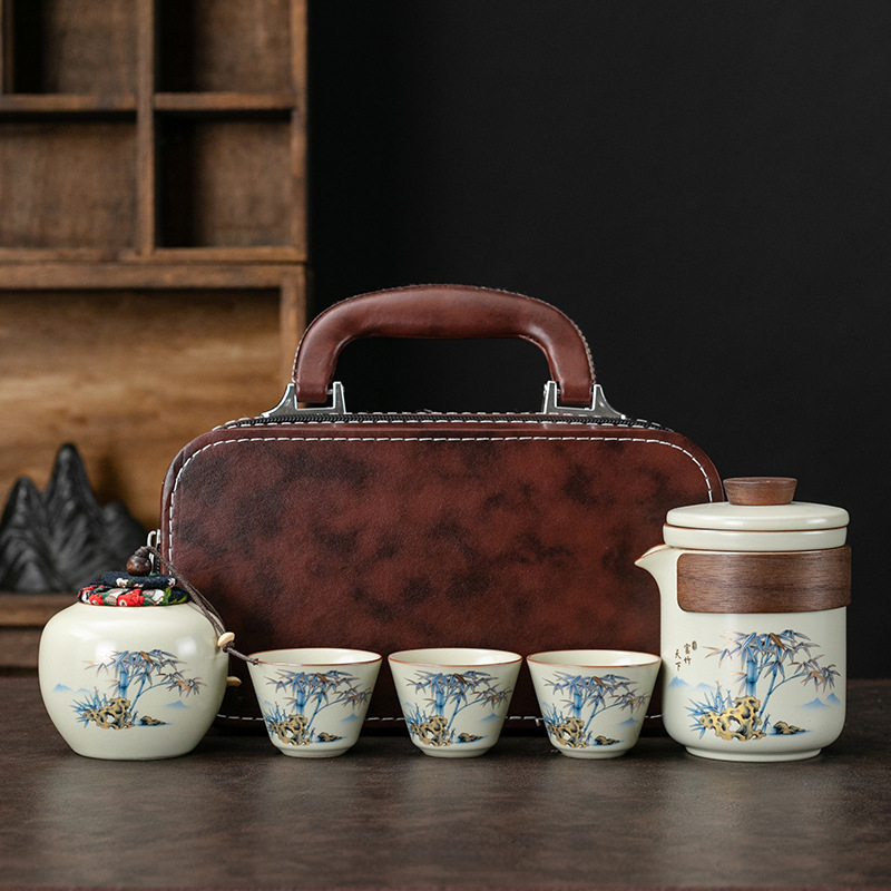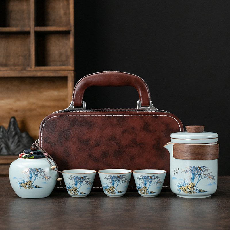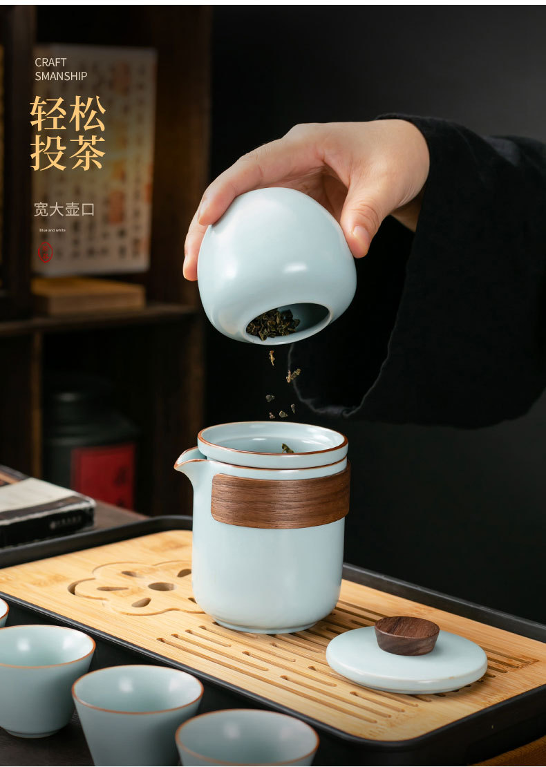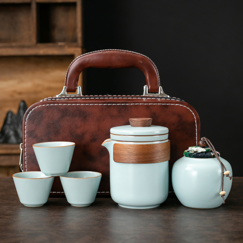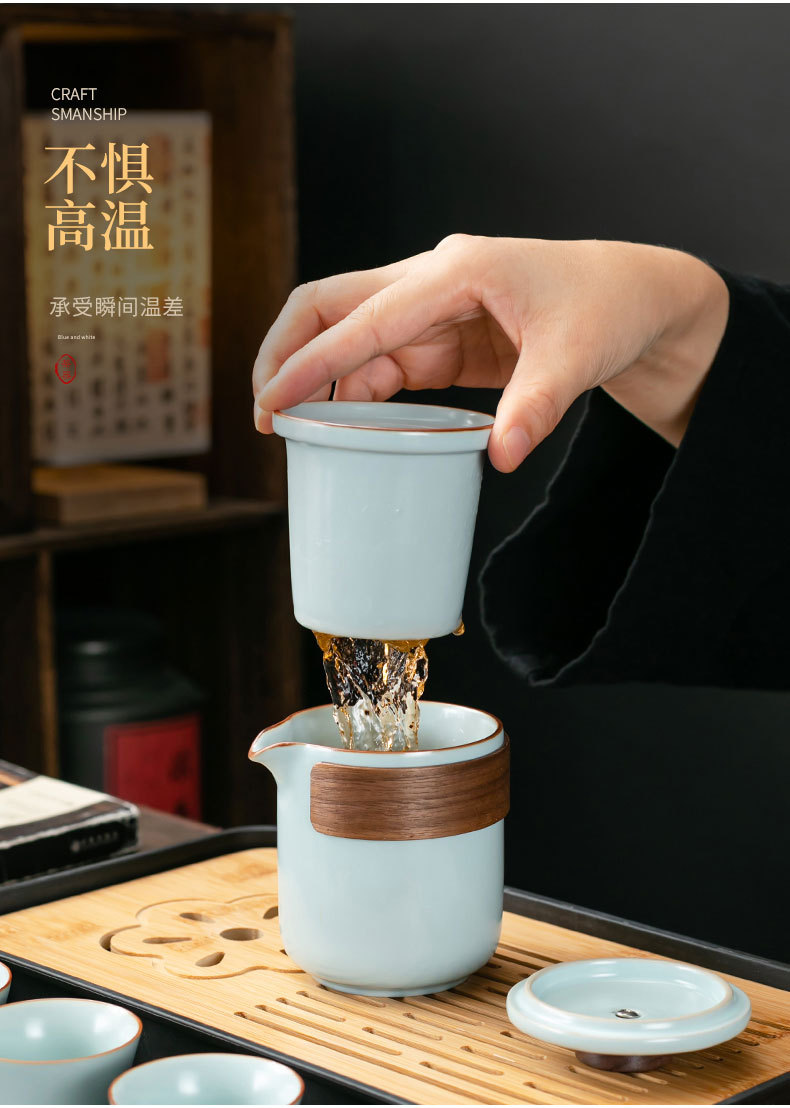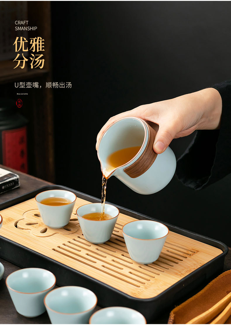户外便携旅行茶具套装汝窑茶具开片功夫茶具办公家用商务活动礼品
