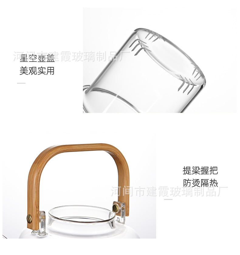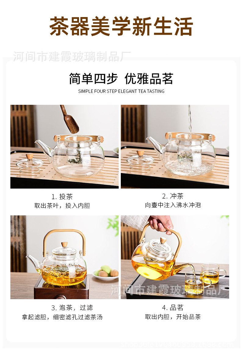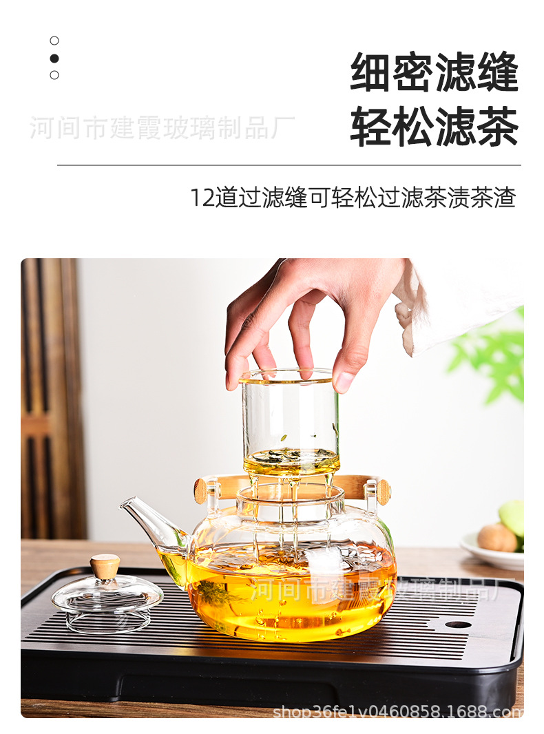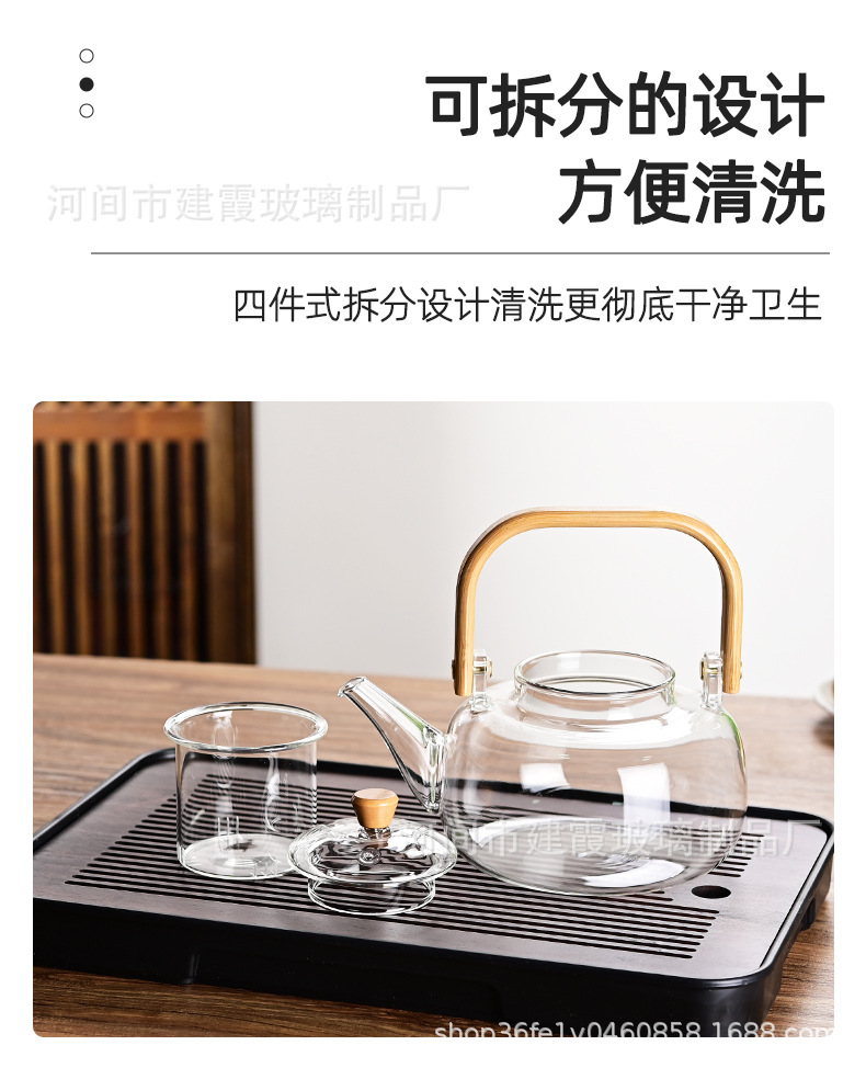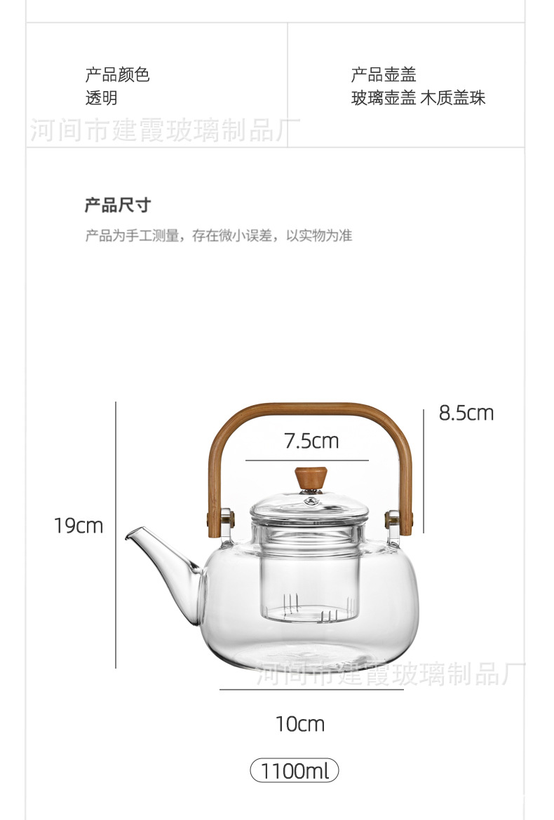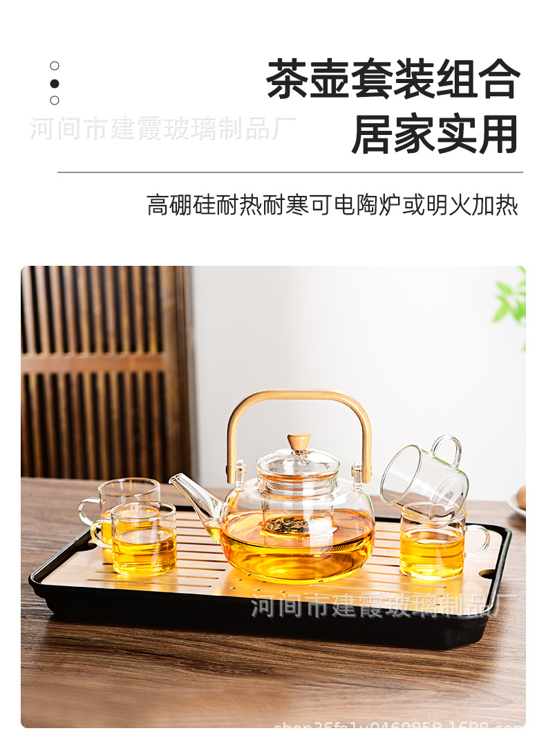 新中式围炉煮茶竹木提梁壶高硼硅玻璃可明火茶水分离玻璃提梁茶壶