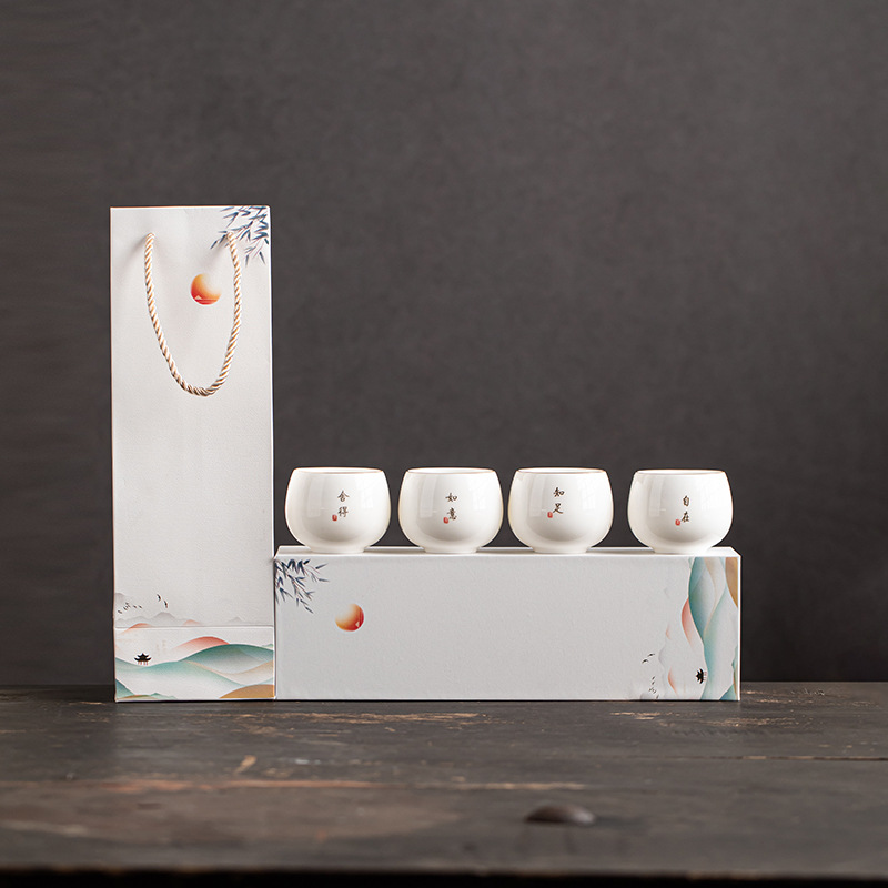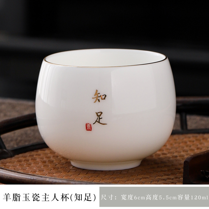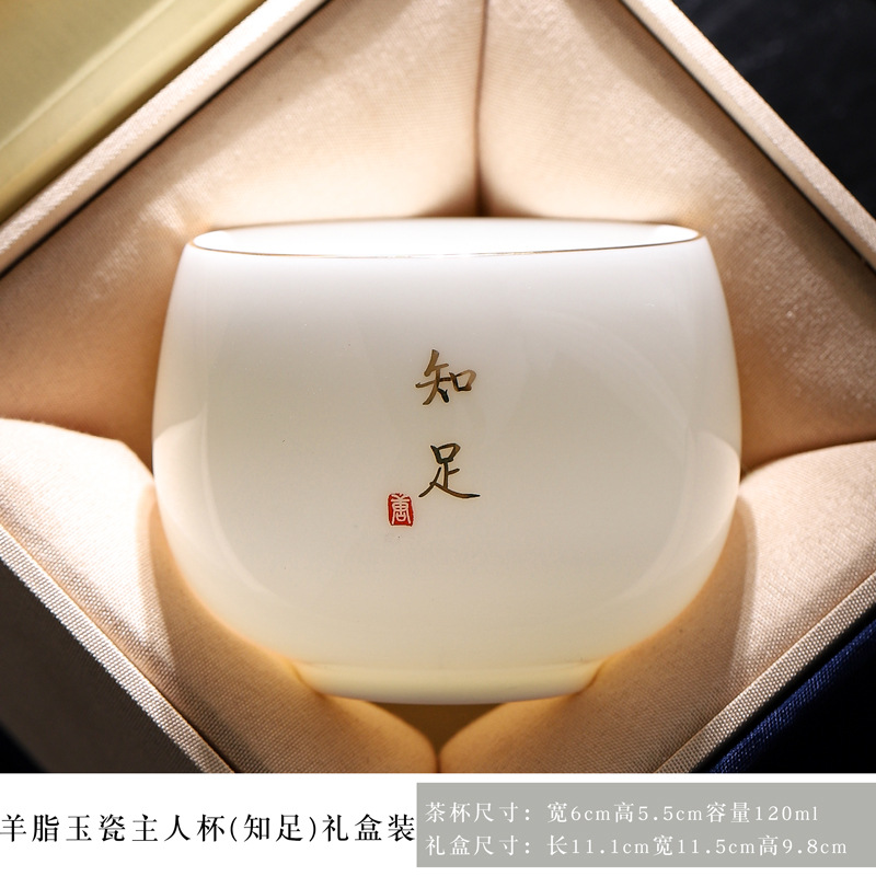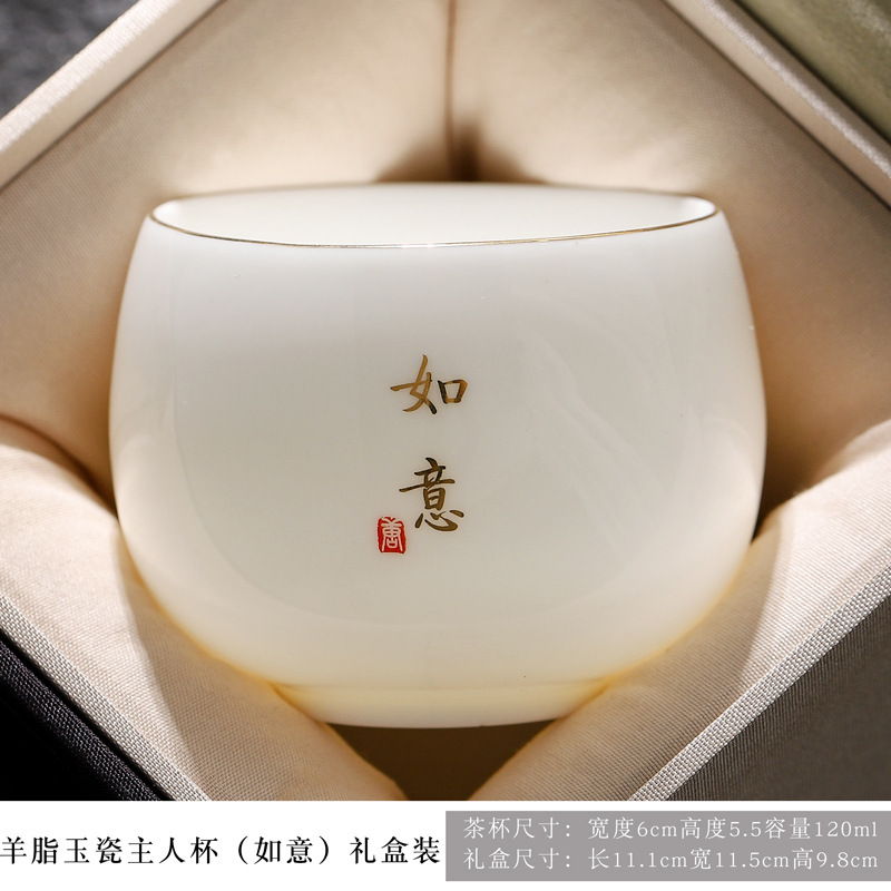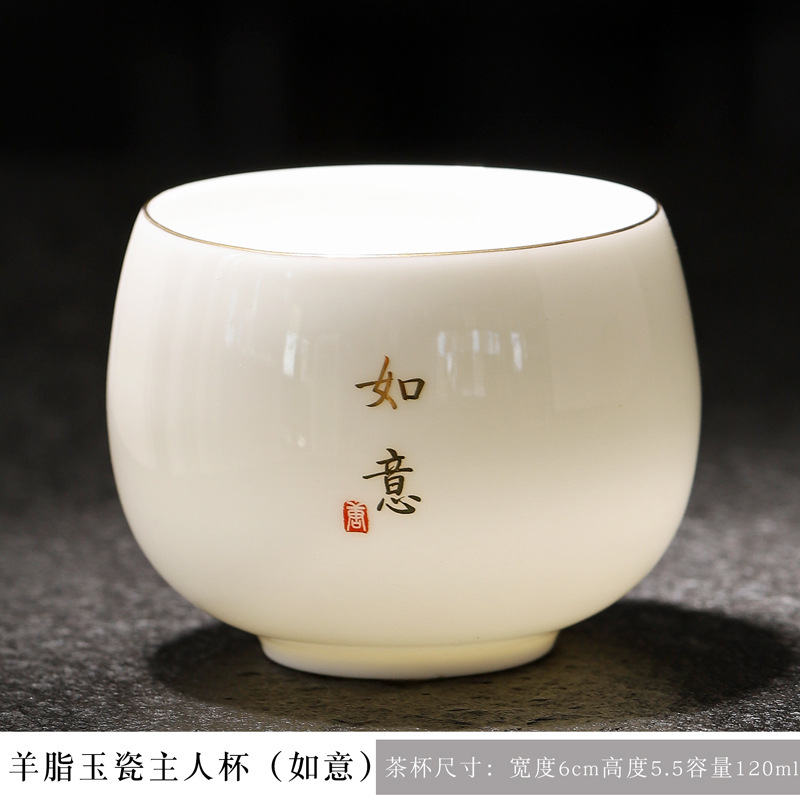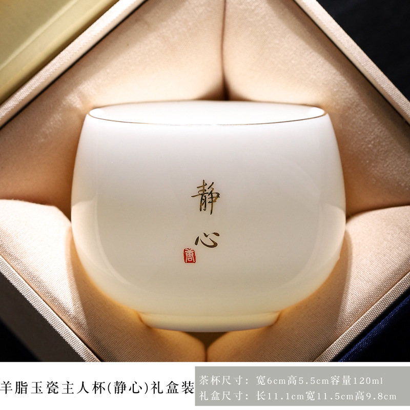 陶瓷主人杯单杯羊脂玉白瓷茶具品茗杯家用茶杯百家姓刻字logo礼品