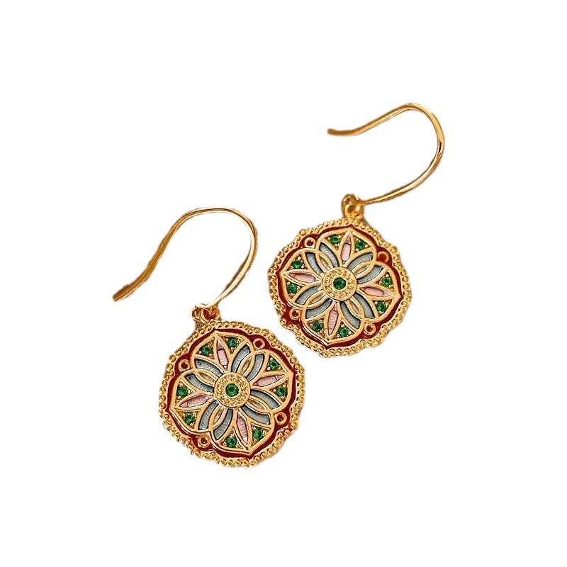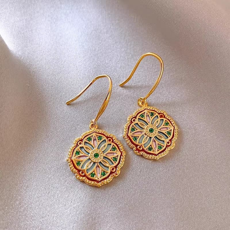 新中式复古百搭气质高级感耳钉网红耳饰品莫奈花园油画耳环女批发