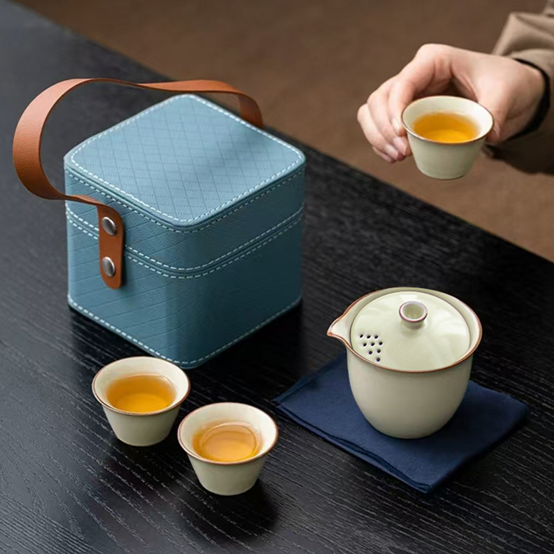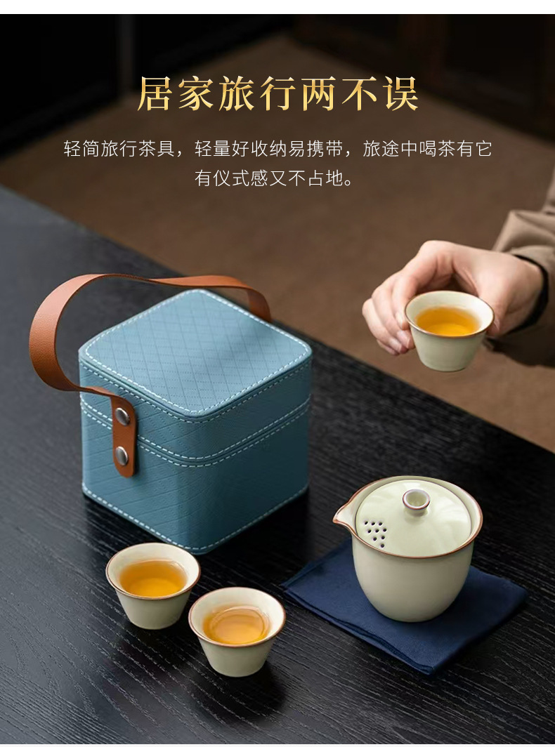 汝窑快客杯旅行茶具套装便携一壶三杯公司开业活动商务礼品印logo
