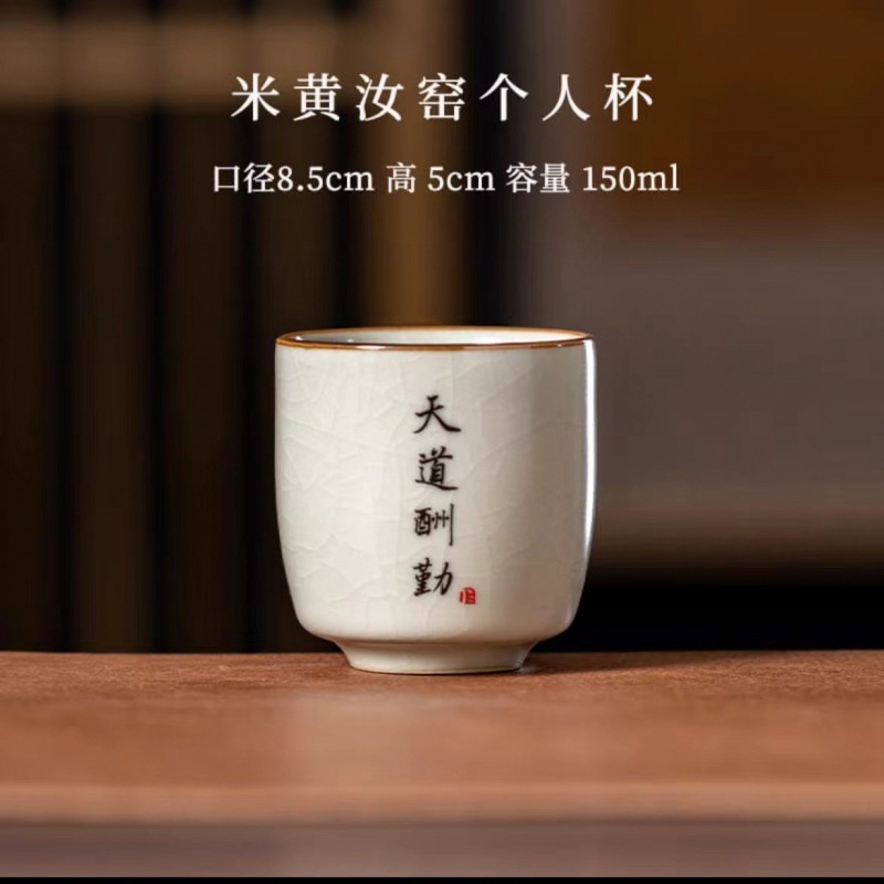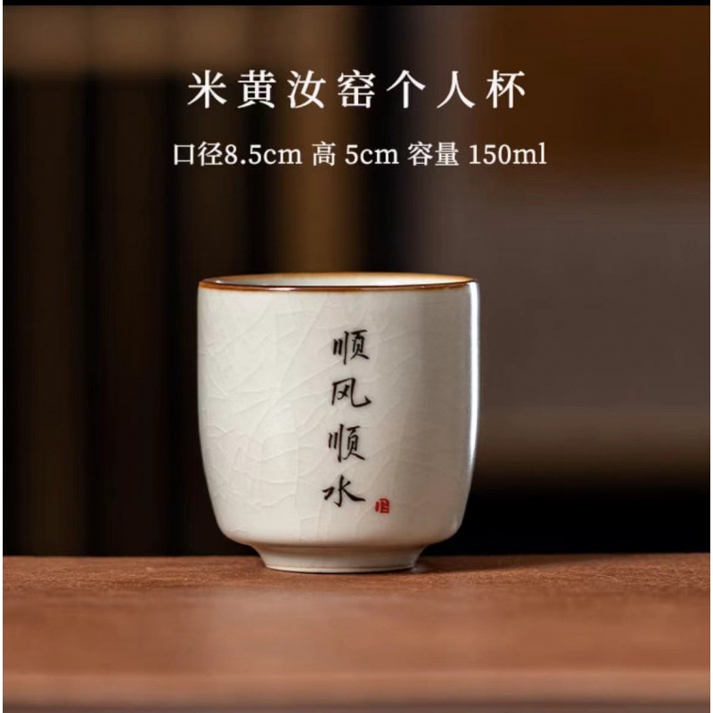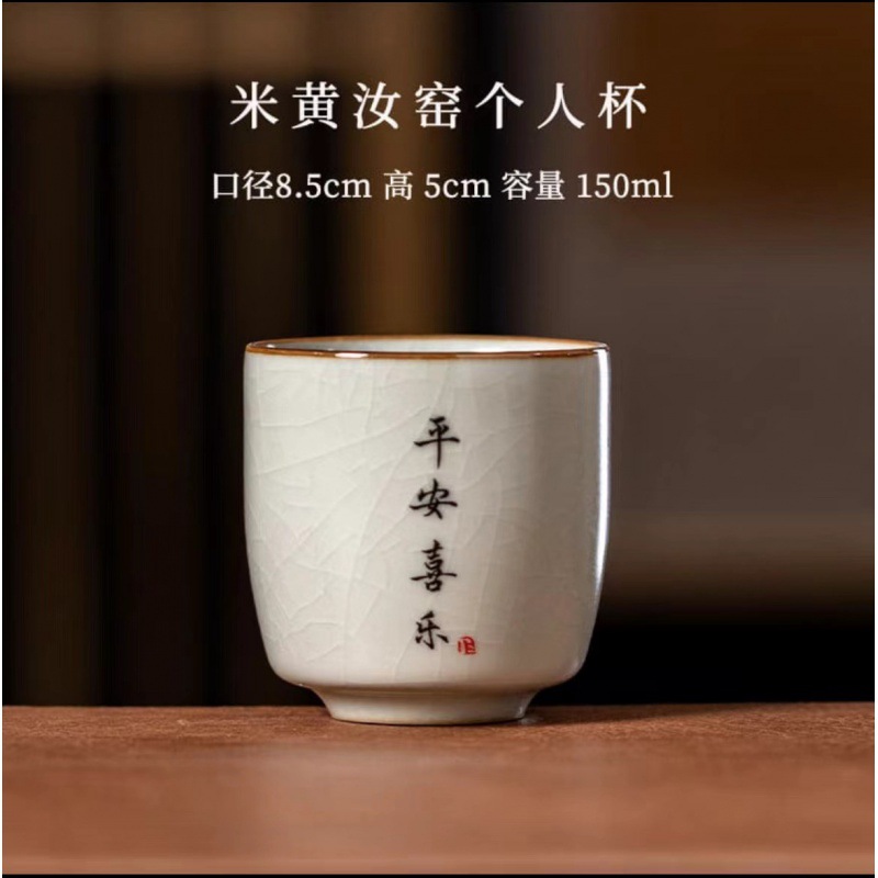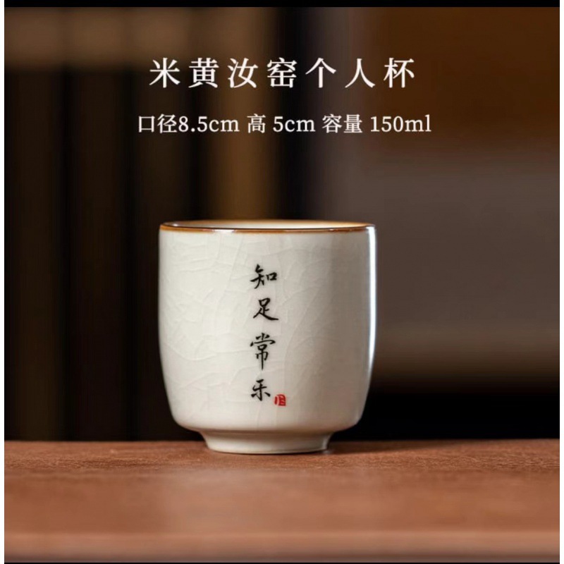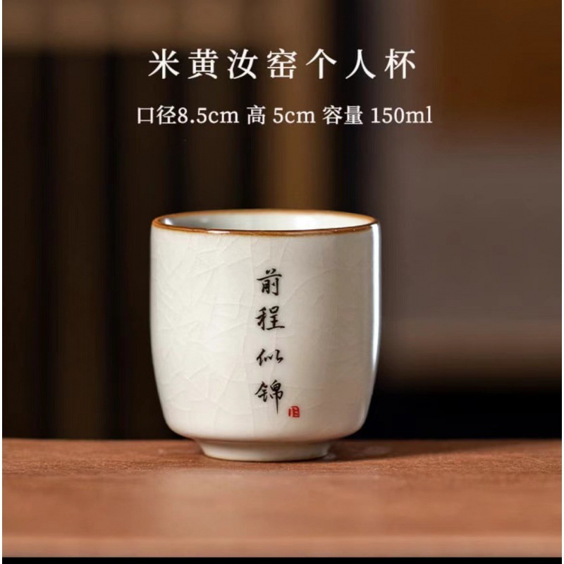 景德镇手工米黄汝窑茶杯陶瓷主人杯品茗杯私人订logo单杯刻字杯子