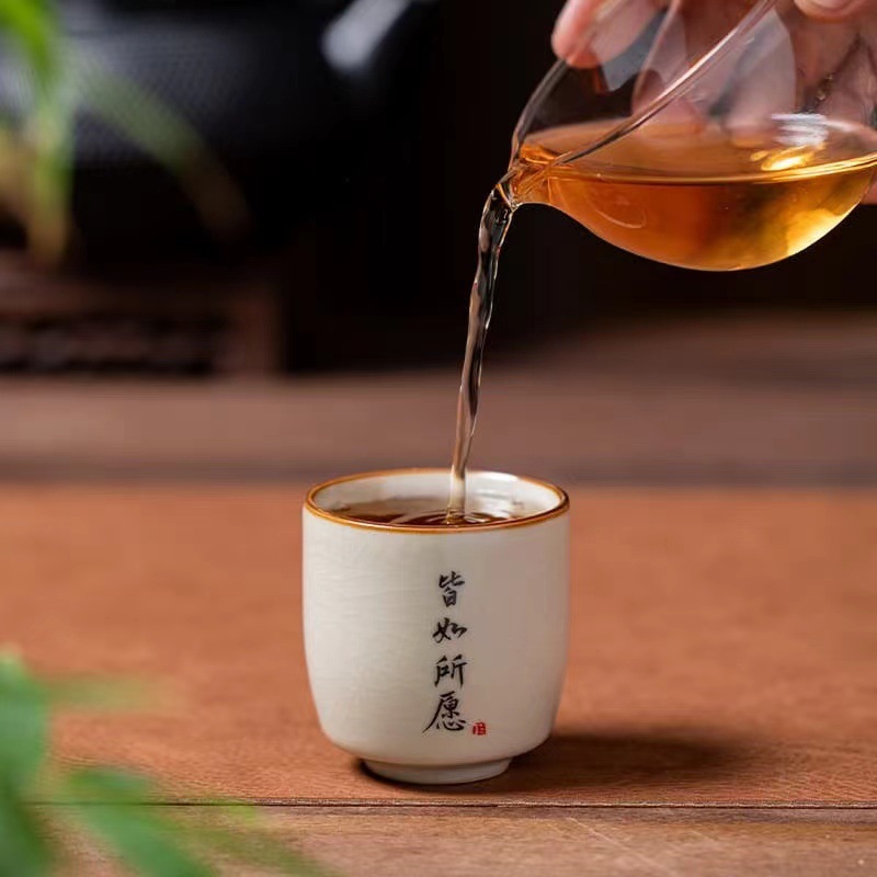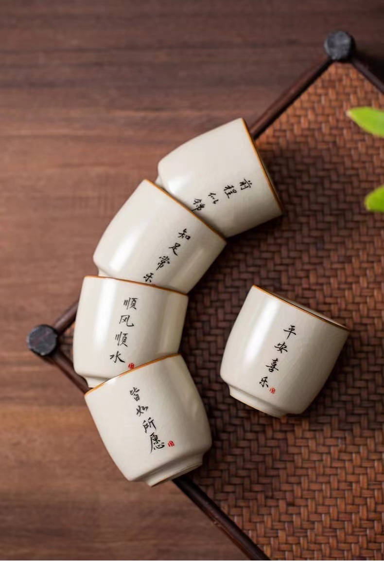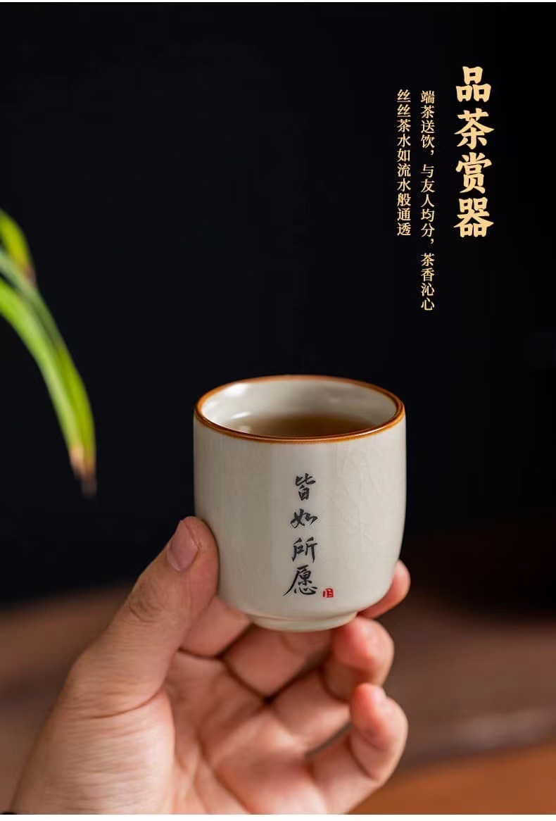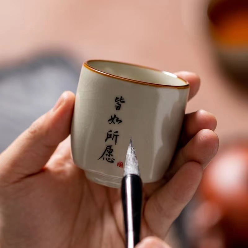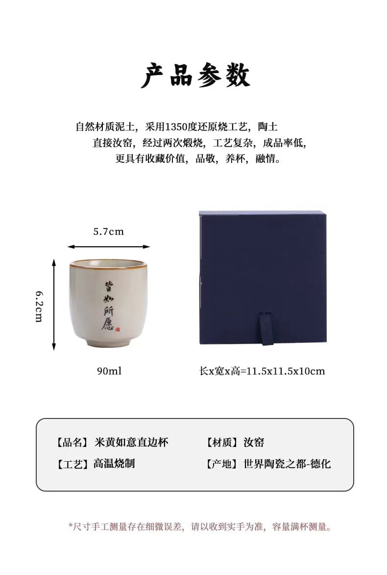 景德镇手工米黄汝窑茶杯陶瓷主人杯品茗杯私人订logo单杯刻字杯子