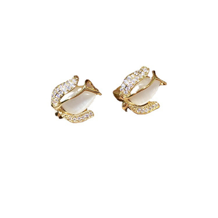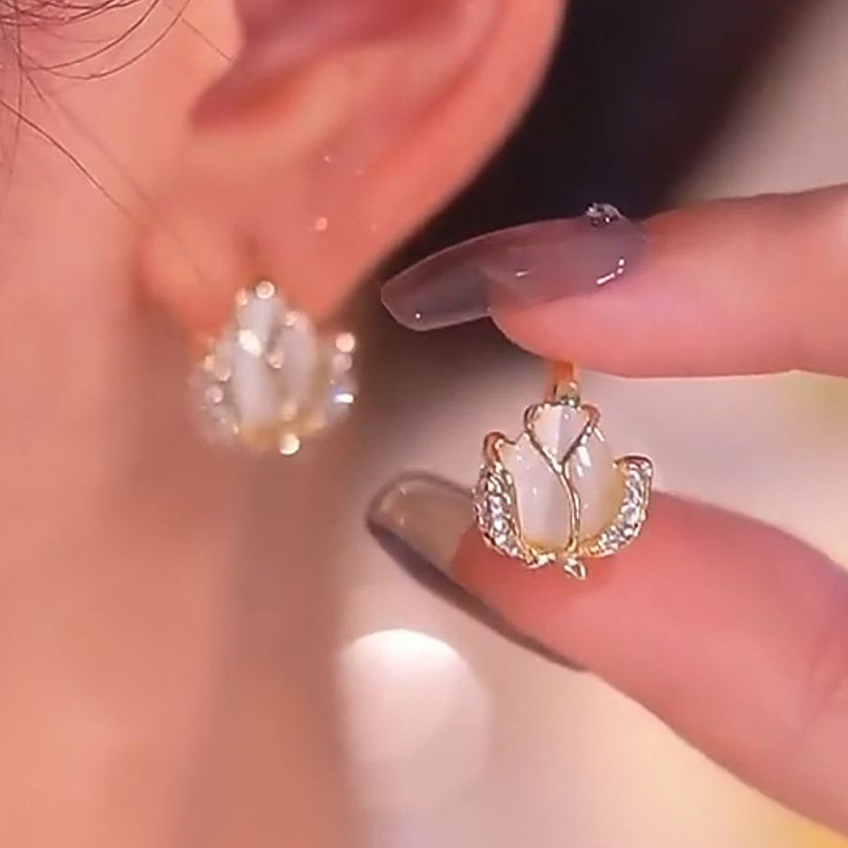 网红百搭气质高级感花朵耳钉精致微镶锆石猫眼石郁金香耳扣耳环女