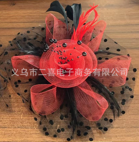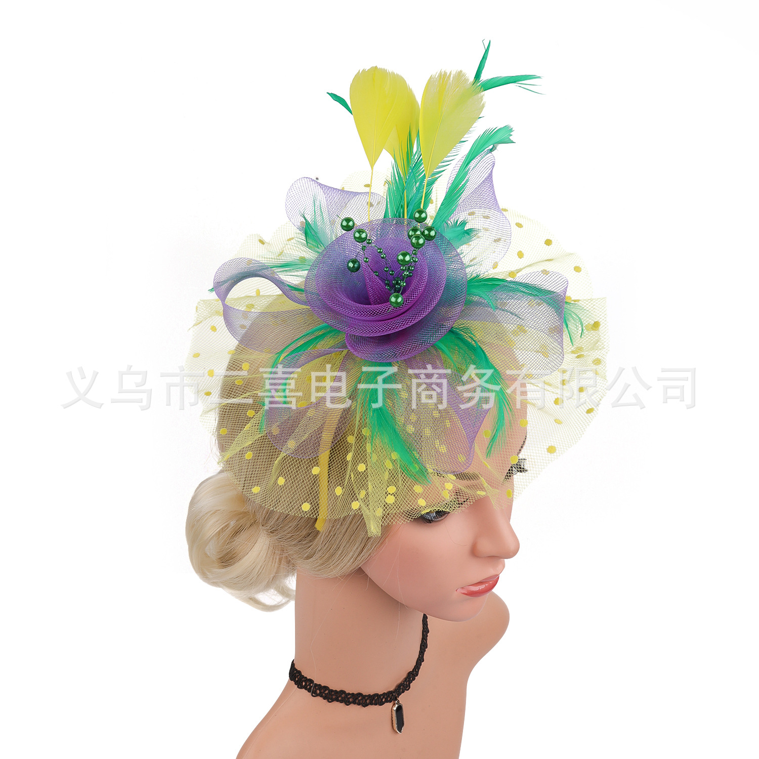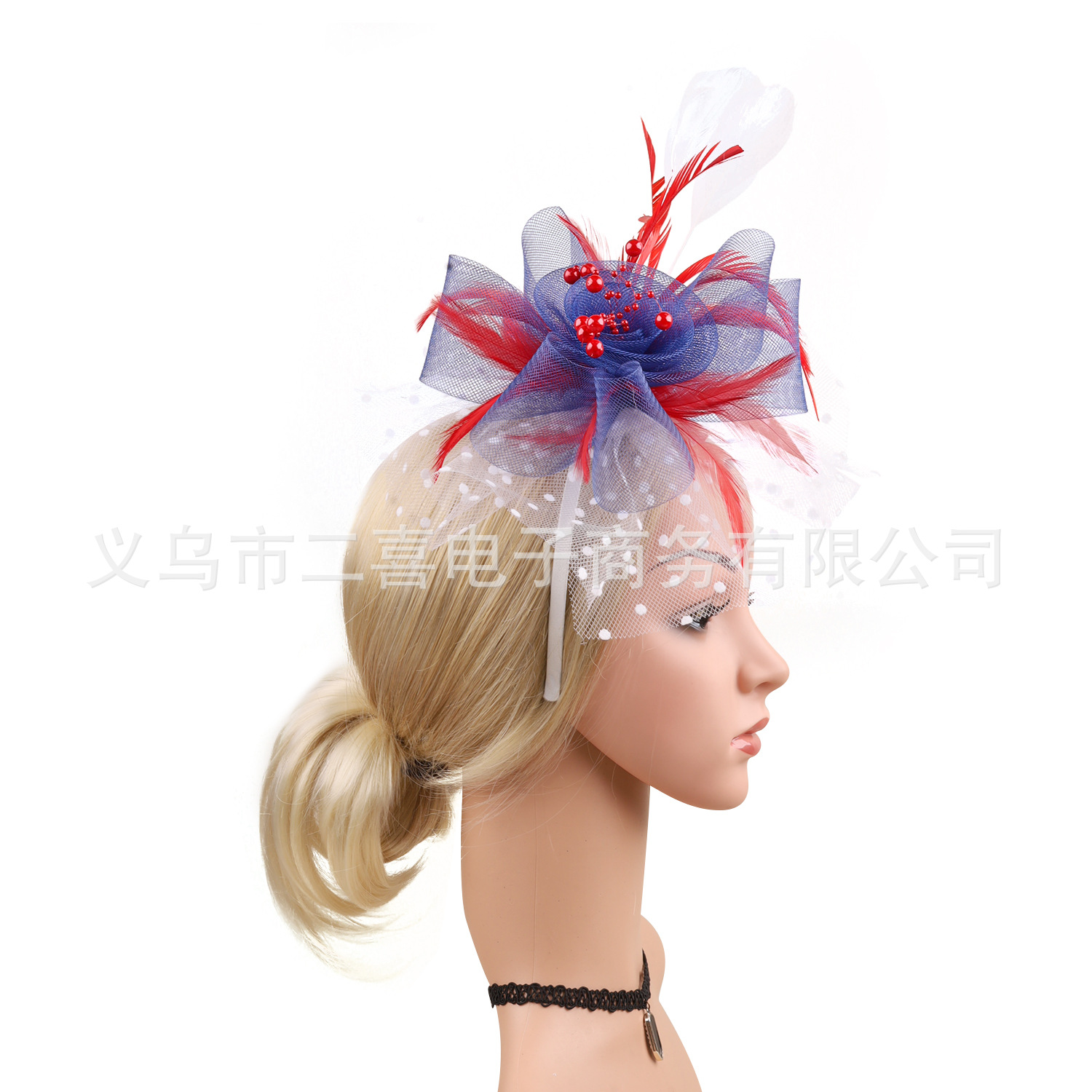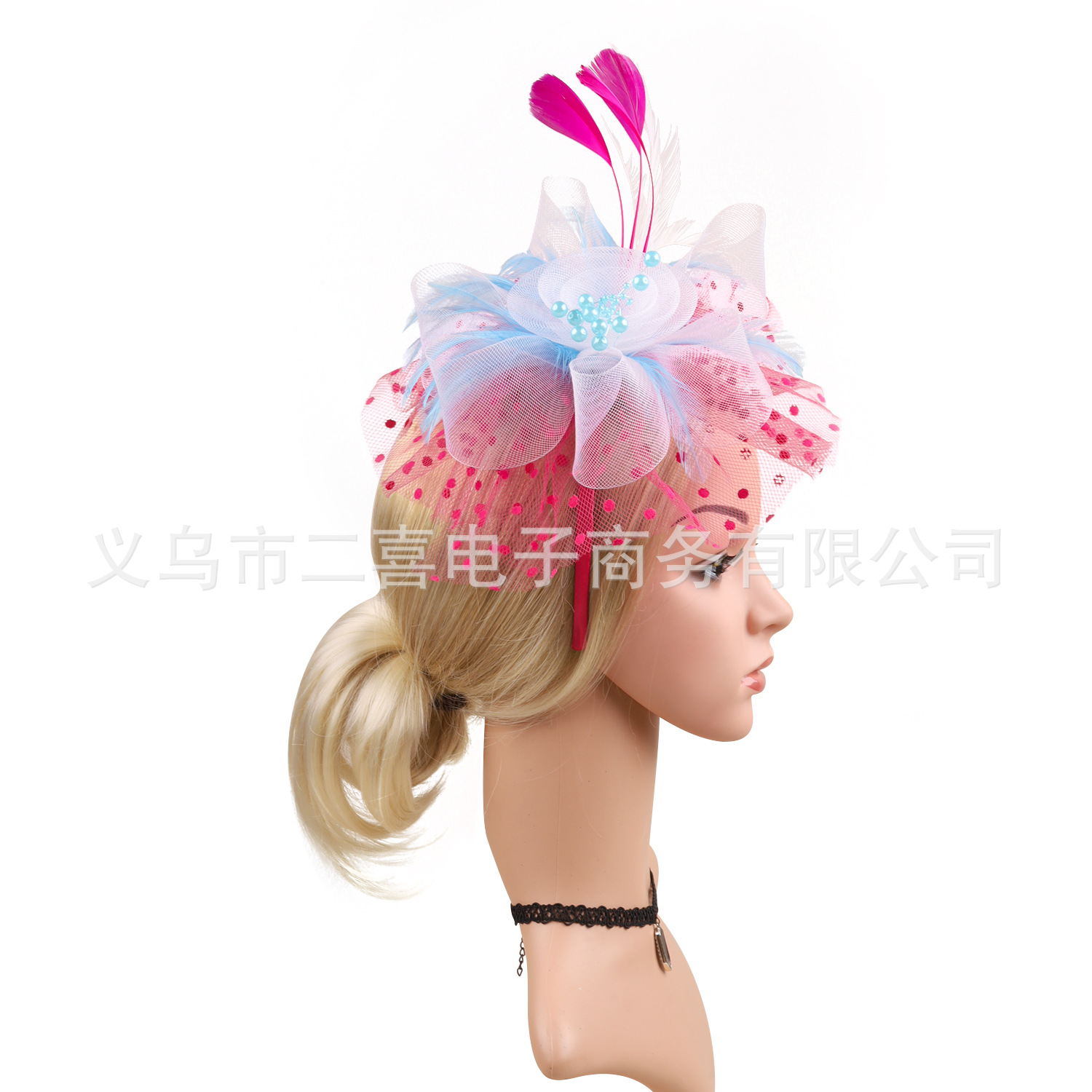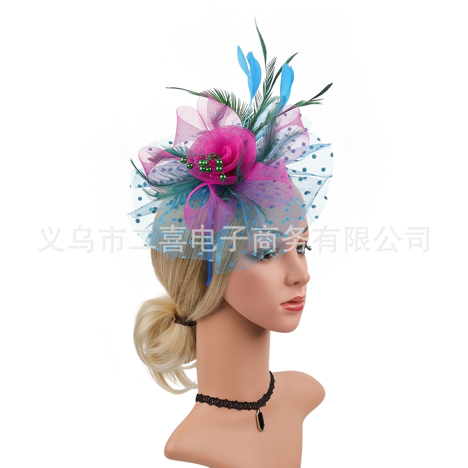 欧美爆款亚马逊羽毛头饰新娘发饰网纱小礼帽赛马会发饰发夹发箍
