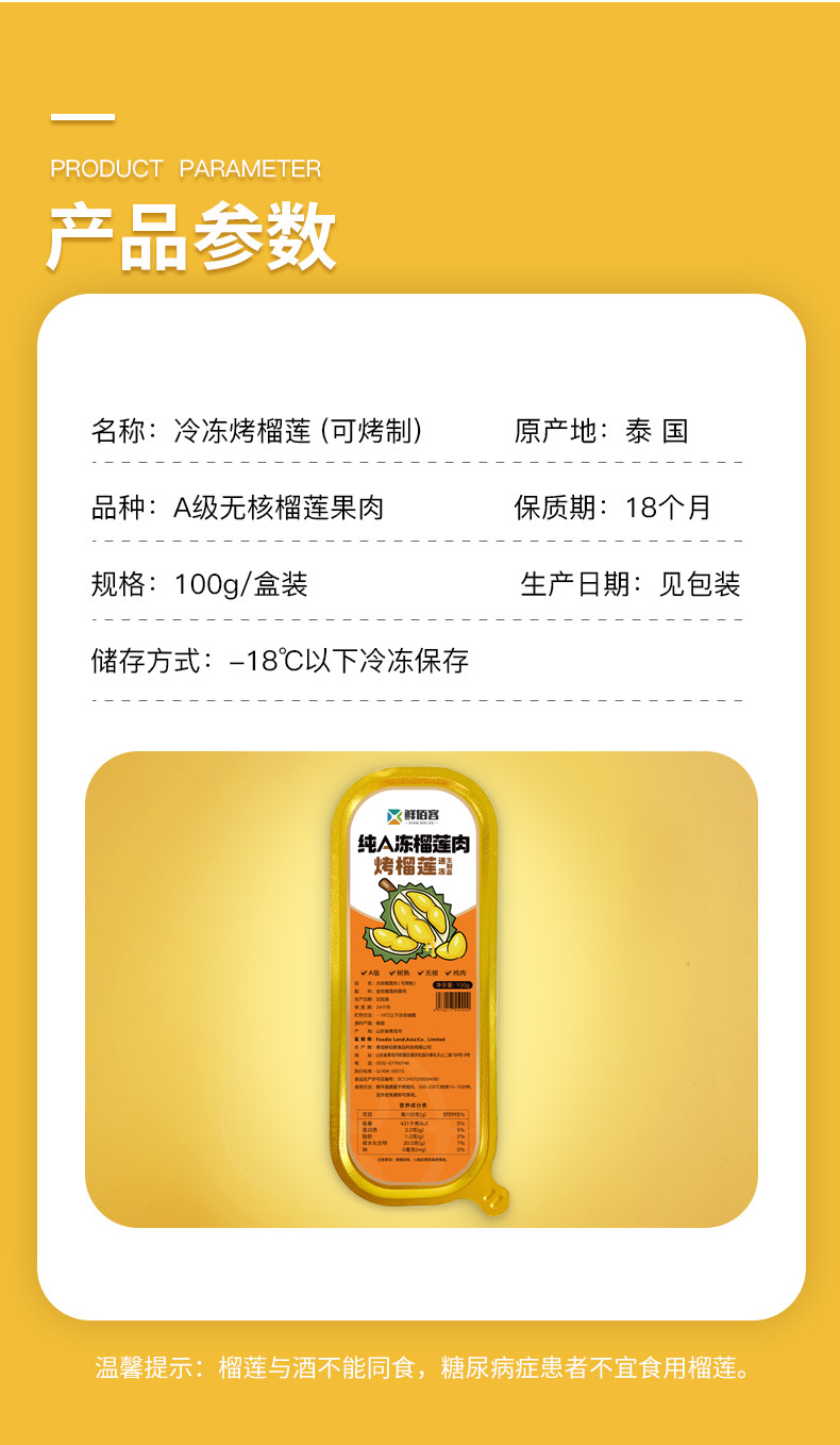 泰国金枕头冷冻榴莲原味烤榴莲网红小金条经济摆摊团购拿货顺丰