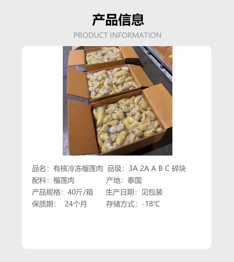 一级泰国进口金枕榴莲冷冻榴莲肉拿货新鲜水果源头批发整箱40斤