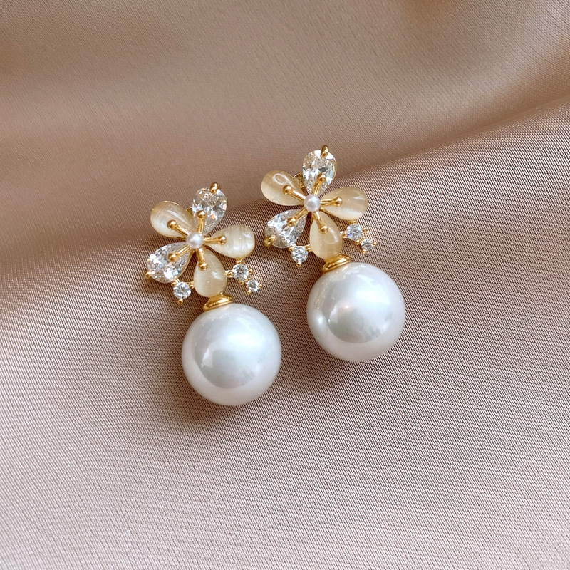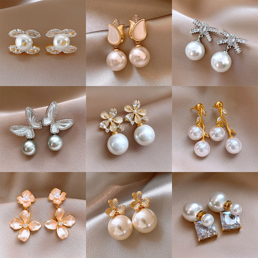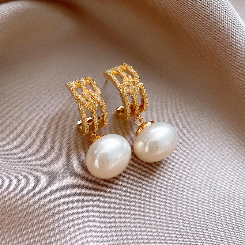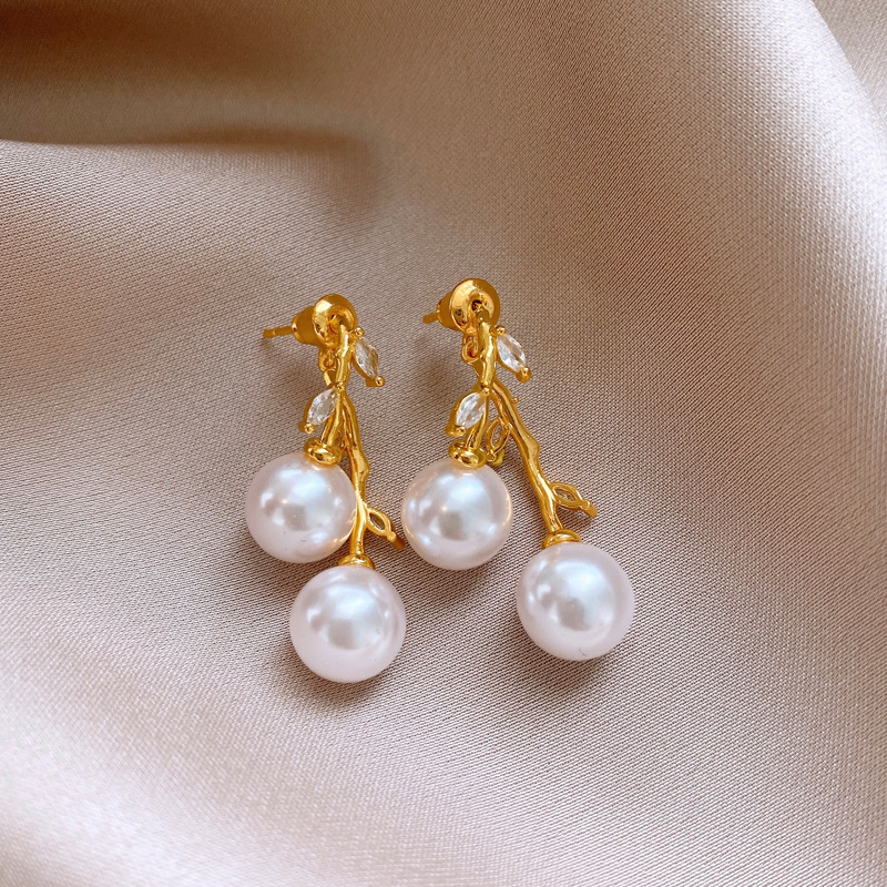 耳环气质百搭耳饰小众高级感银针水滴珍珠耳钉法式优雅高端耳环女