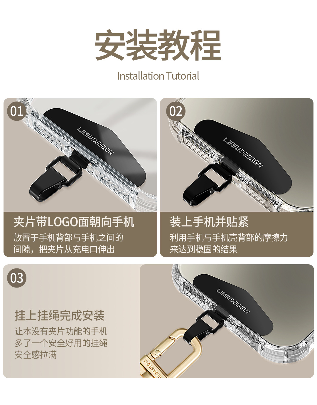 手机挂绳夹片高档金属不锈钢手机垫片超薄垫片结实防丢背夹挂片