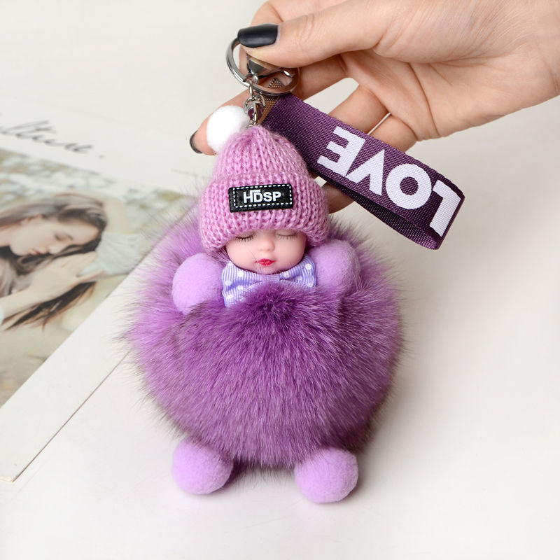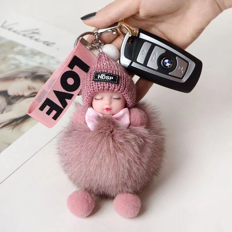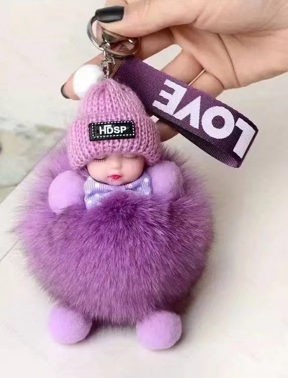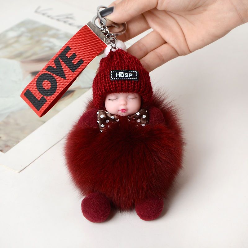 睡眠娃娃真狐狸毛毛球挂件玩偶女手机包包配饰品车钥匙扣毛绒挂件