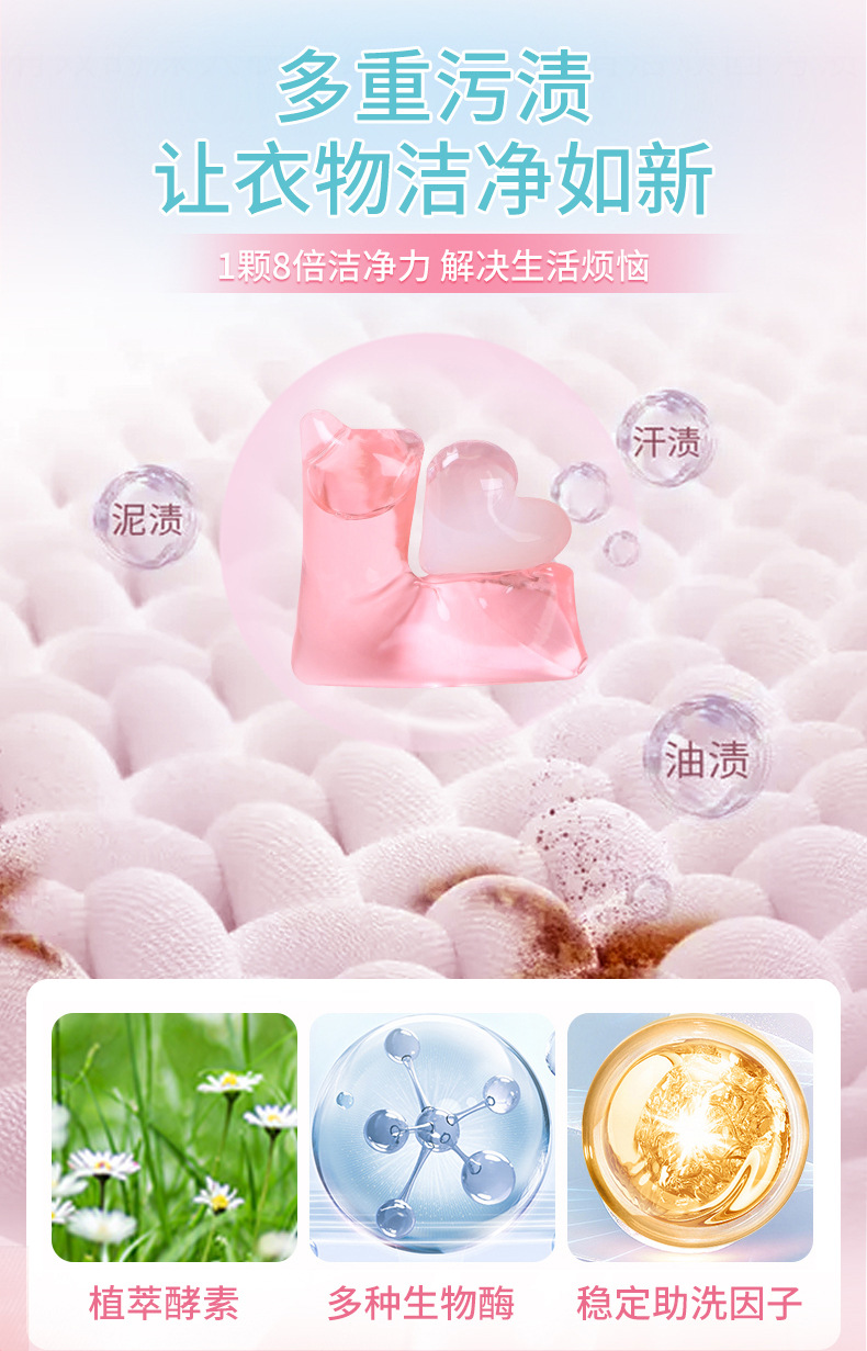 菁亮洗衣凝珠L+心造型去污洗护除菌洁净留香洗衣珠工厂代加工9g