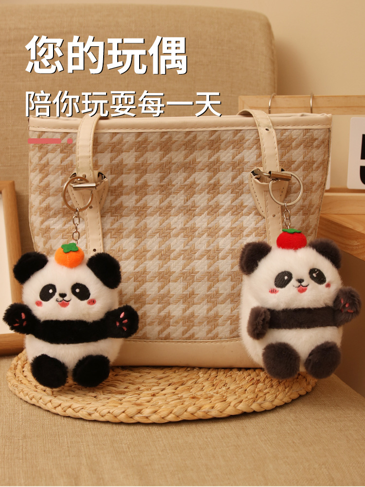 柿柿如意熊猫挂件毛绒包包钥匙扣挂件公仔熊猫玩偶周边纪念品男女