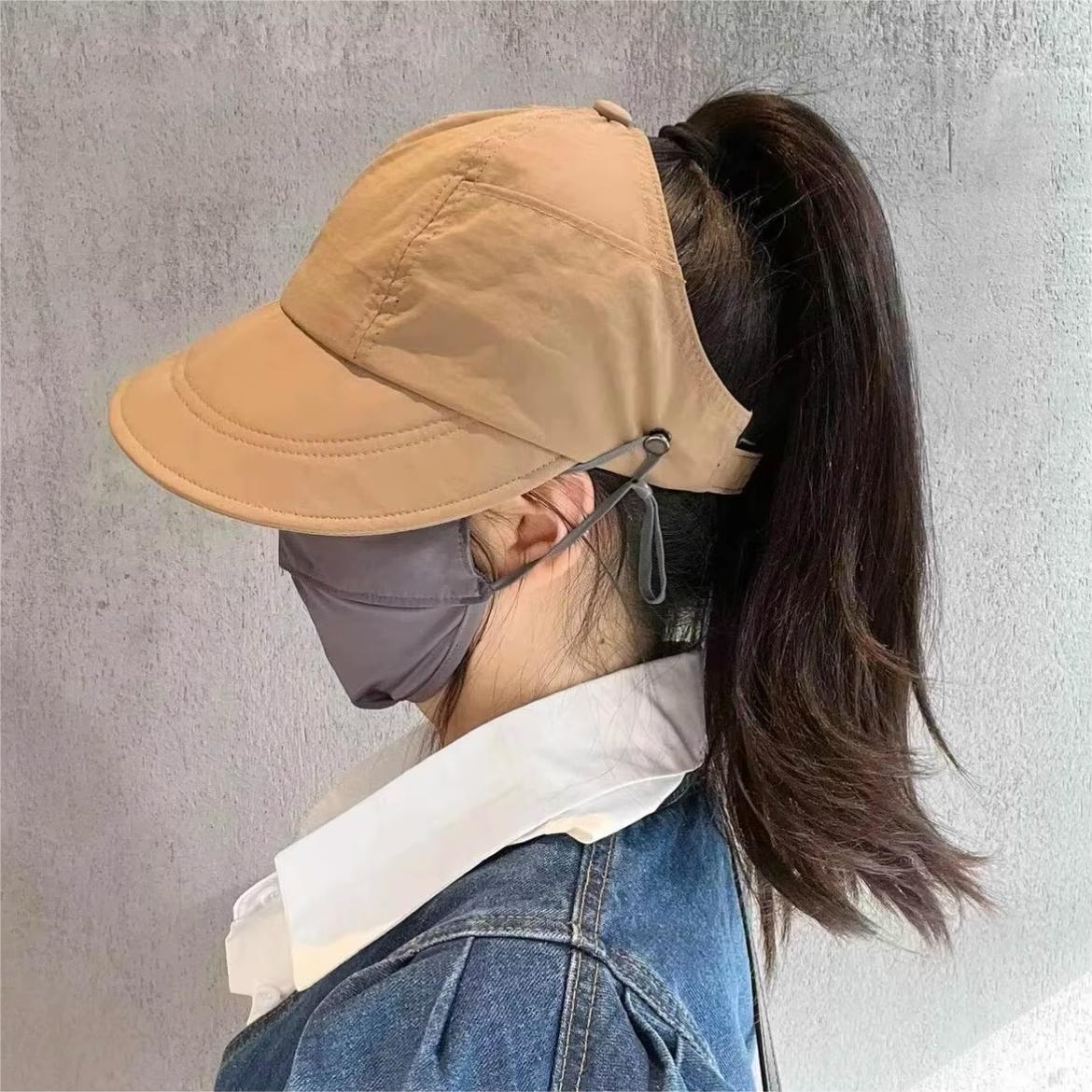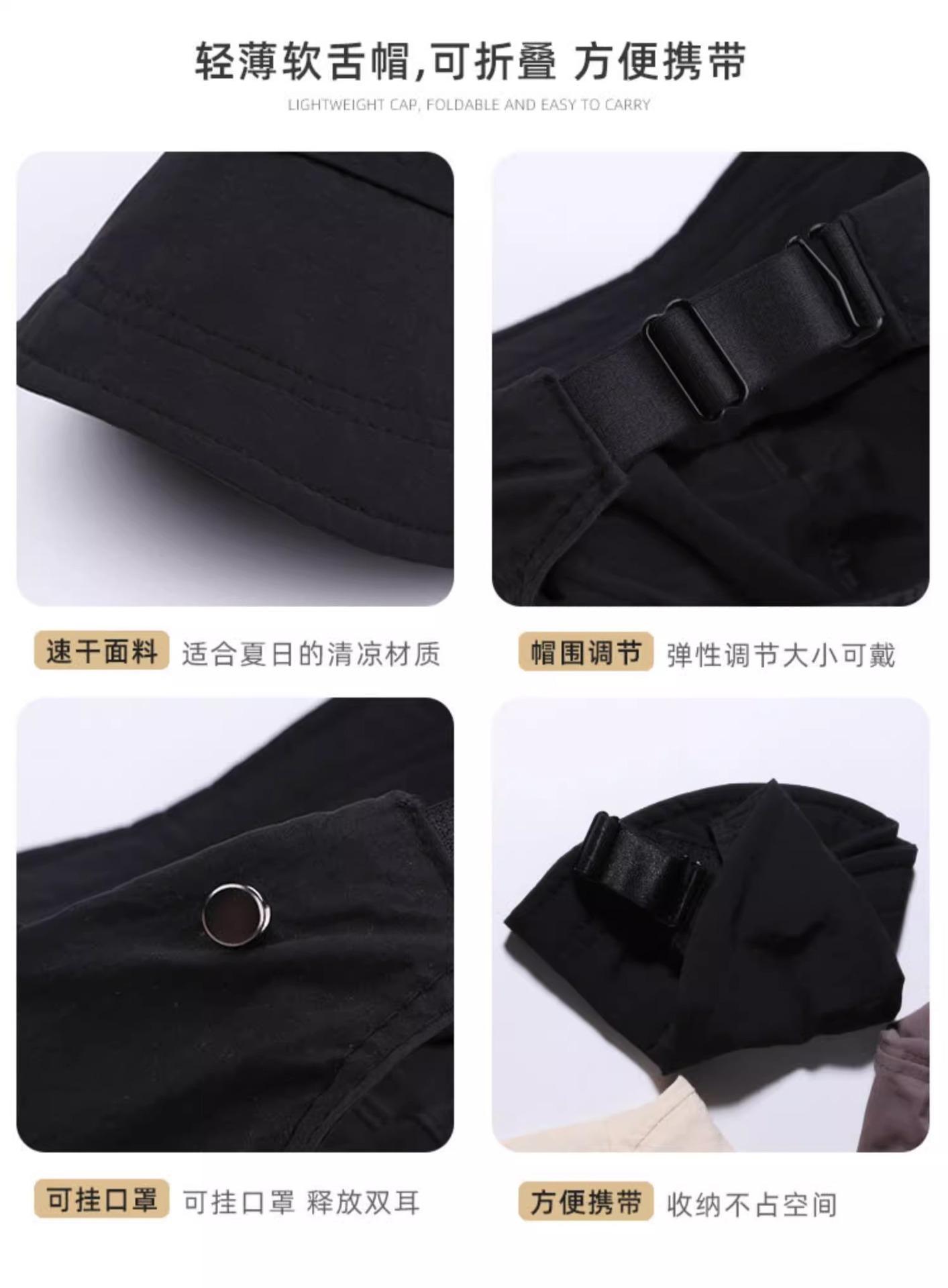 夏季新款可扎马尾空顶口袋帽女鸭舌帽子挂口罩遮阳防晒速干百搭帽